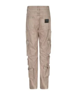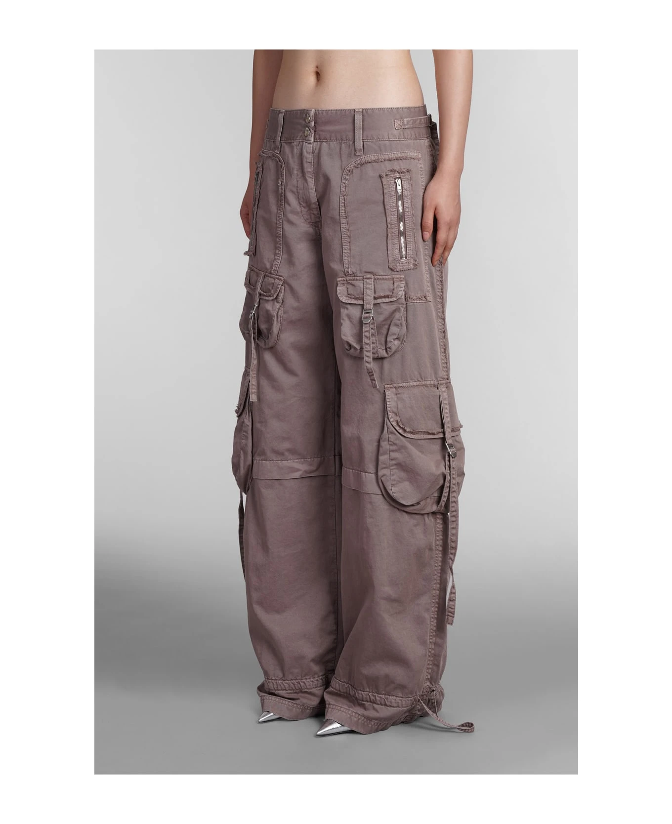 Pants in rose-pink cotton, button and zip closure, multi-pockets, oversized fit, Drawstring laces, cargo pockets, waist belt loops, 100% cotton, Made in Italy, Model is 180 cm and wears 36