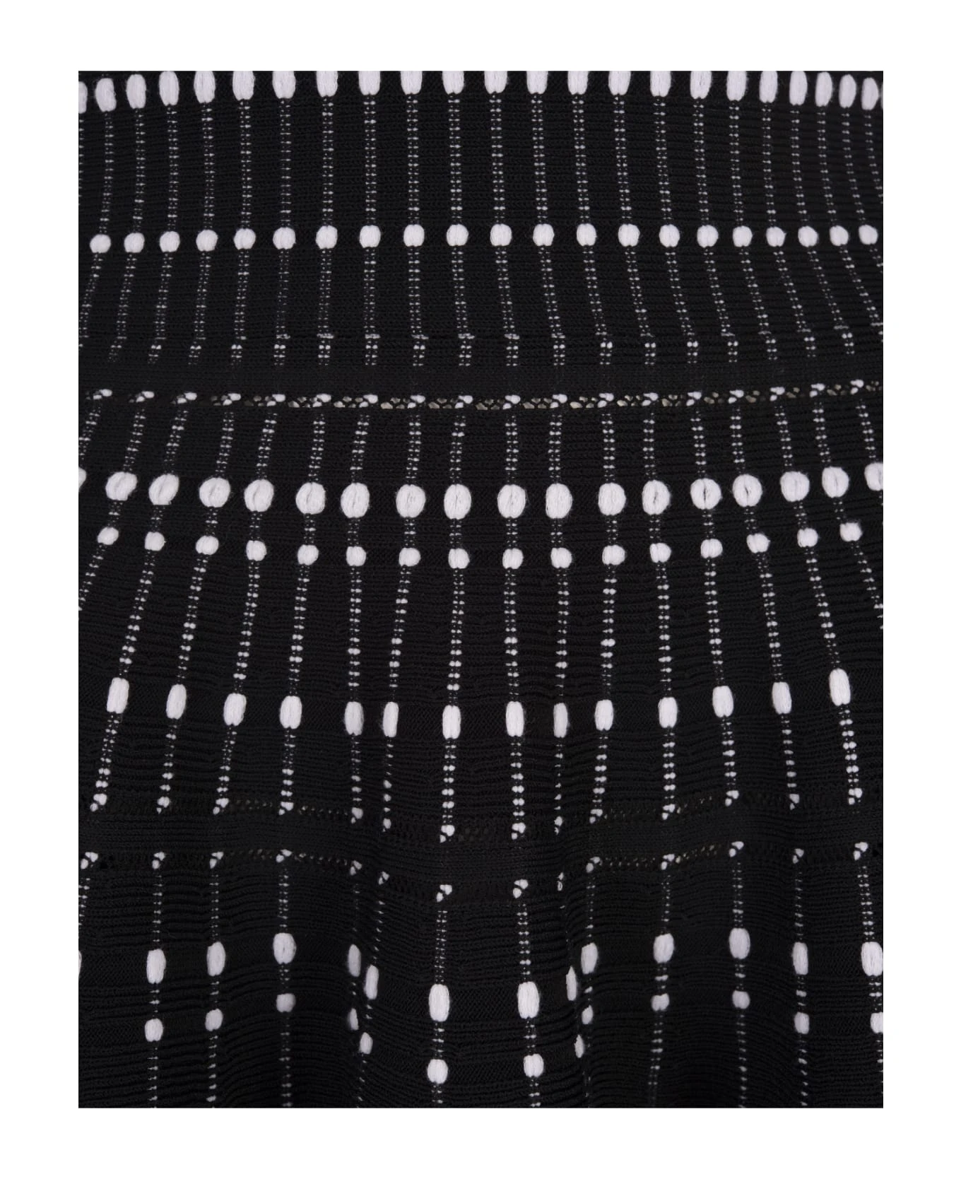 Alexander McQueen mini dress in black stretch viscose knit with a crew neck, short sleeves, flared skirt and contrasting white nylon-cotton yarn inlay. Article made from certified viscose yarn.