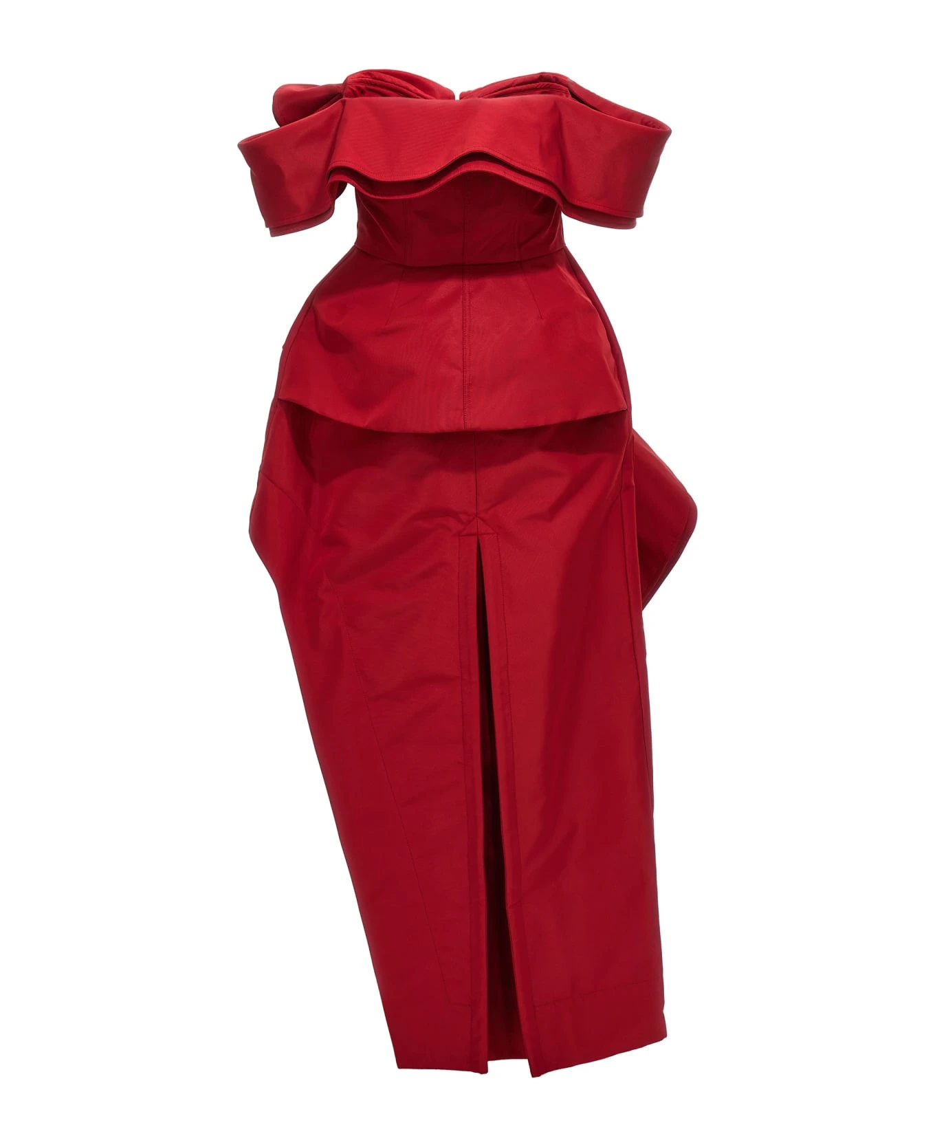 Deconstructed polyfaille trench coat dress, maxi neckline, off-the-shoulder model, corset, zip and hook closure.