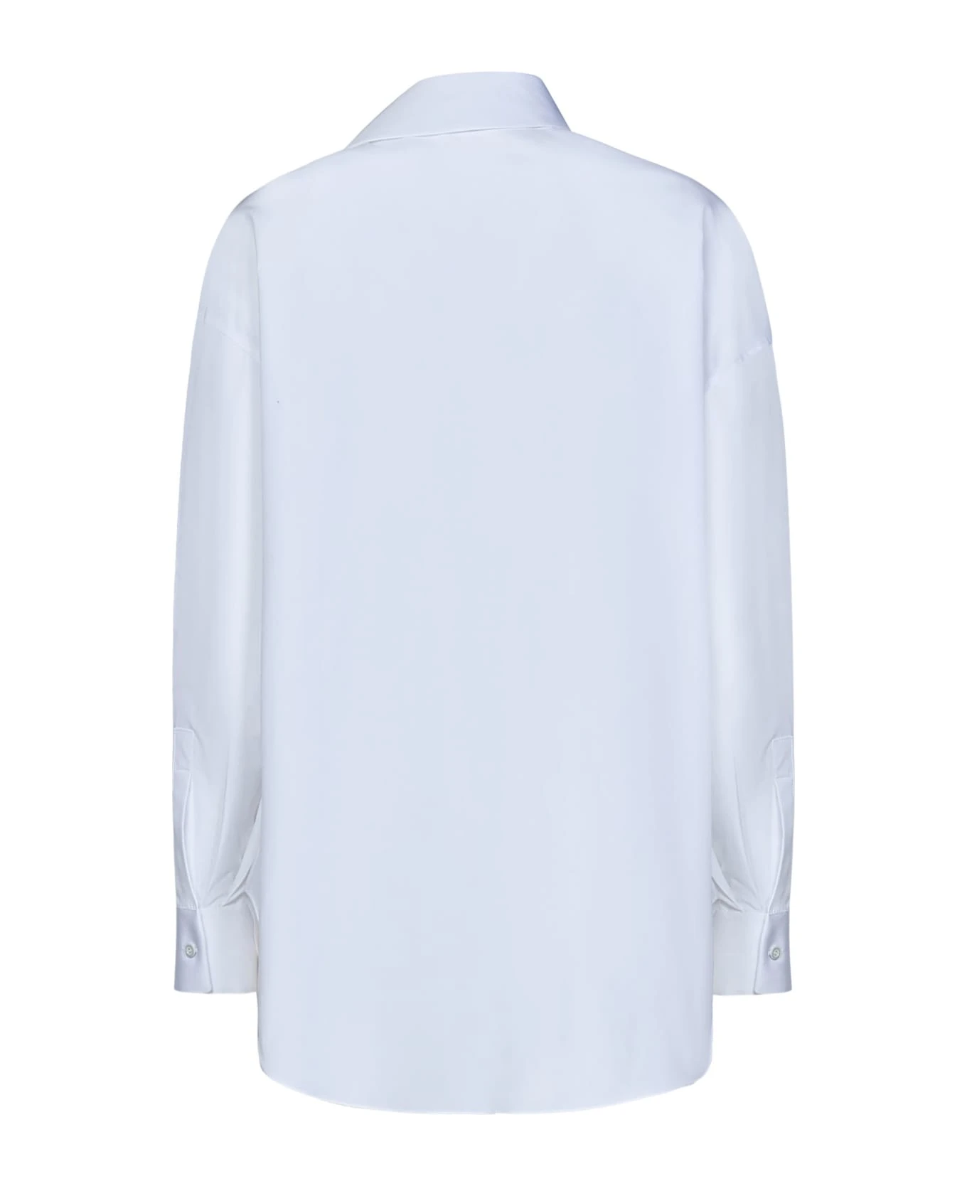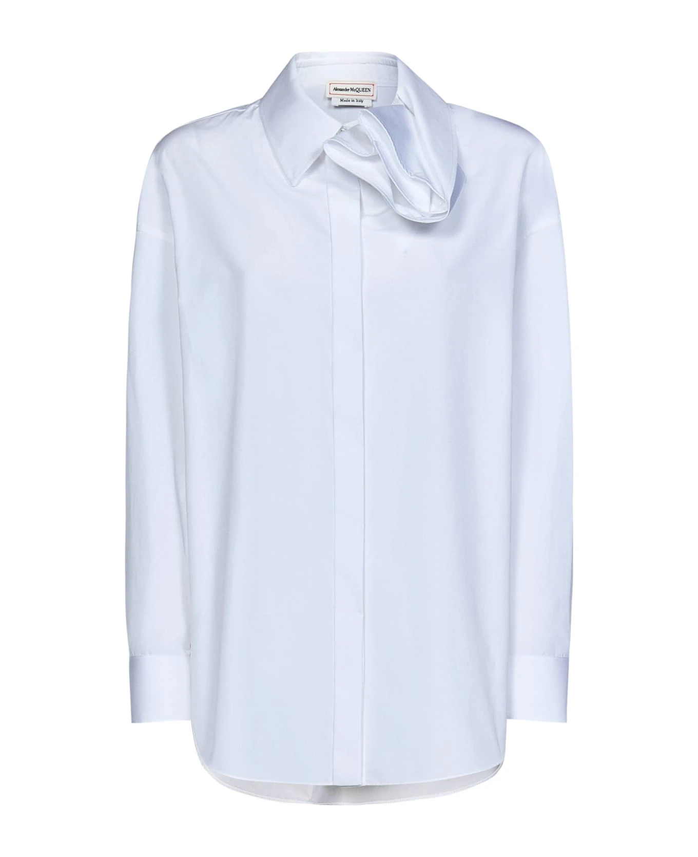 - Buttoned cuffs; Rounded hem