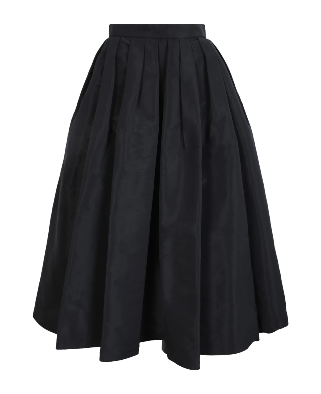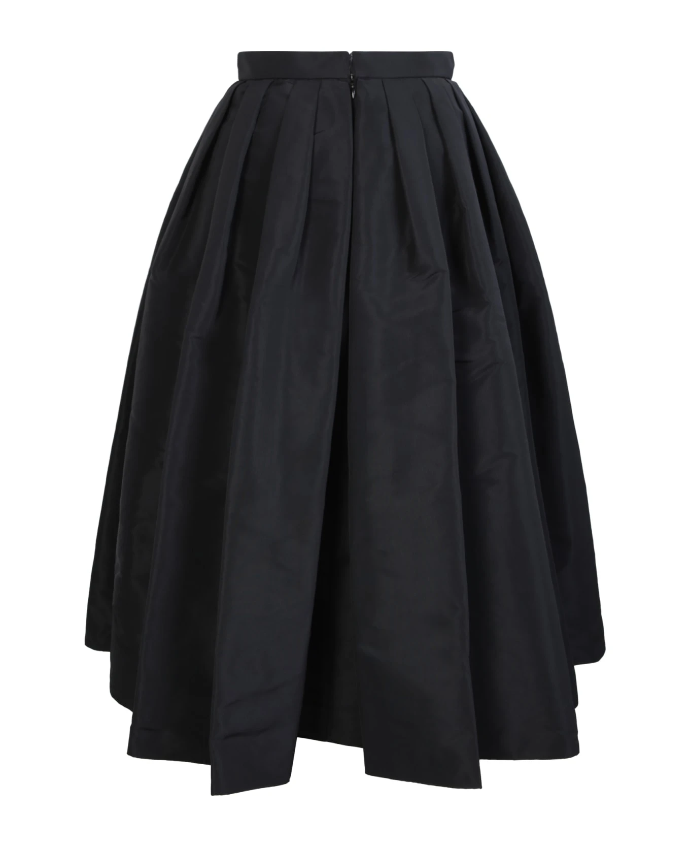 High-waisted. Concelead rear zip fastening. Two side slit pockets. Flared. Color: black