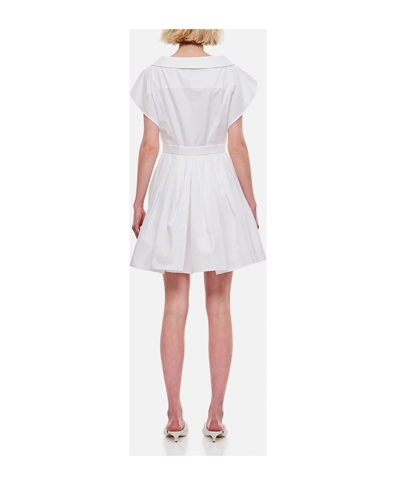 Optical White Classic collar Buttoning Panels of the pleated skirt