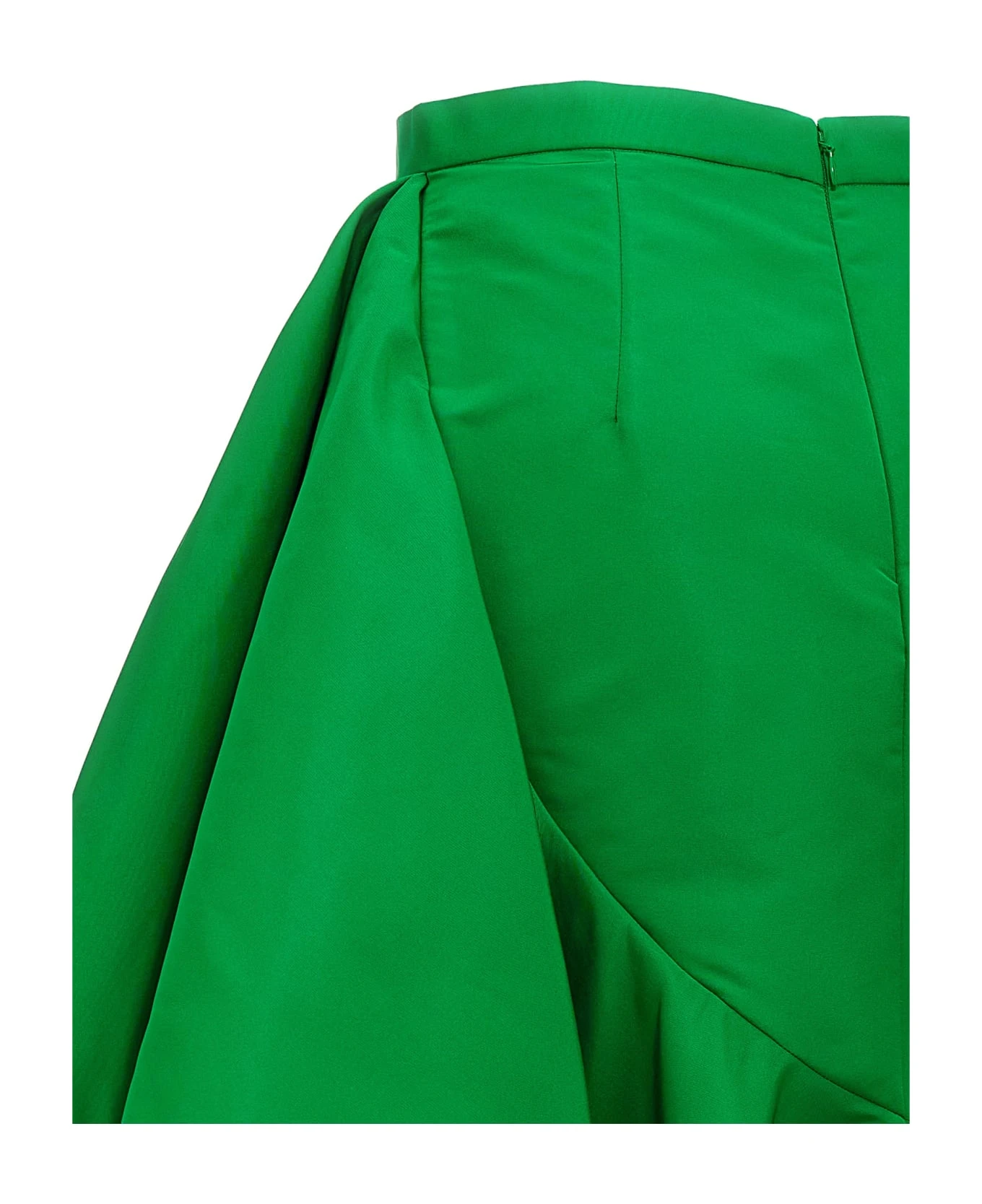 Midi skirt with ruffle details, asymmetric hem, and zipper closure at the back.