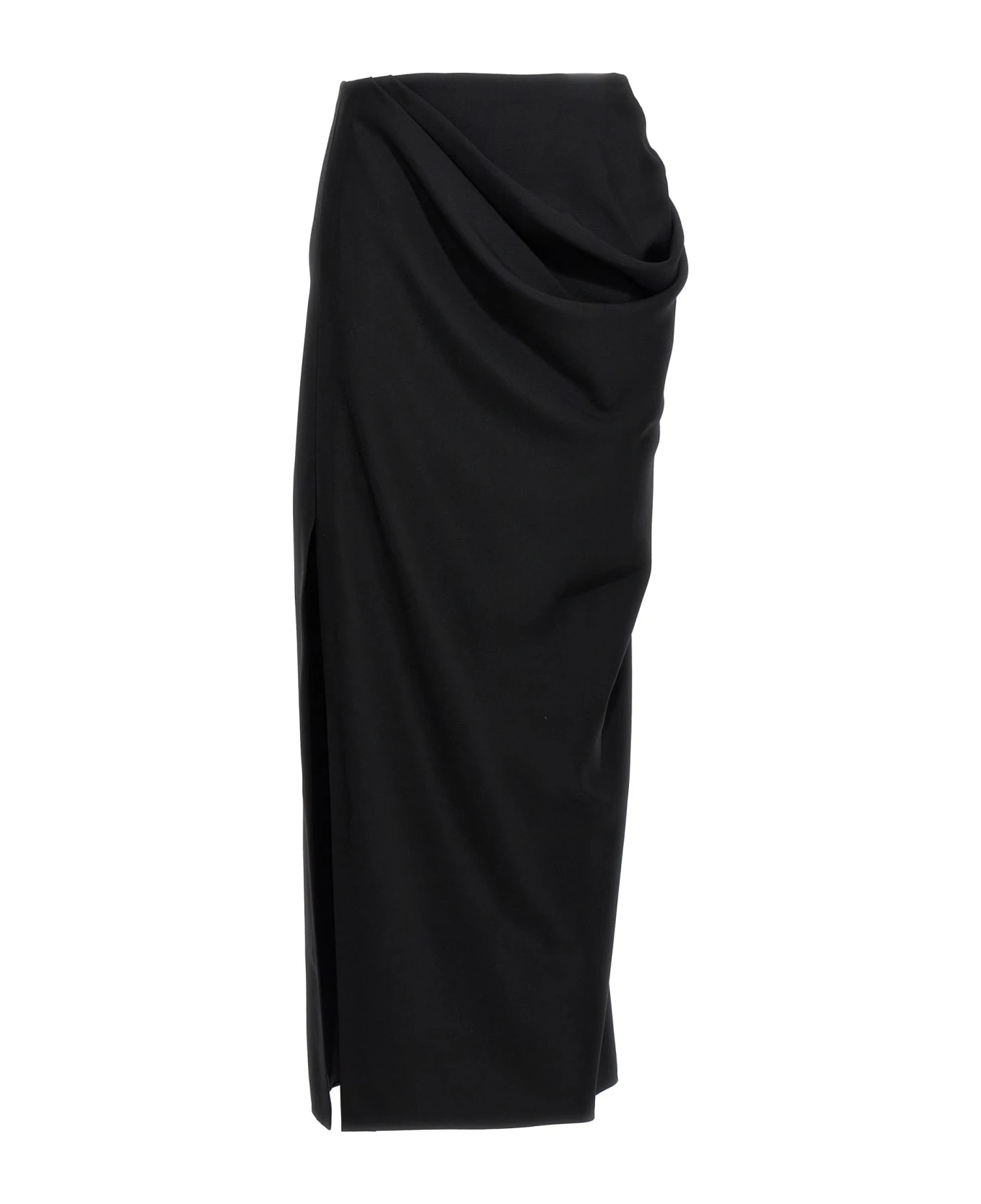 Slashed Drape’ wool skirt with draping, wide split, side zip closure and a high waist style.