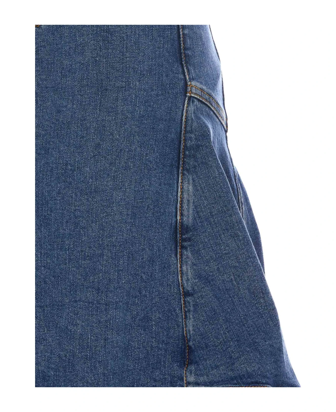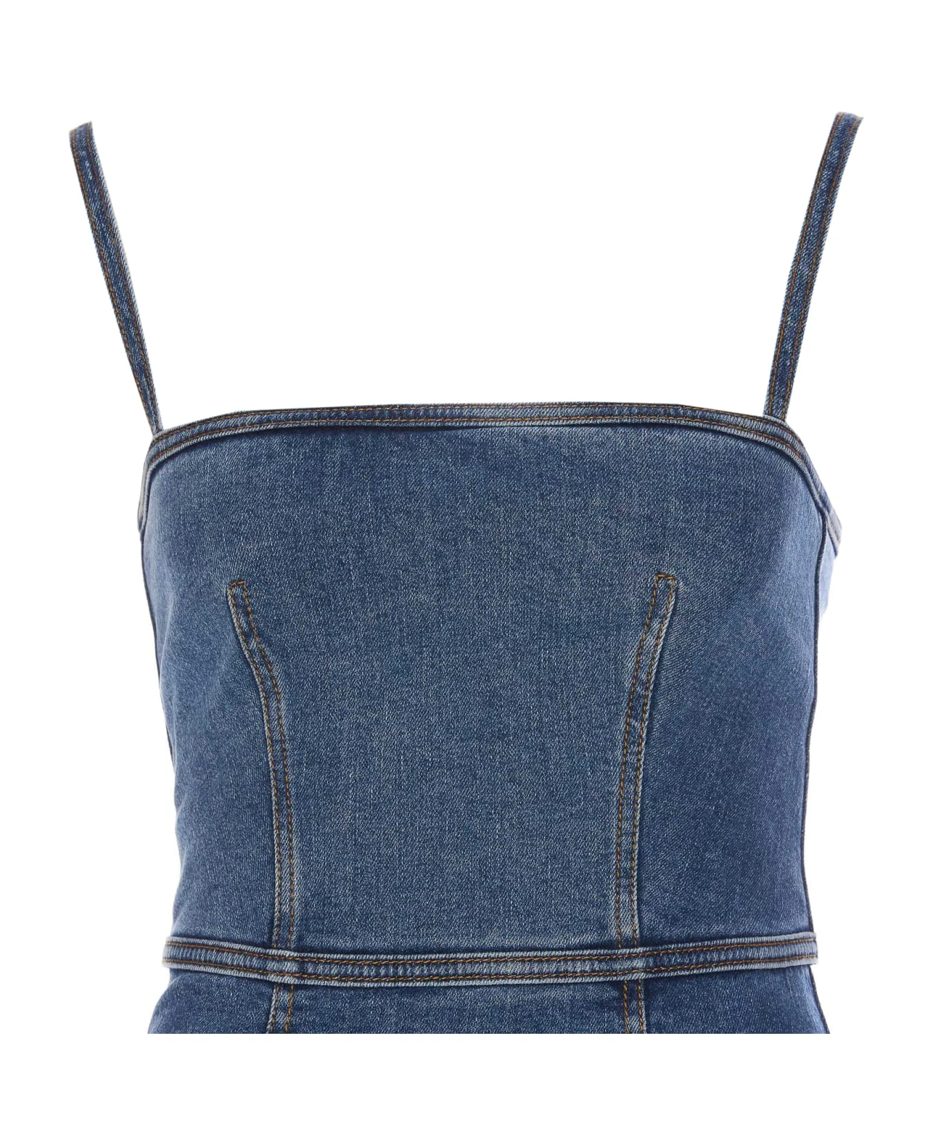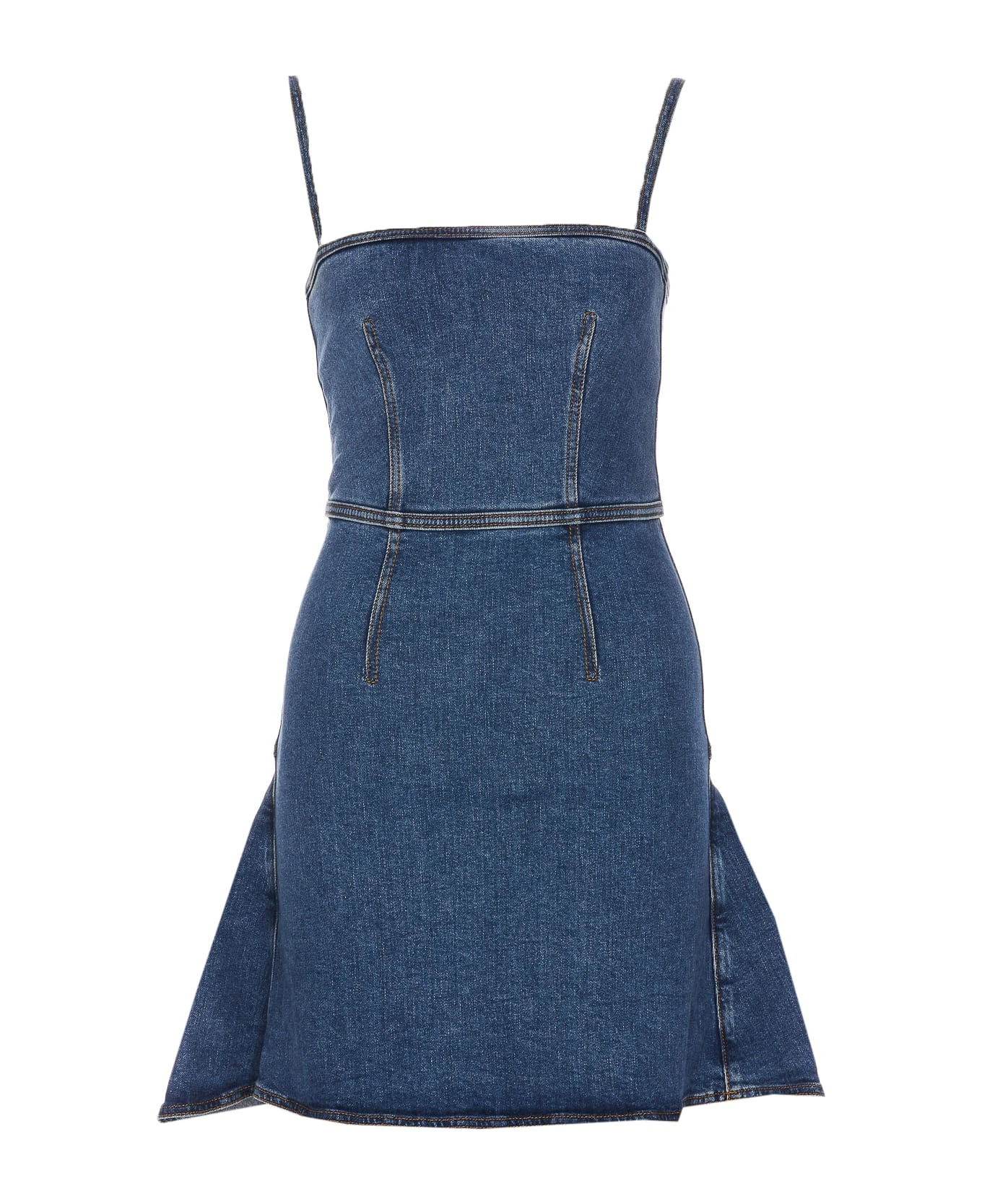 Alexander McQueen denim dress with zip closure on the back, straight neck, asymmetrical model