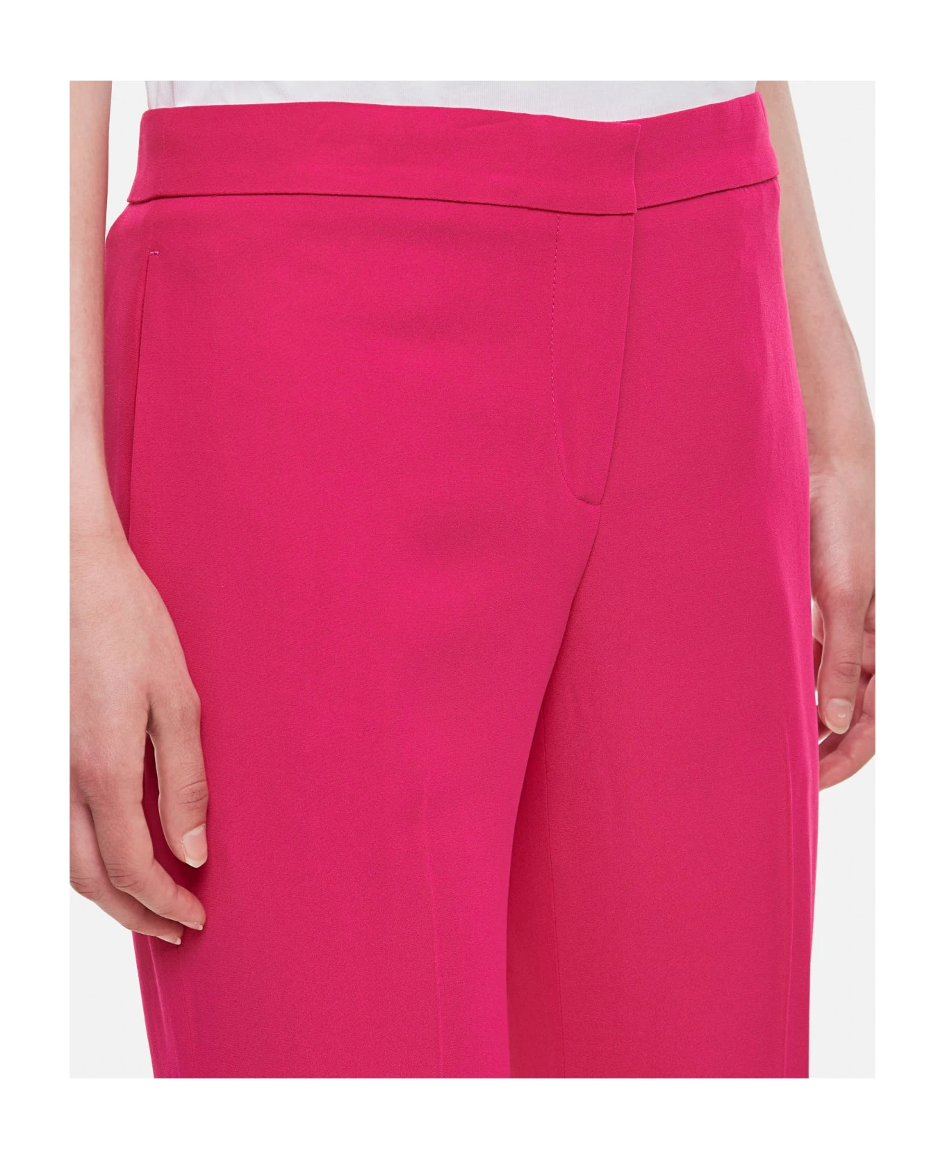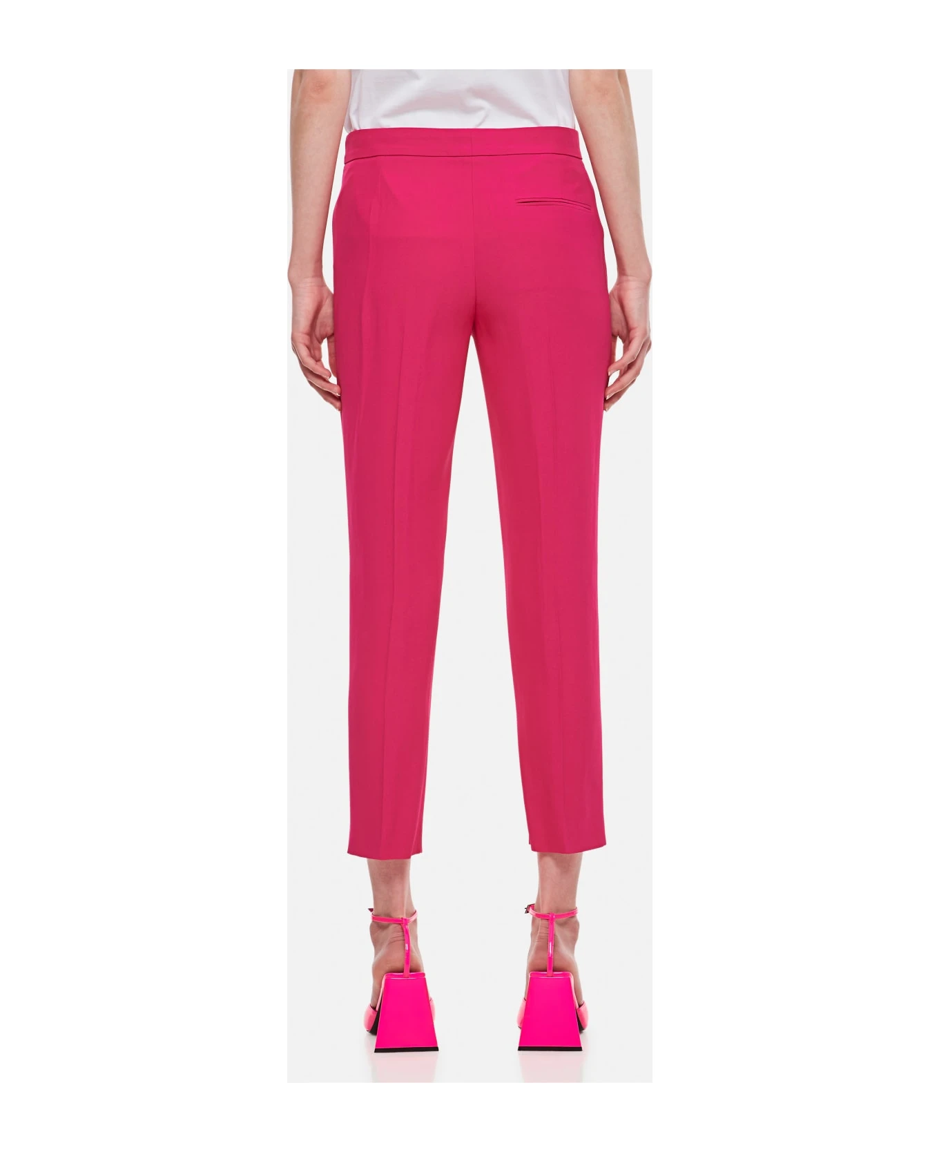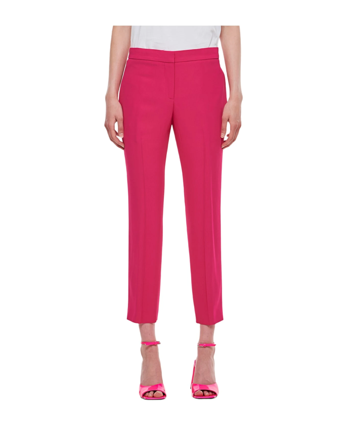 High-waisted. Slightly flared cropped leg. Side zip-up closure. Color: pink.