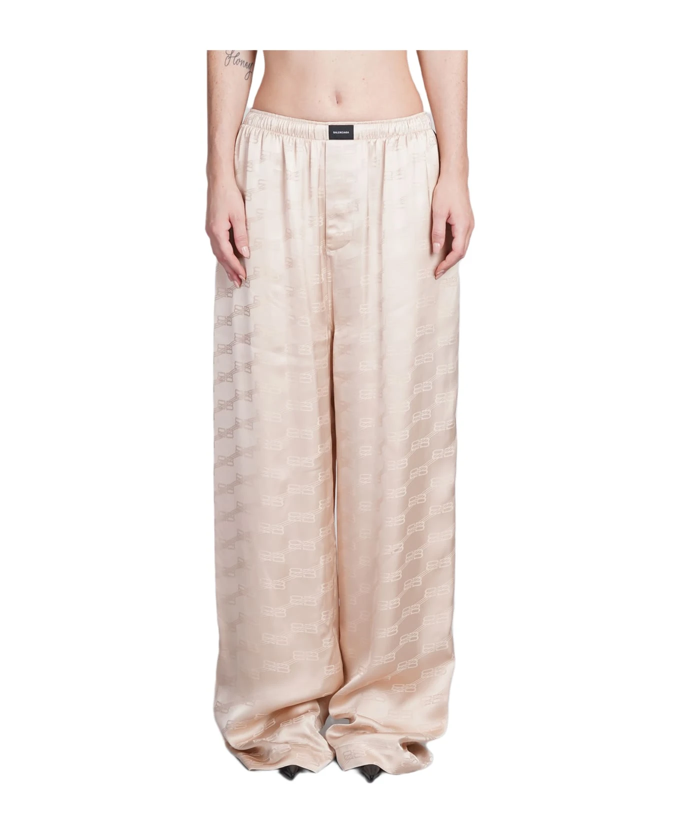 Pants in beige viscose, elastic waist, oversized fit, monogram print, three pockets, 100% Viscose, Made in Italy, Model is 180 cm and wears 36