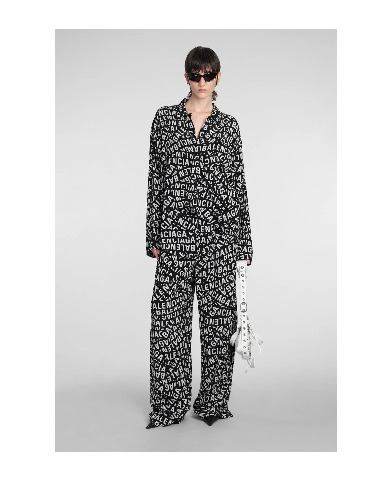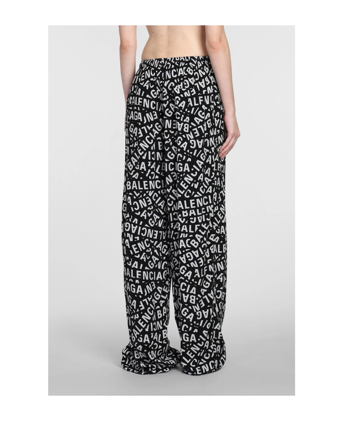Pants in black polyamide polyester, elastic waist, pockets, logo all over, 100% cupro, Made in Italy, Model is 180 cm and wears size 34