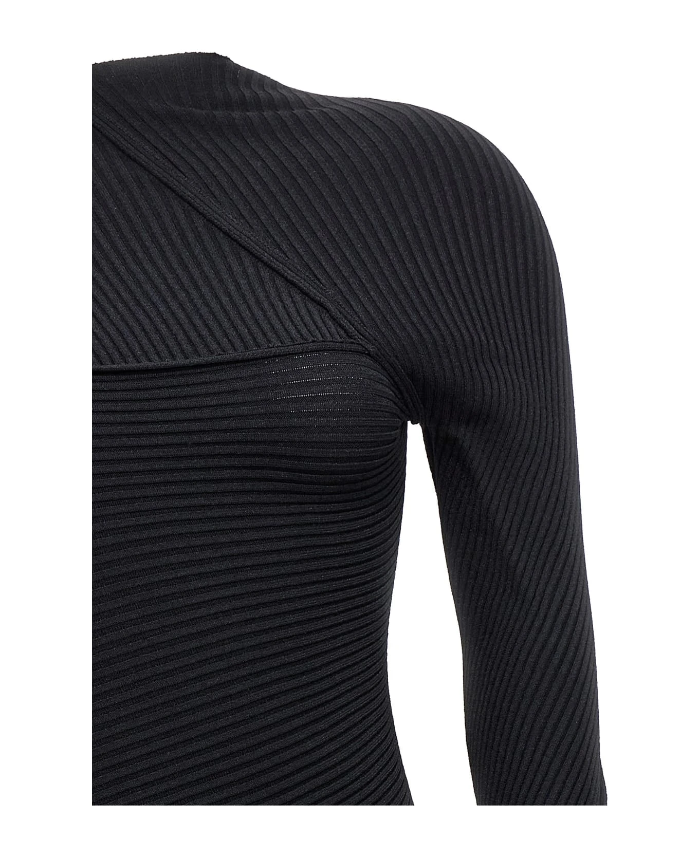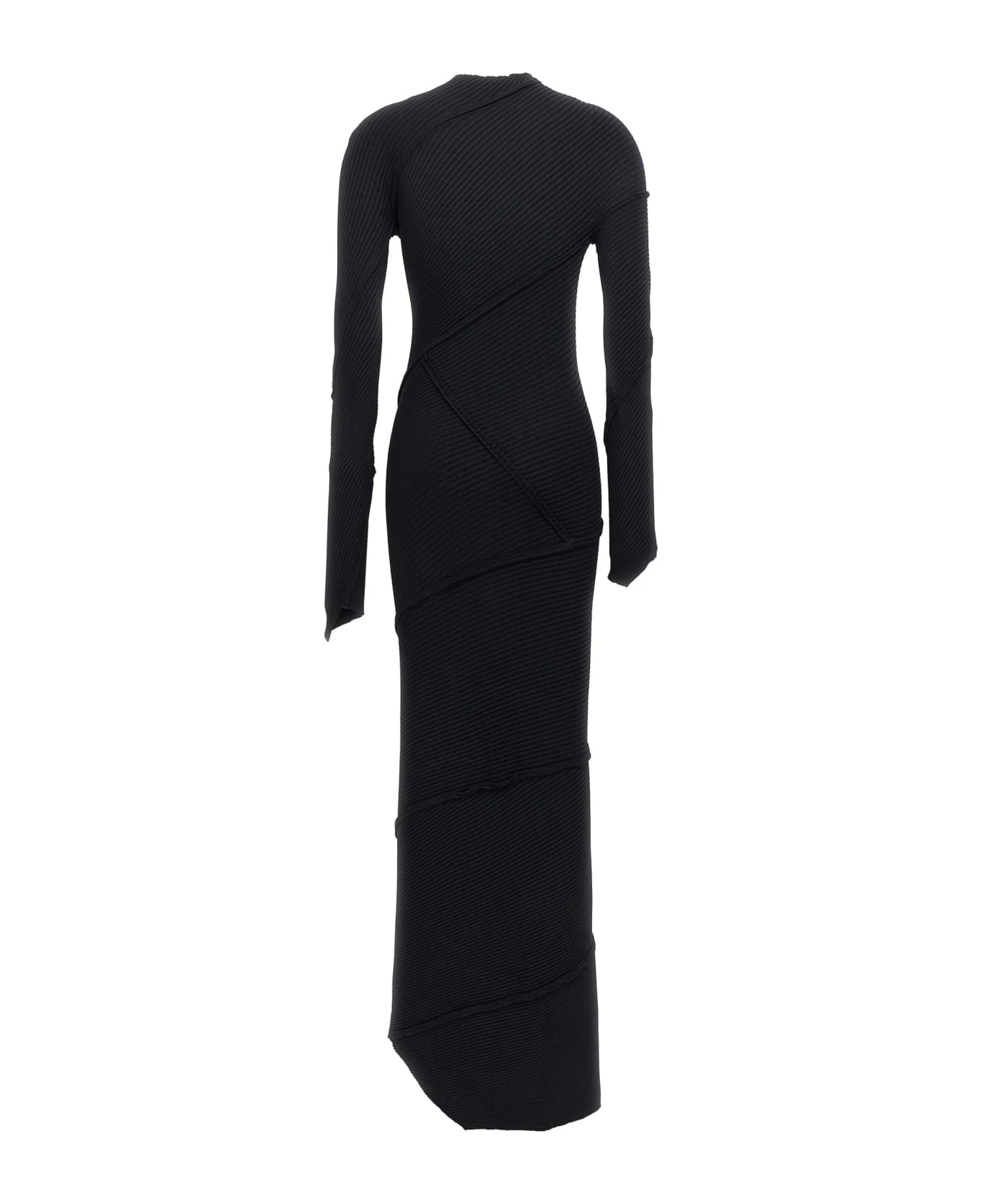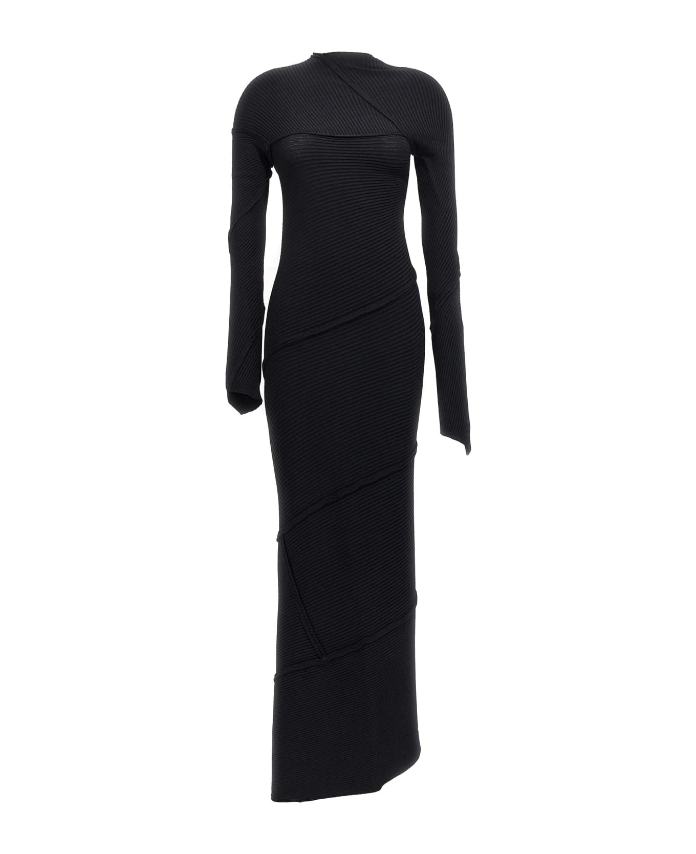 Spiral’ ribbed spiral viscose knit dress with crewneck, and long sleeves.
