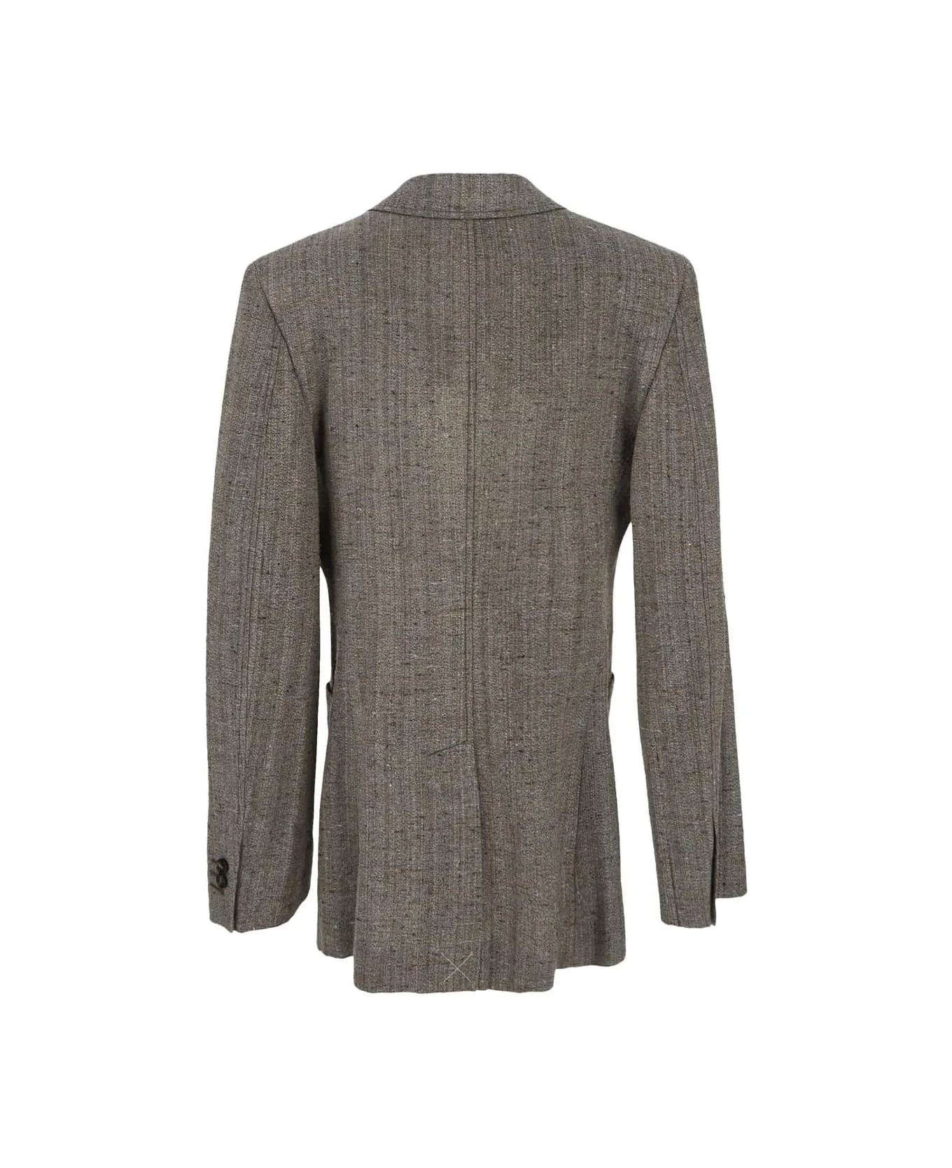 Bottega Veneta jacket in brown and grey knotted viscose and silk with light blue and blue details, button closure, narrow notch collar, long sleeves, buttoned cuffs, a chest pocket, two front large pockets, central back split and relaxed fit.