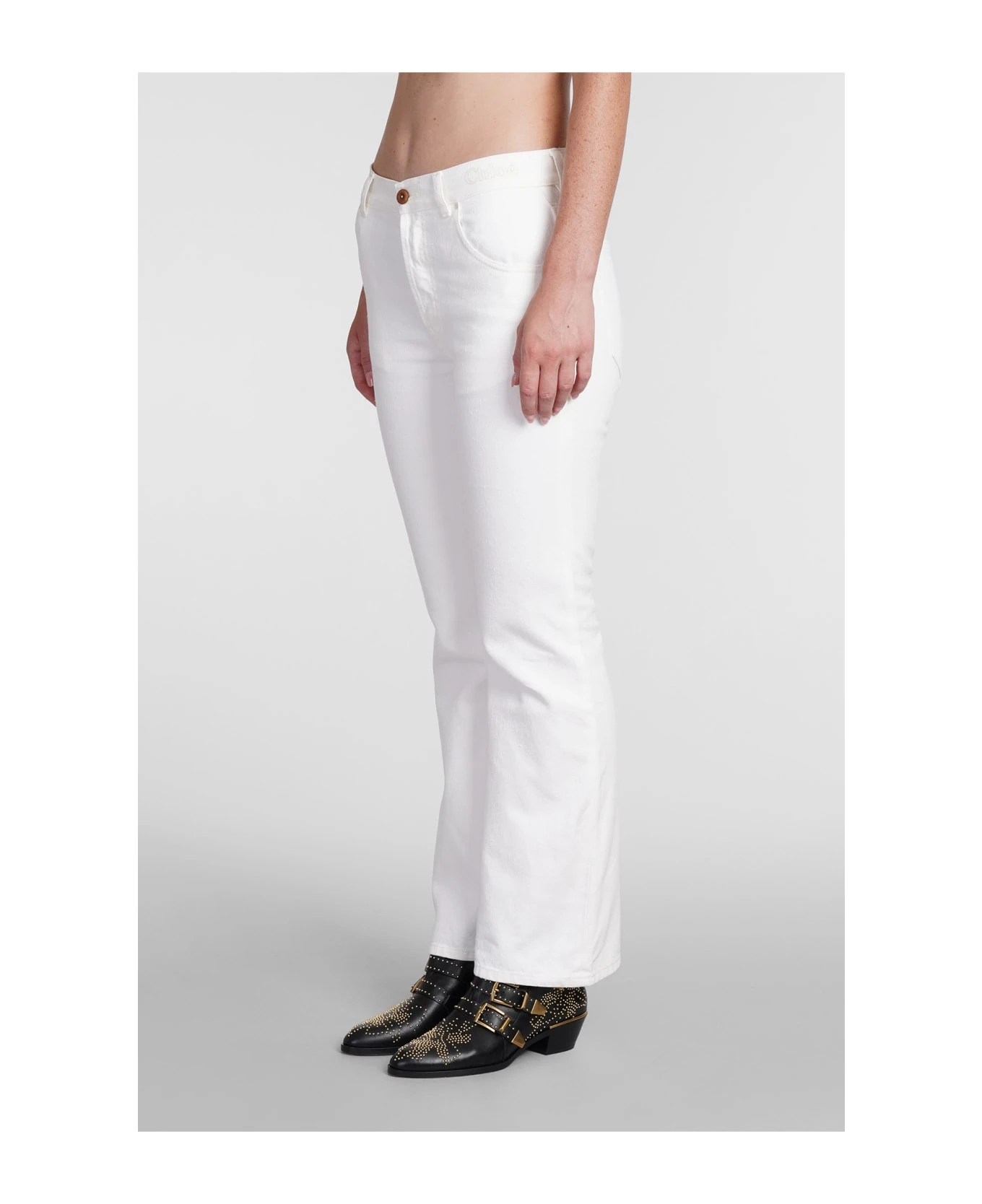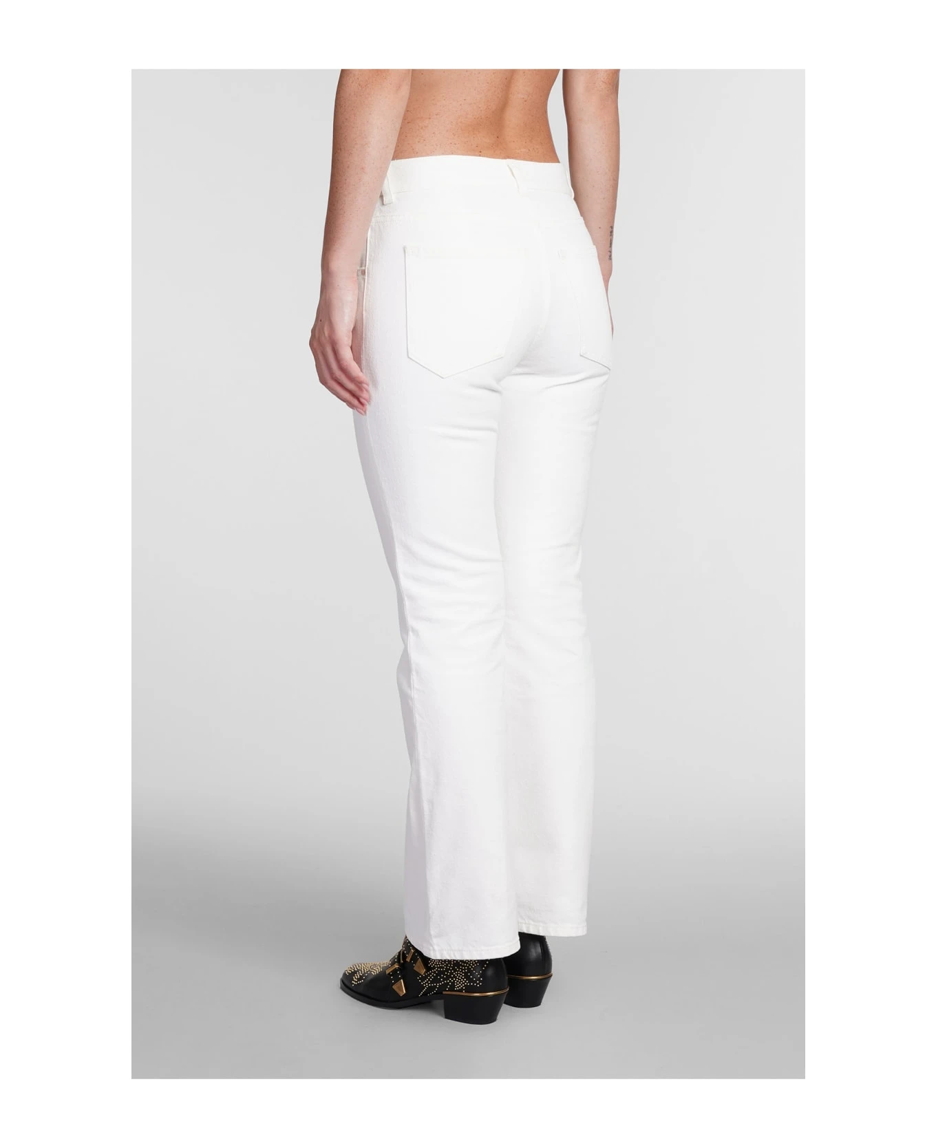 Pants in white cotton, button and zip closure, five pockets, side embroidery, 87% cotton, 13% chanvre, Model is 180 cm and wears size 28