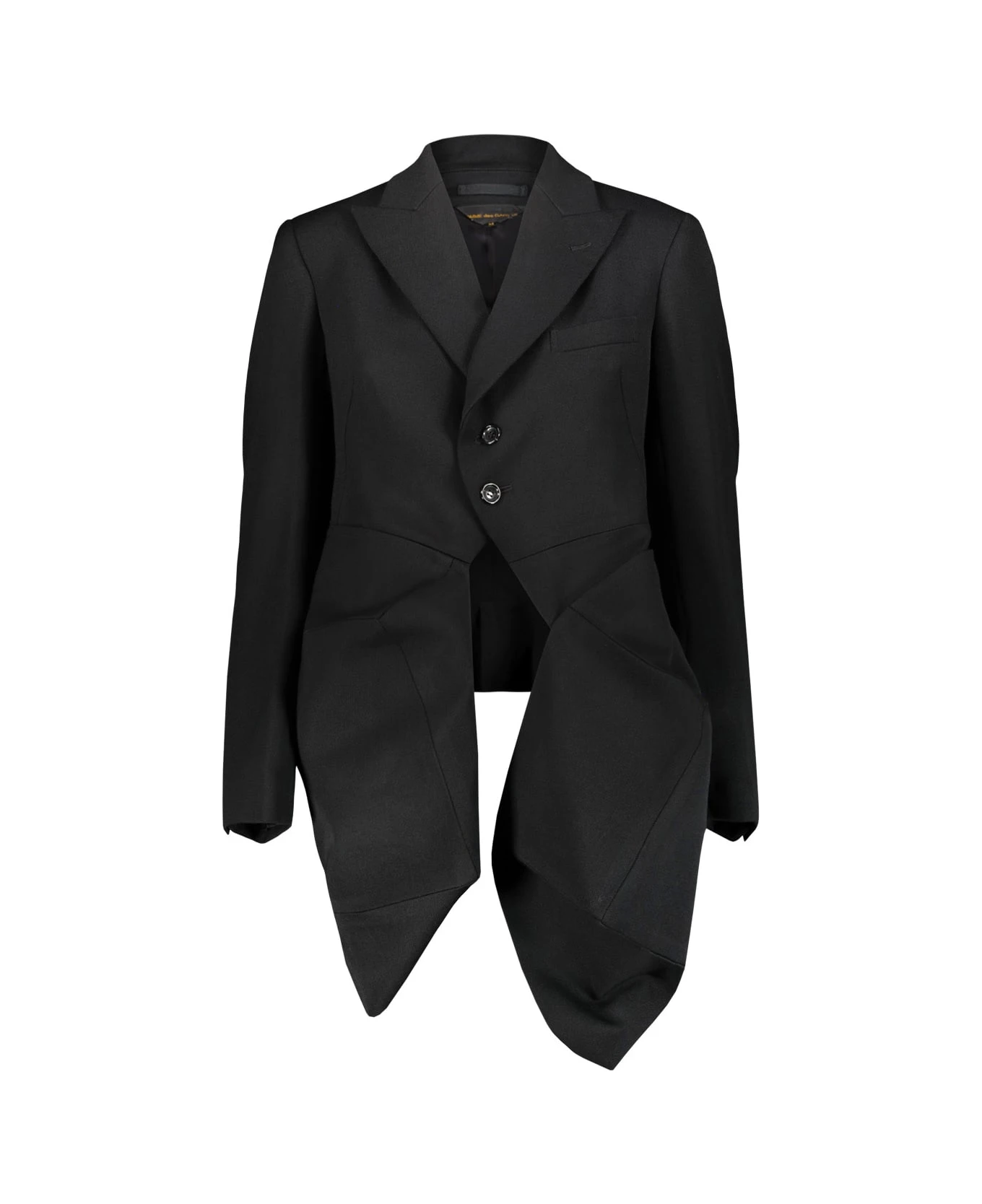 Comme des Garçons wool jacket with asymmetric side details in the shape of a three-dimensional parallelepiped, peak collar
