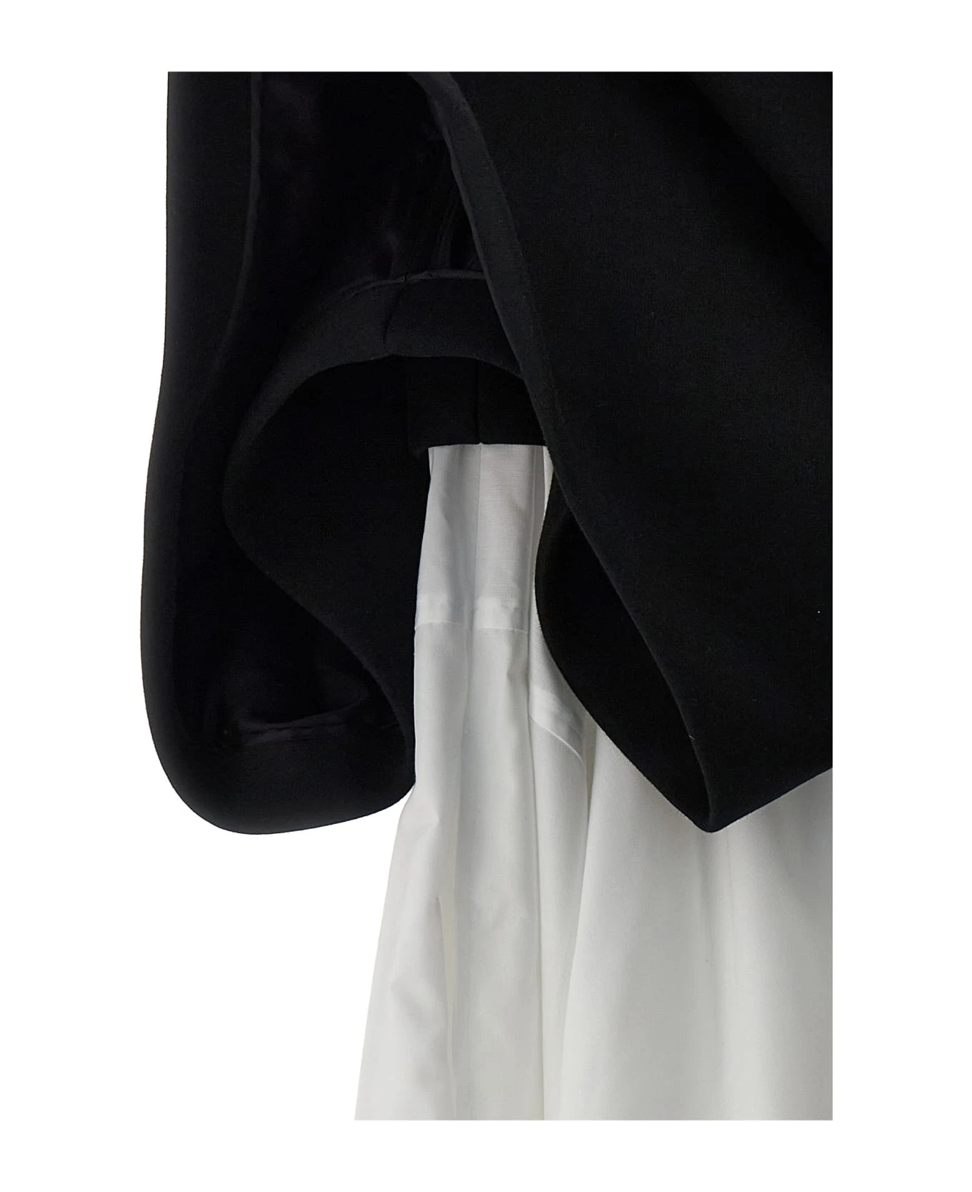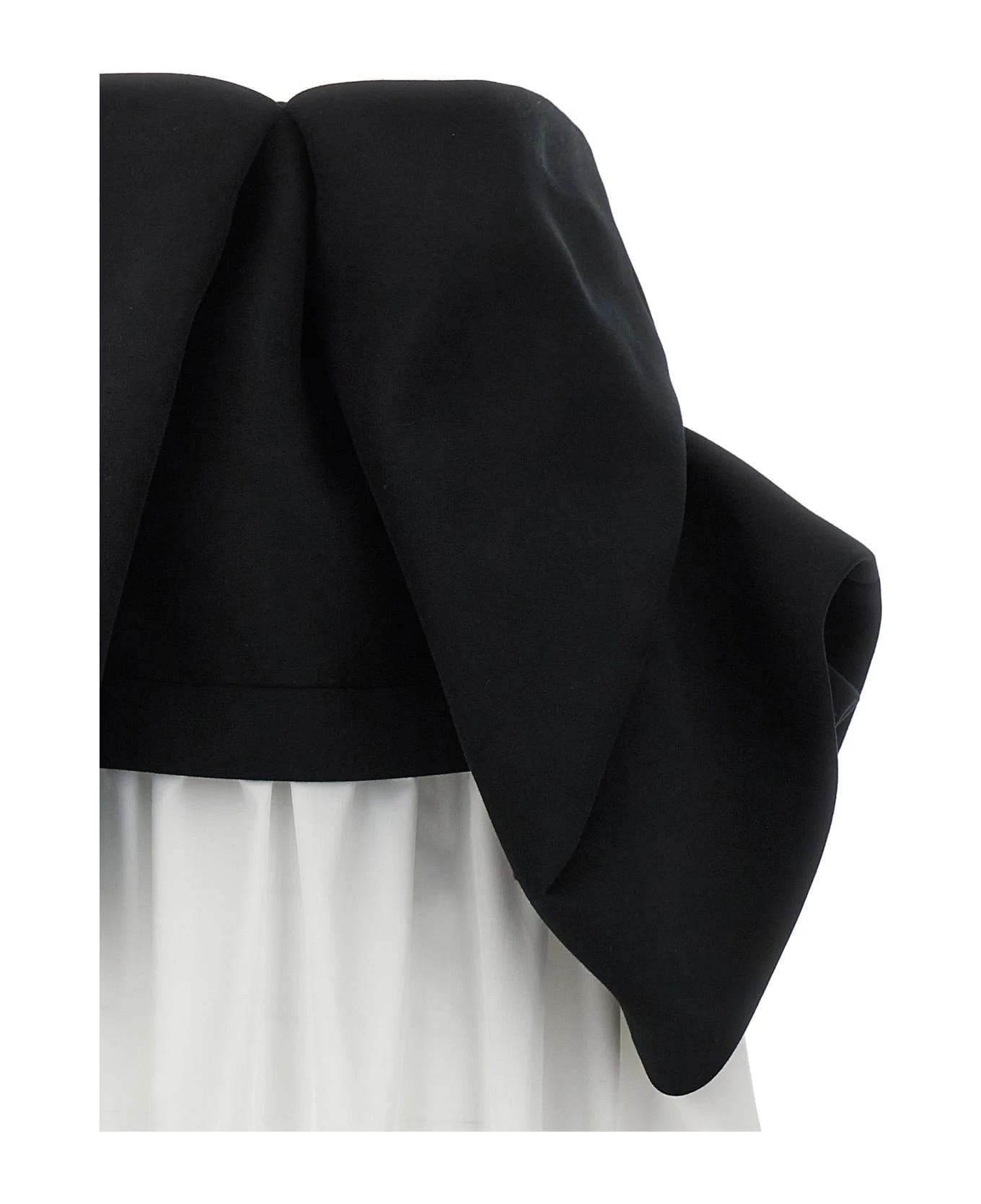 Loose dress in cotton poplin with structured hood application with rigid neoprene pleats with half sleeves.