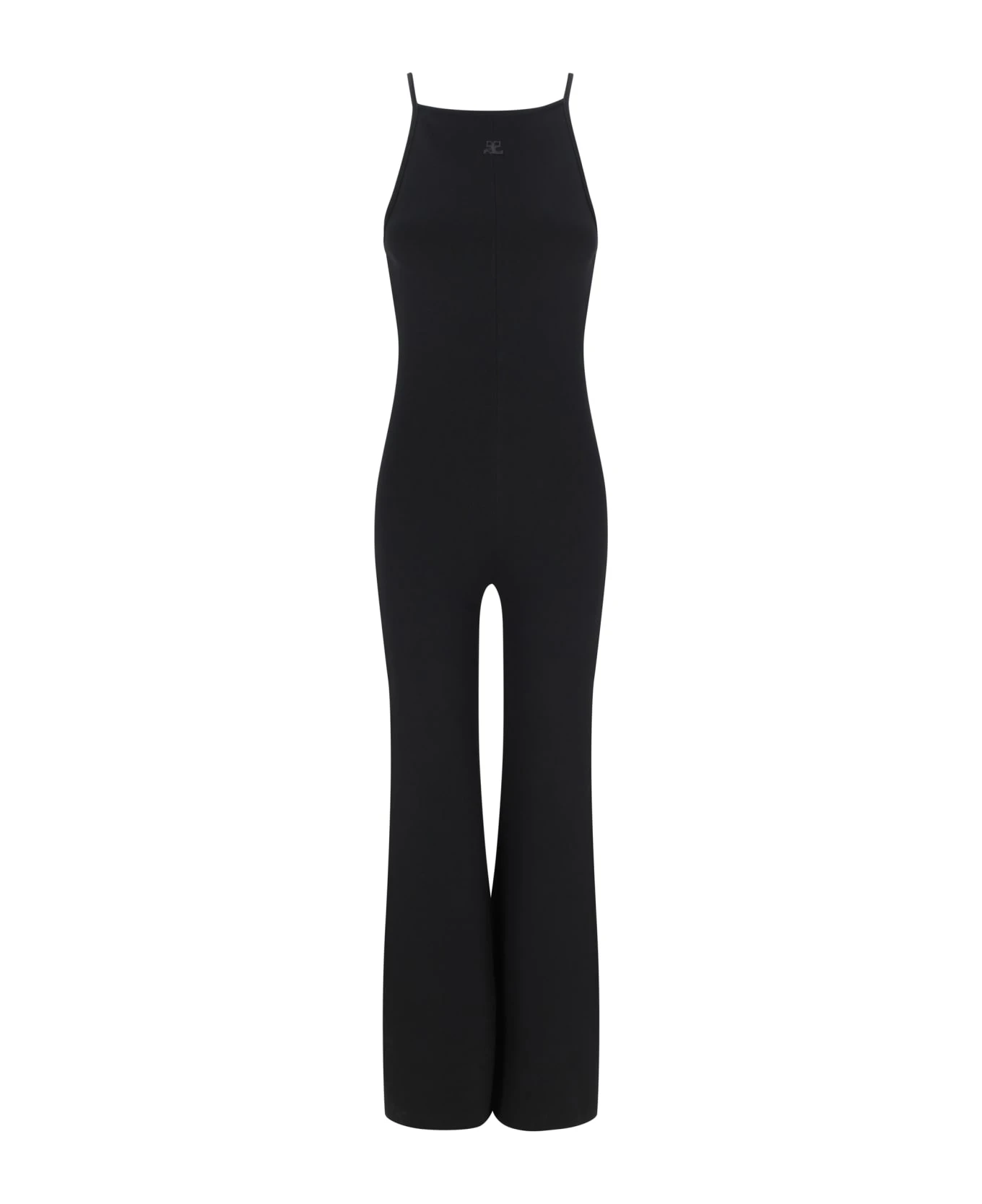 Cotton jumpsuit dress by courrèges, back zip fastening, sleeveless design, boat neckline on front, wide leg trousers, iconic brand logo embroidered on front, regular fit.