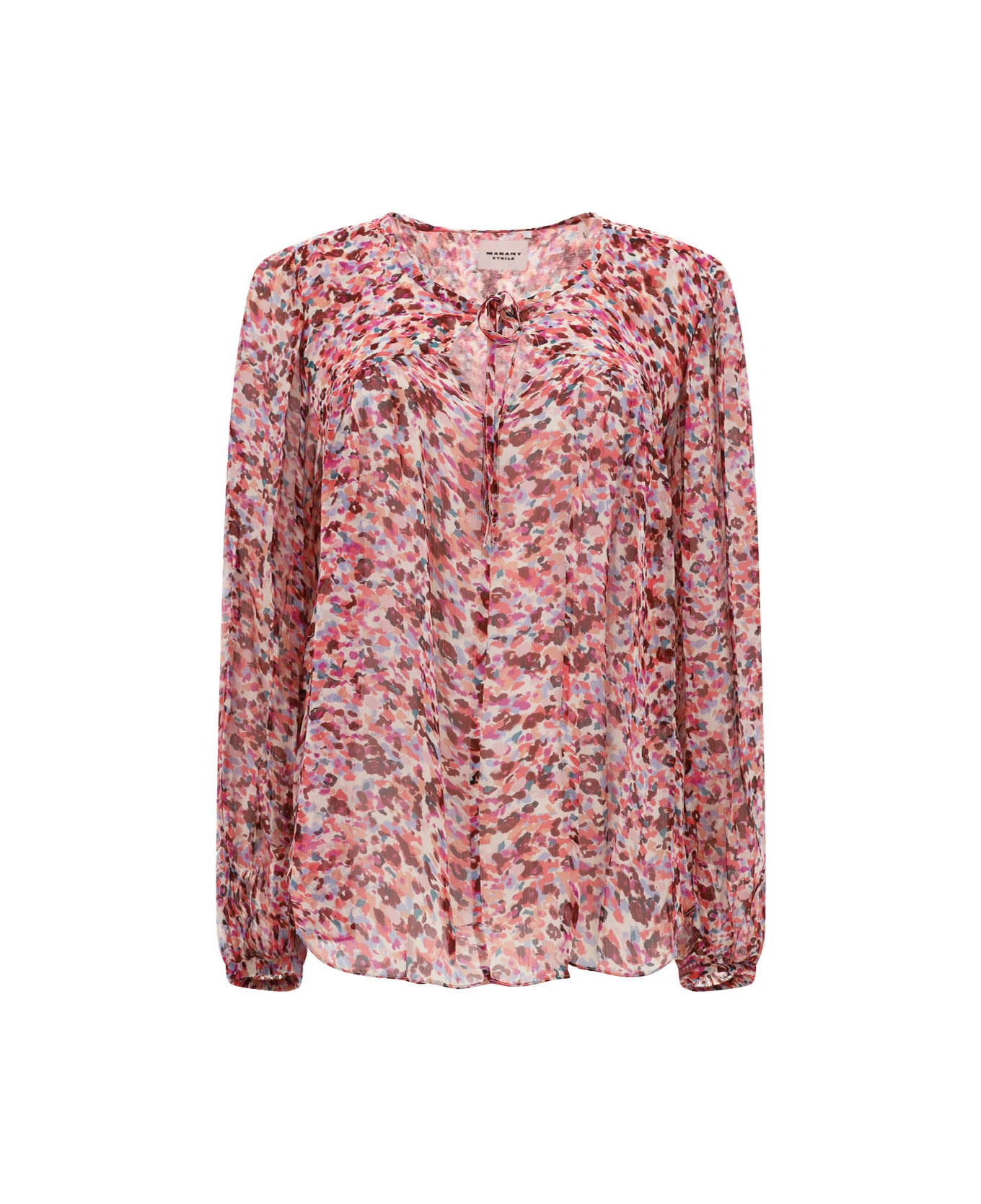 Daytonea shirt by isabel marant etoile, crew neck, matching ribbon detail to tie at front, keyhole neckline, multicolored floral pattern, elasticized cuffs, regular fit.