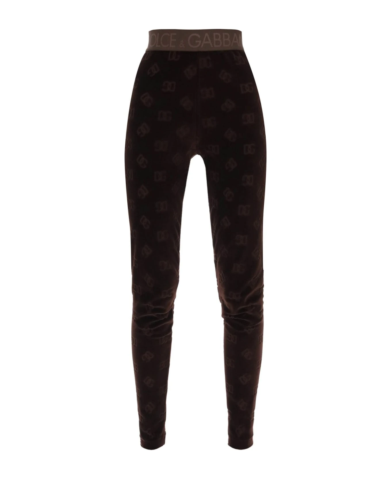 Dolce&Gabbana leggings crafted in pure cotton chenille with monogram motif all-over. They feature logo elastic band at waist and back invisible closure with zipper and hook. The model is 177 cm tall and wears size IT 40.