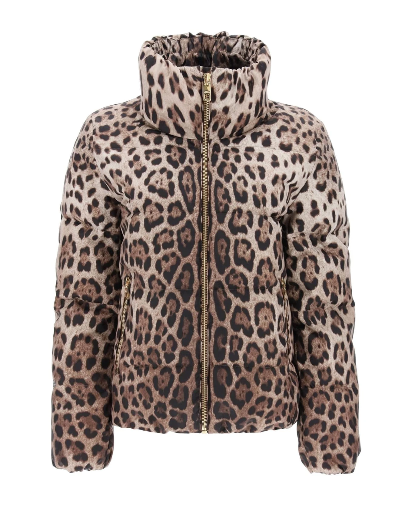 Dolce & Gabbana short puffer jacket crafted in leopard printed matte nylon. Shaped to a straight, high-neck silhouette, it is finished with elasticated trims at the collar, cuffs and hem. Zipper fastening and pockets are detailed with branded pullers. Polyester padding. The model is 177 cm tall and wears a size IT 40.