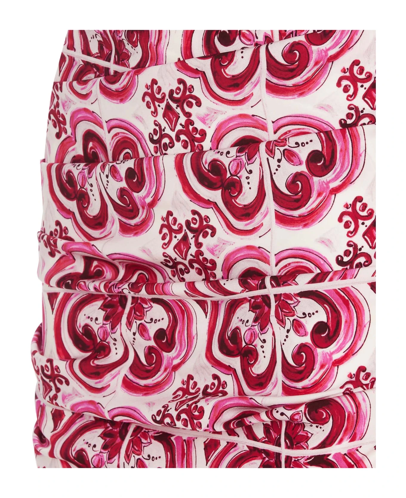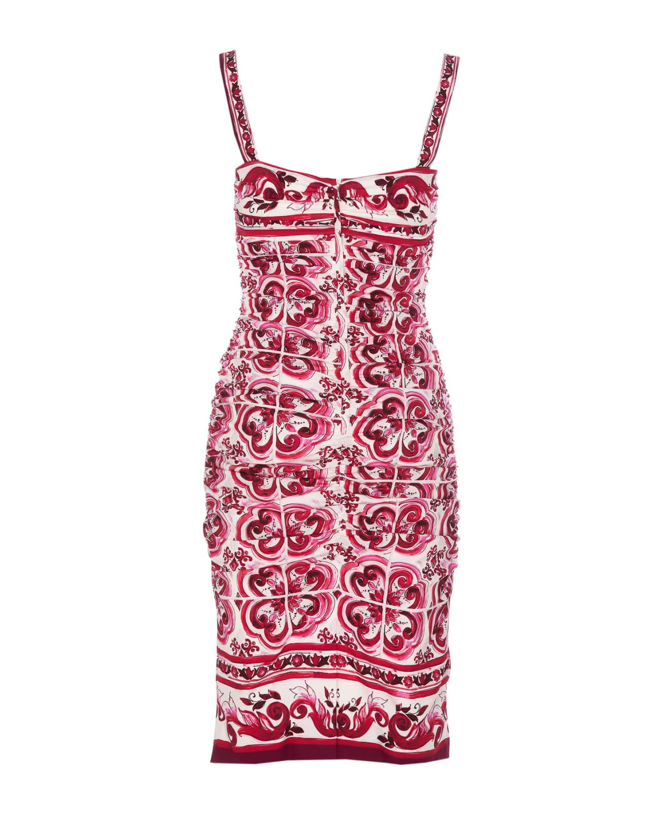 Dolce&Gabbana whit and pink Maiolica print dress, zip closure on the back, sleveeless, tight model, split detail on the back