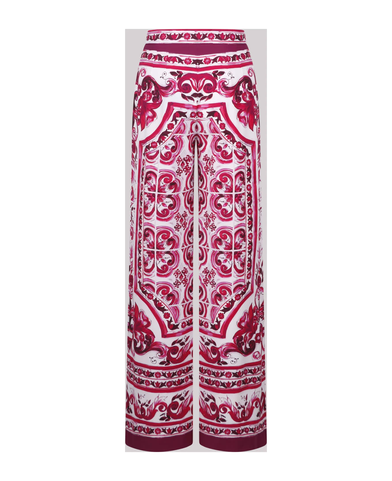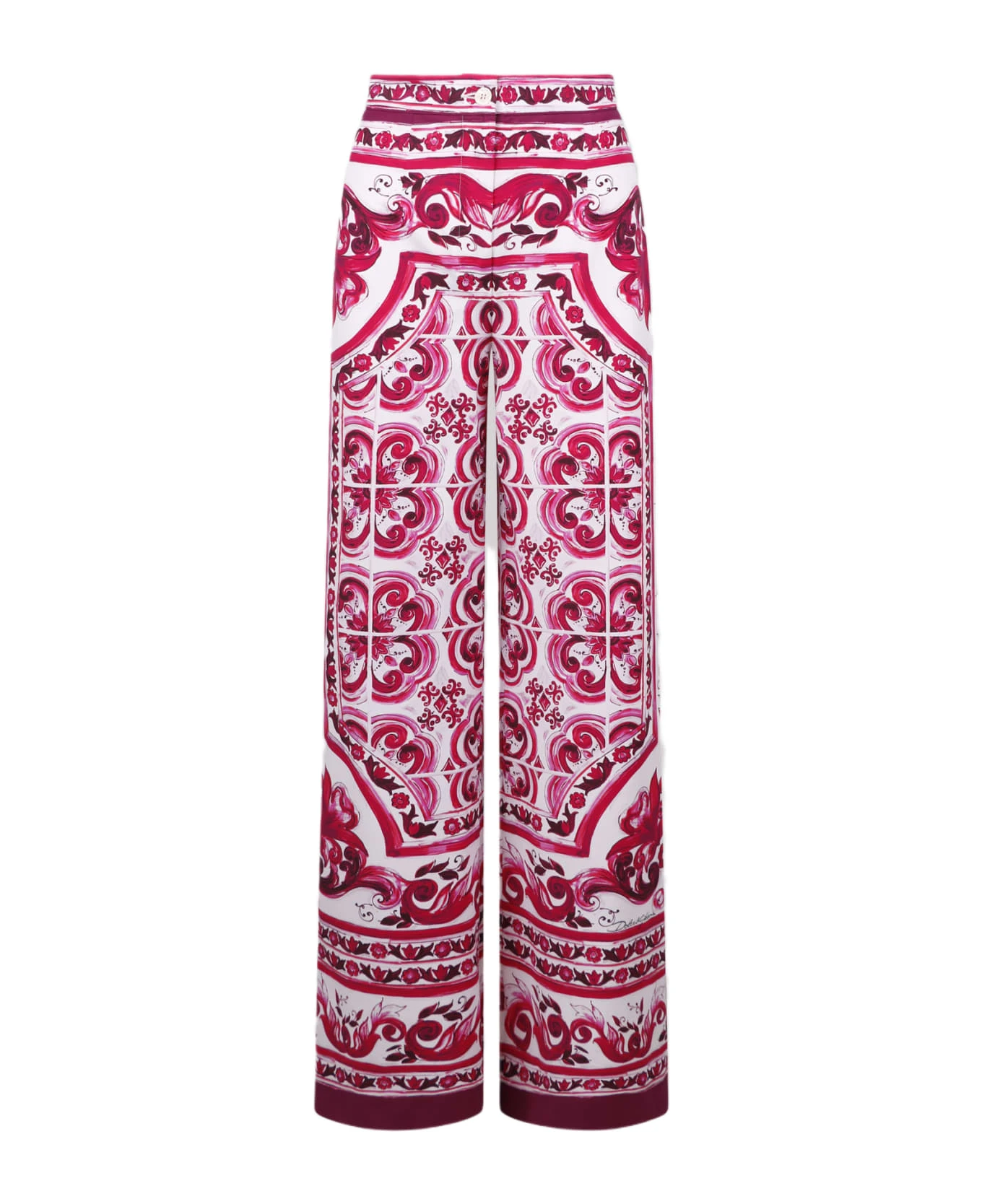 Majolica-print wide-leg trousers from DOLCE & GABBANAStretch design. Majolica print. High-waisted. Concealed fly and button fastening. Two side inset pockets. Wide leg. 71% Polyamide, 29% Elastane. Made in Italy.