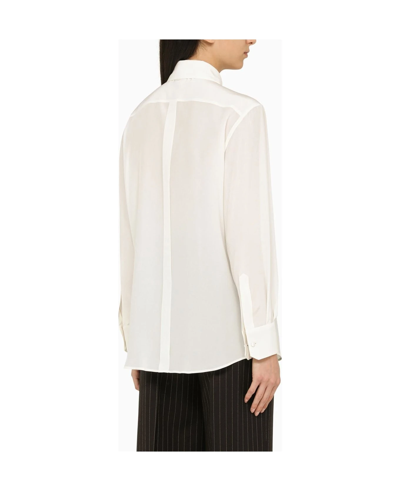 White silk shirt by Dolce & Gabbana featuring a concealed button placket and long sleeves.