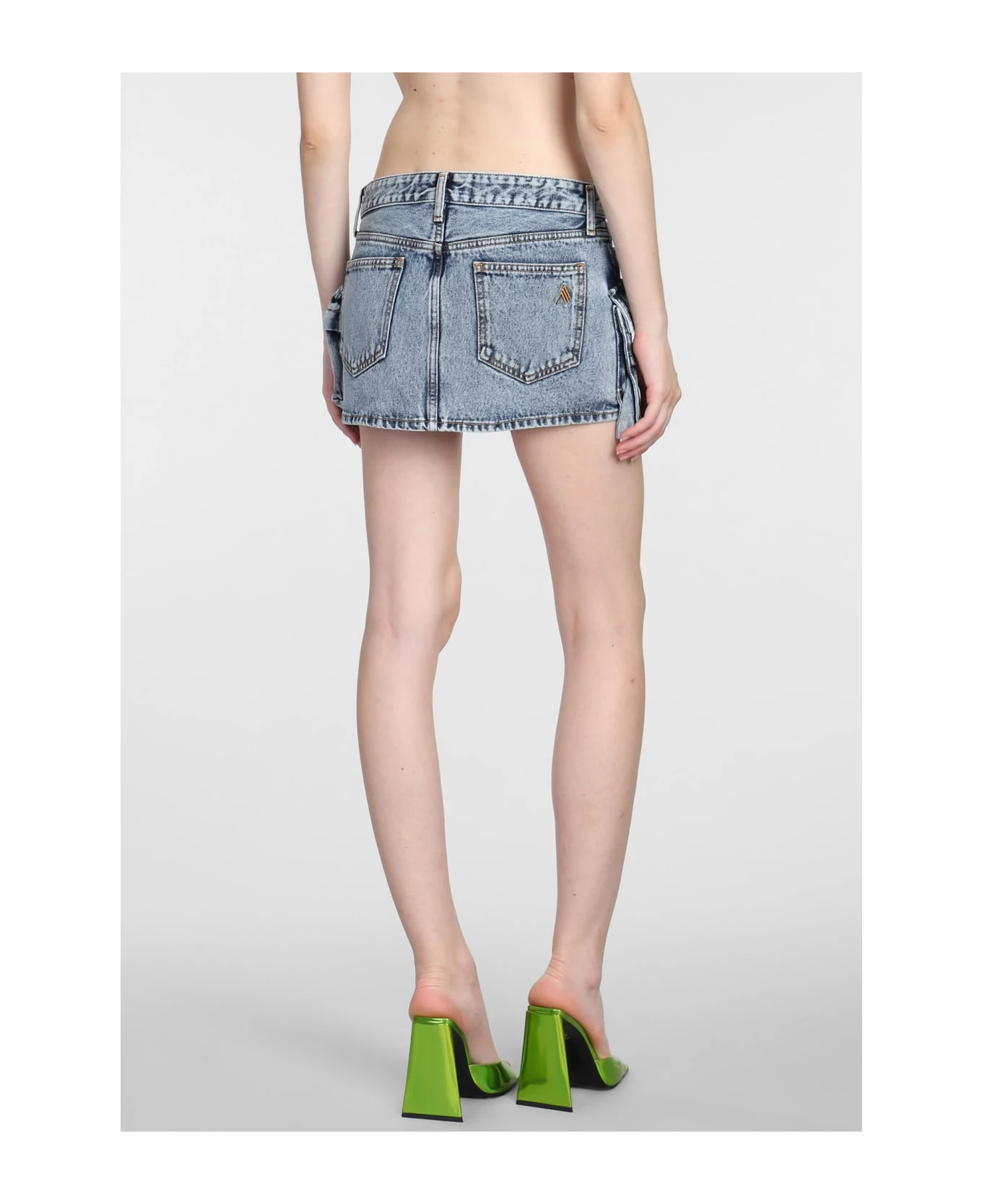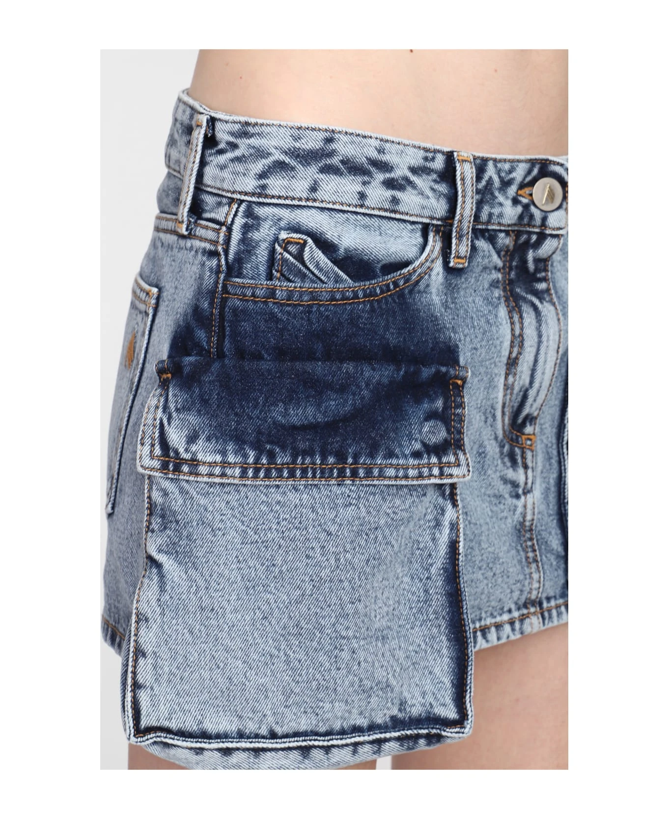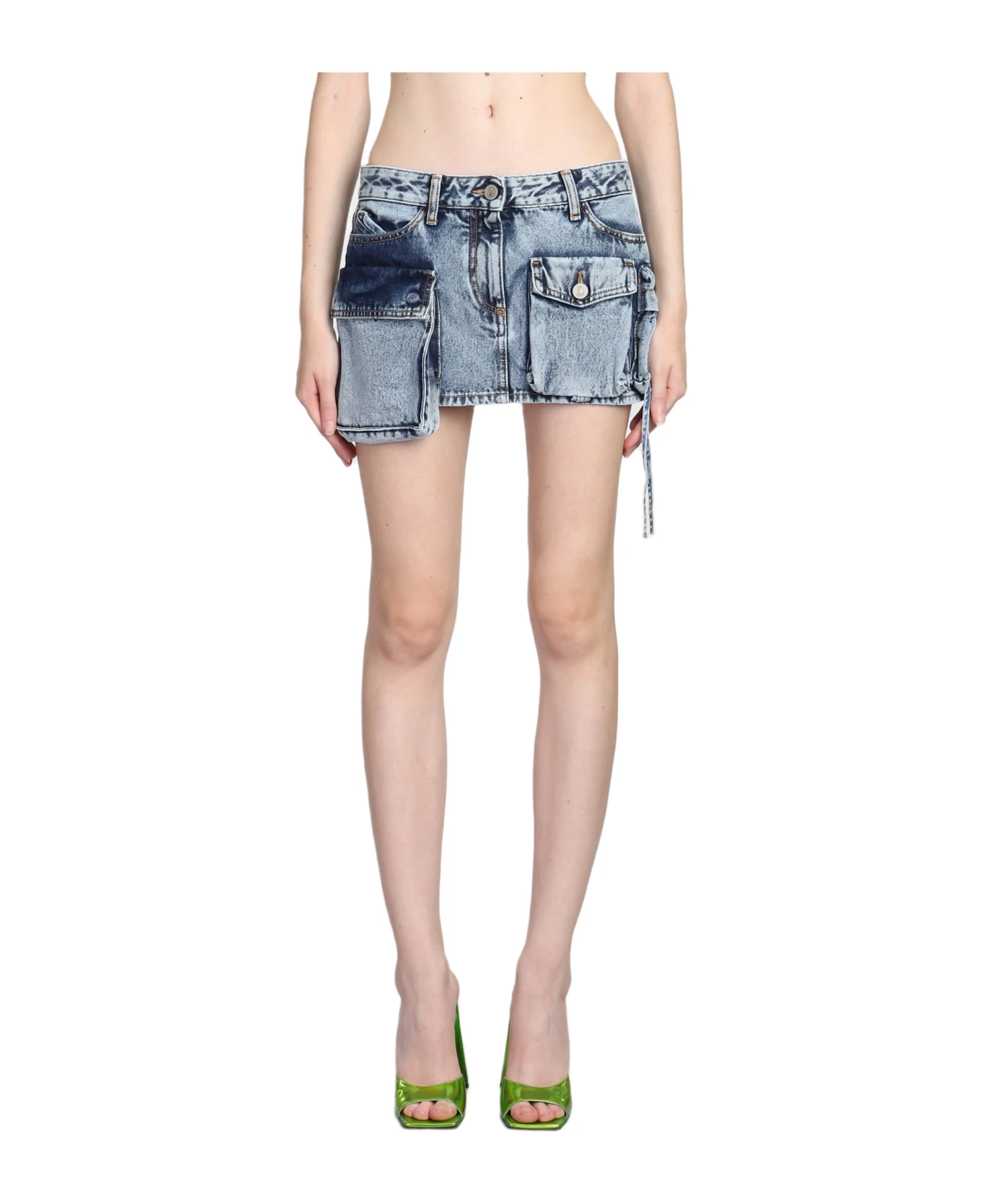 Fay Skirt in cyan cotton, frontal closure with zip and buttons, low waist, waist belt loops, five pockets, cargo pockets, 100% cotton, Made in Italy, model is 180 cm and wears size 27