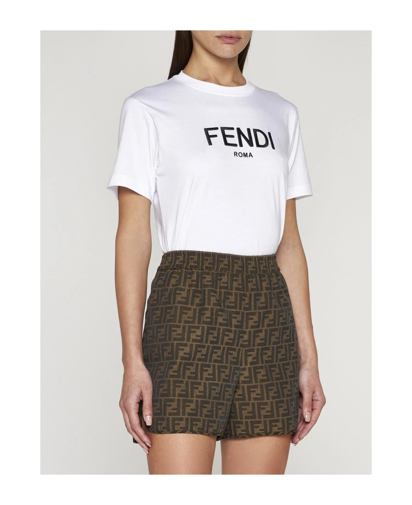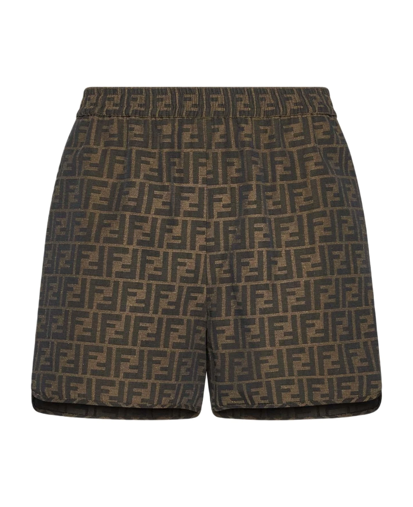 Fendi’s Cotton Blend Shorts Featuring All-over Dark Brown Ff Logo On Tobacco Background, Elasticated Waistband And Side Pockets.