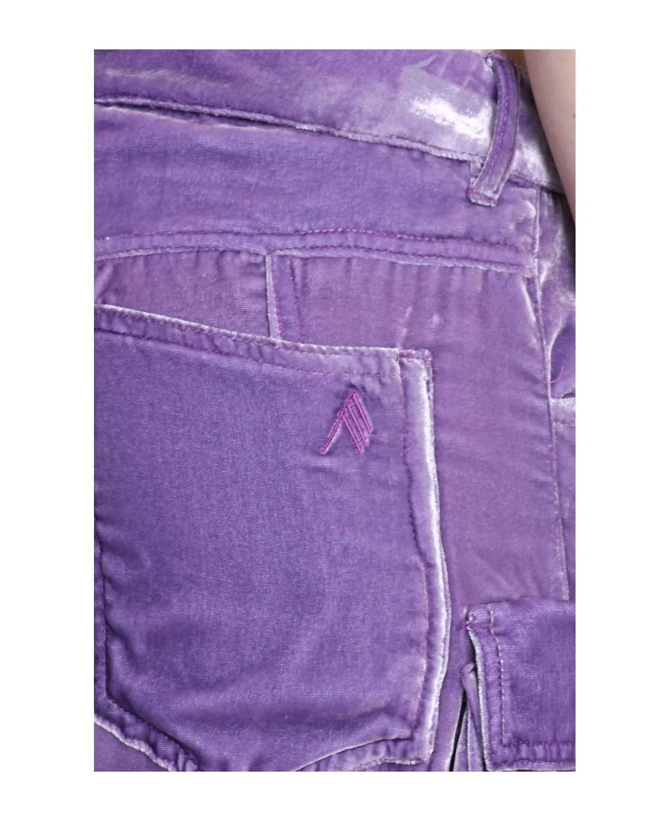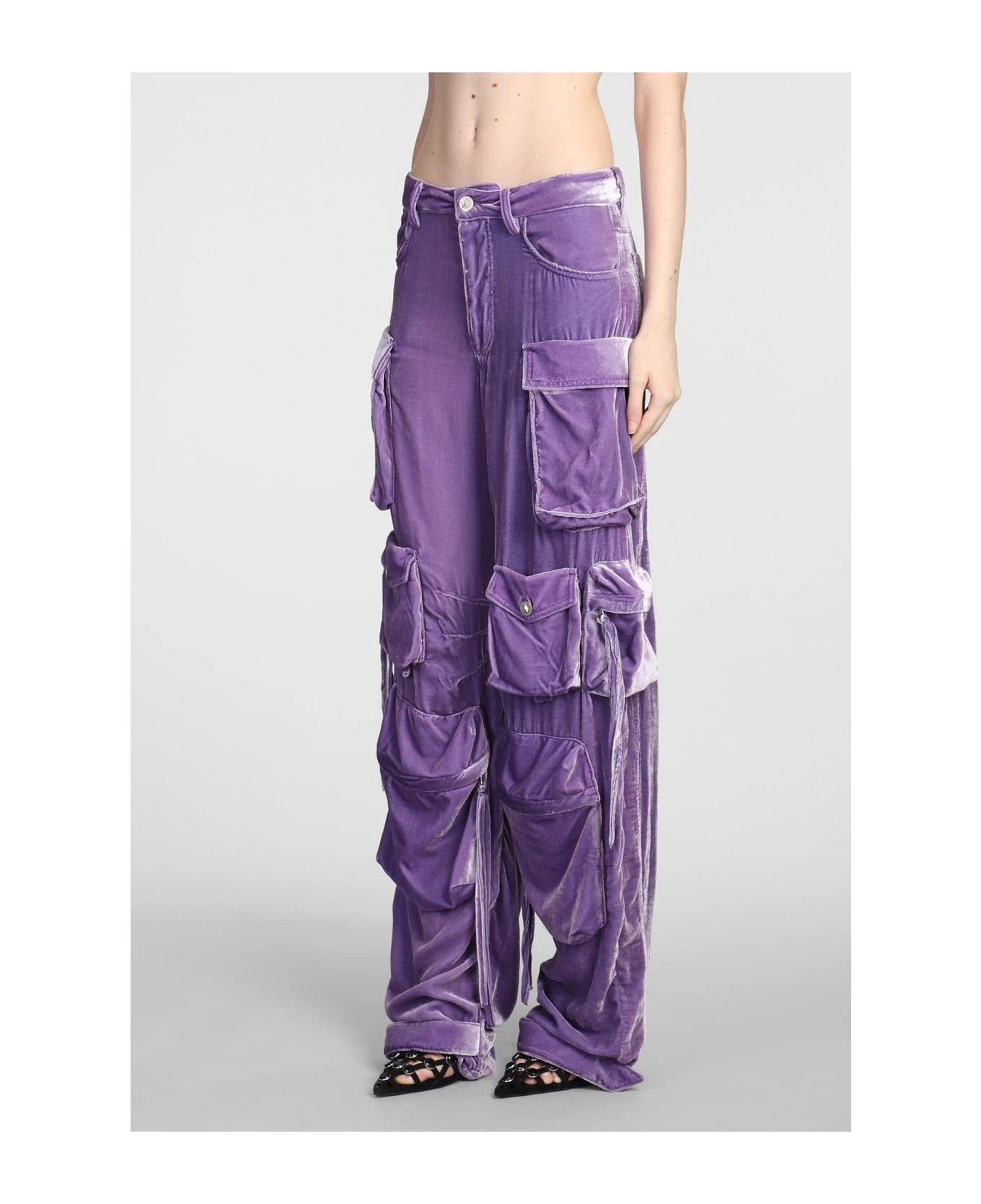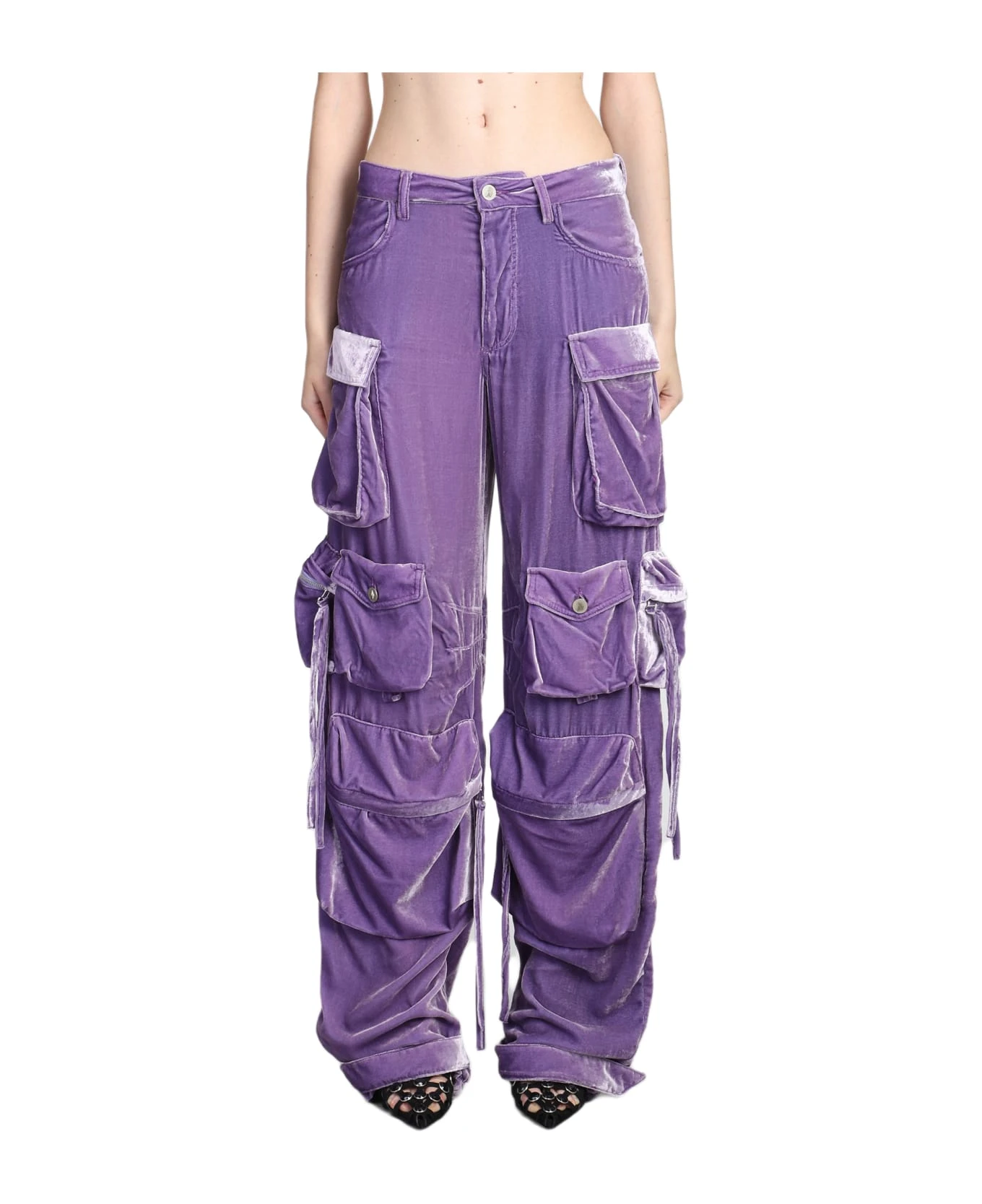 Fern Pants in Viola viscose, cargo pockets, five pockets, button and zip closure, waist belt loops, strap detail, Made in Italy, 82% viscose, 82% nylon 18% spandex, Model is 180 cm and wears 38