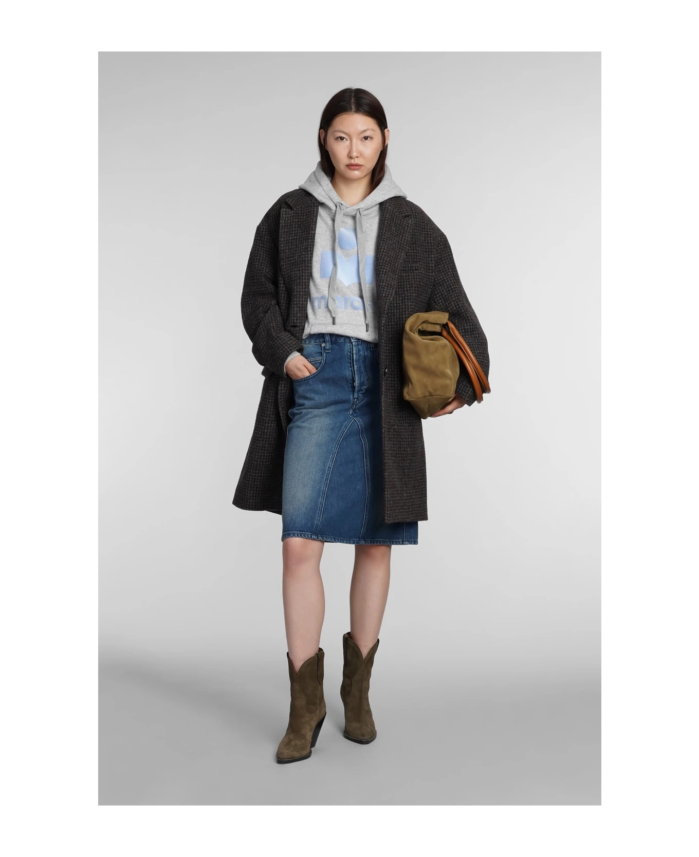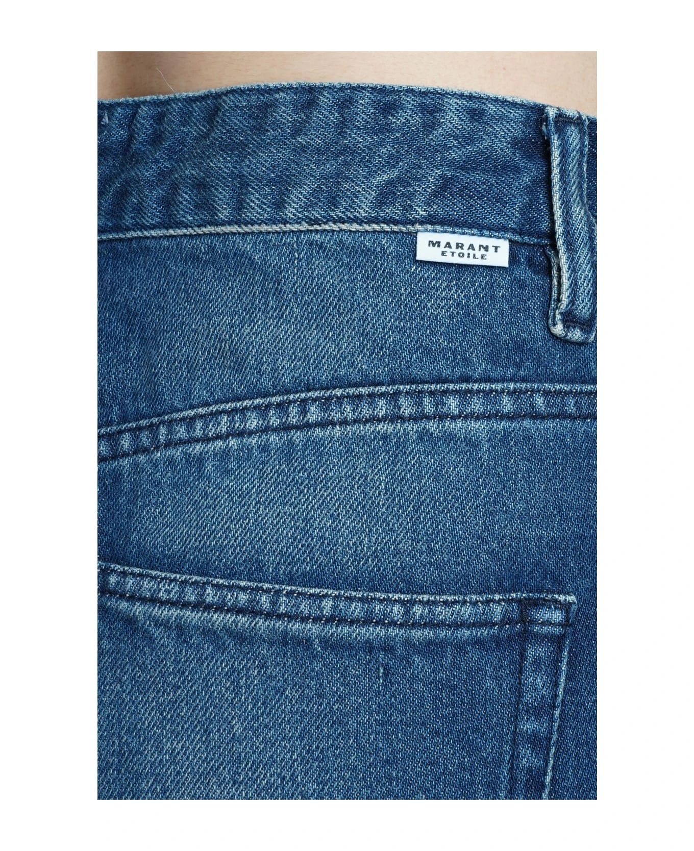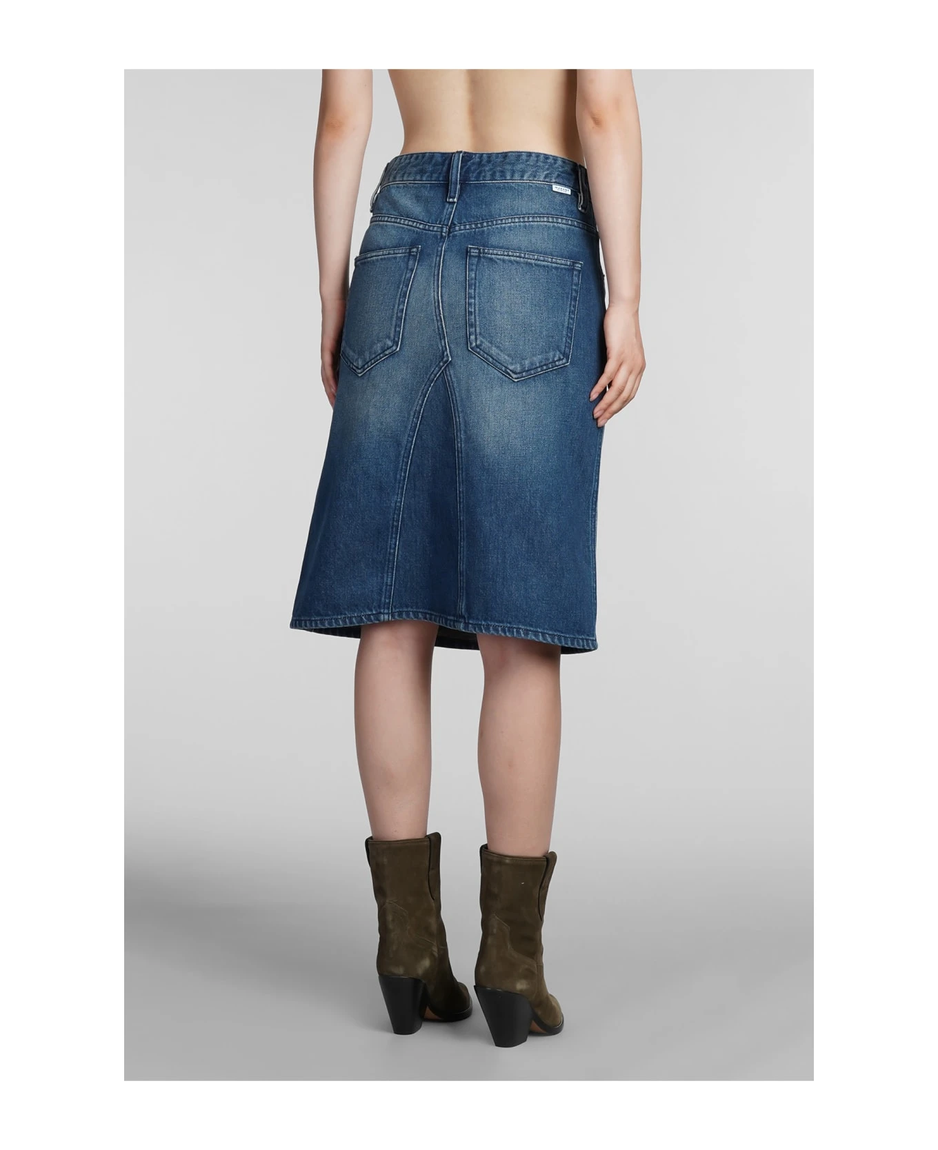 Fiali Skirt in blue cotton, flap closure, five pockets, belt loops, rear logo label, 100% cotton, Made in Tunisia, Model is 1. 77 cm and wears size 36