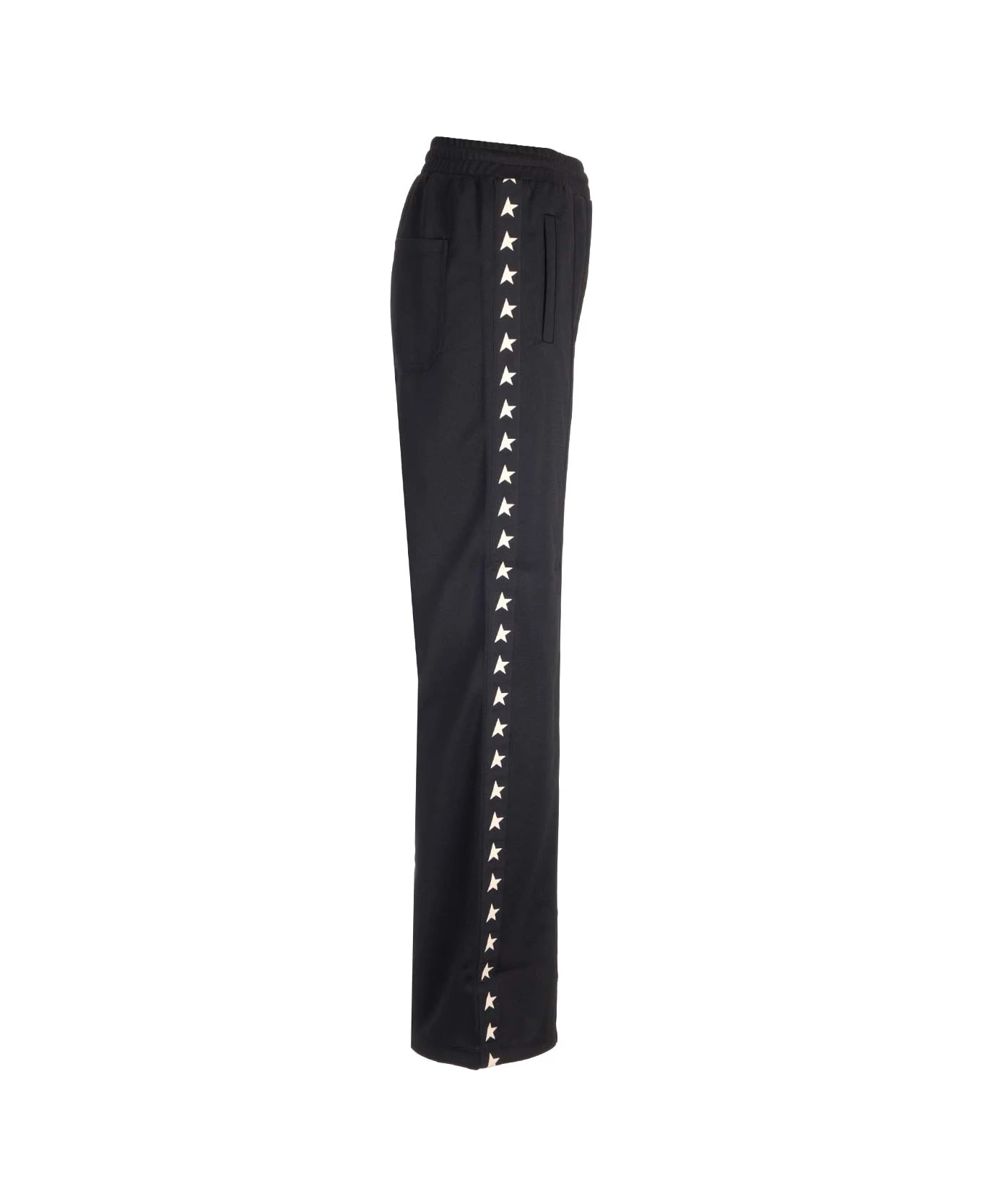 Golden Goose black triacetate jogger trousers with white stars side band and elastic waistband.