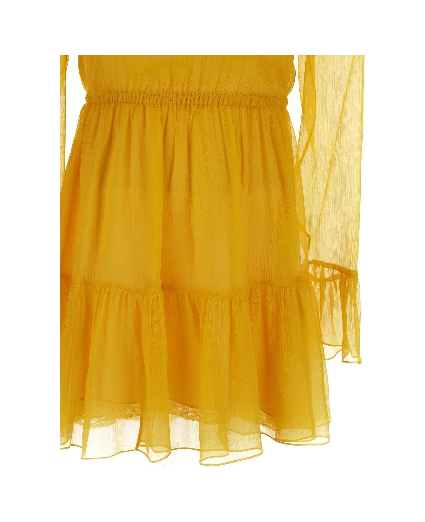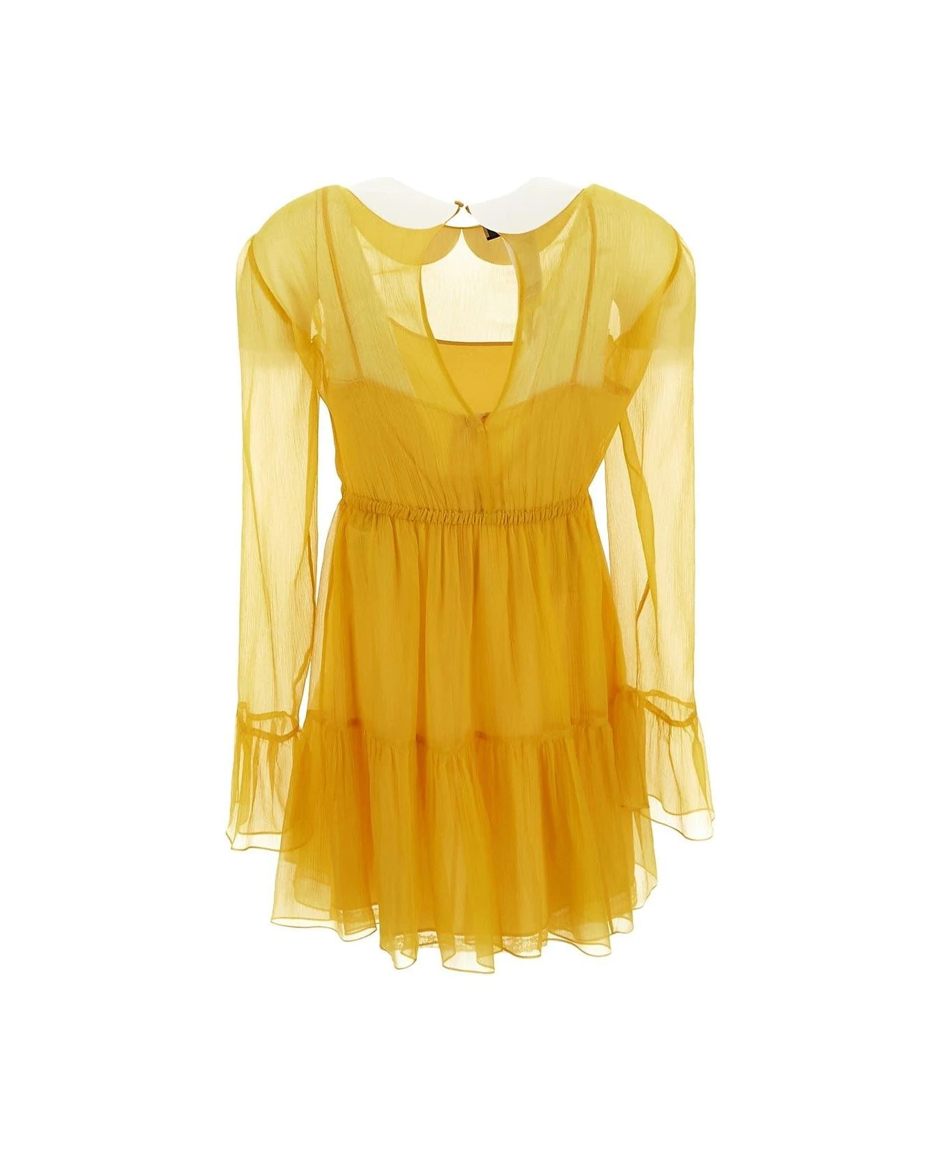 Gucci dress in yellow silk with long sleeves. The item is featured by white collar and ribbed details.
