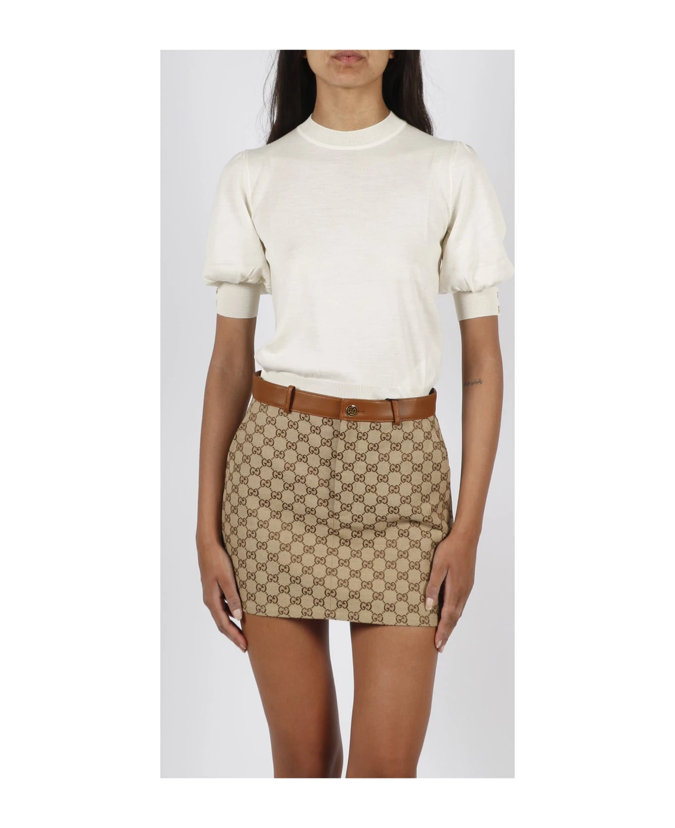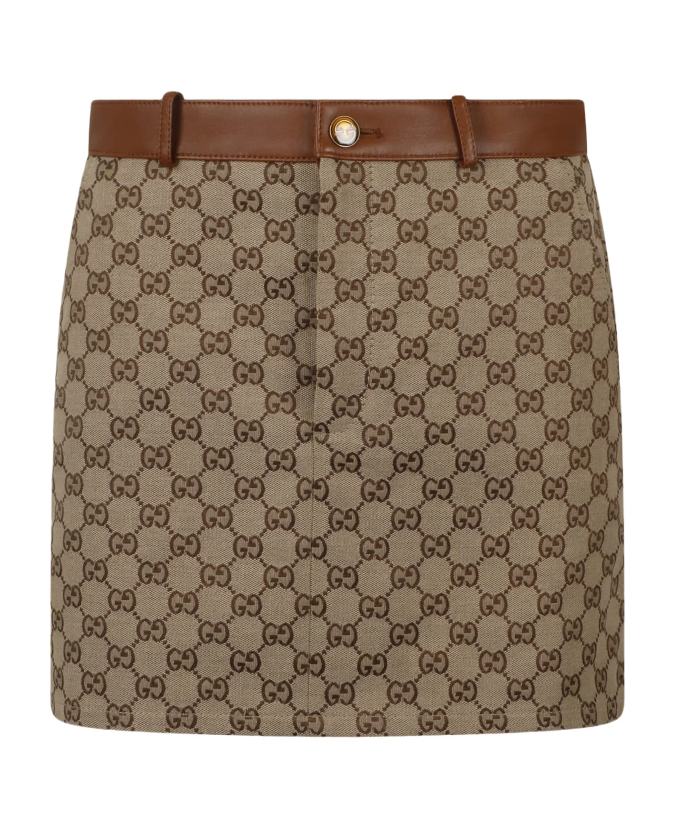 Gucci mini skirt, in GG canvas and leather trim. – FW23