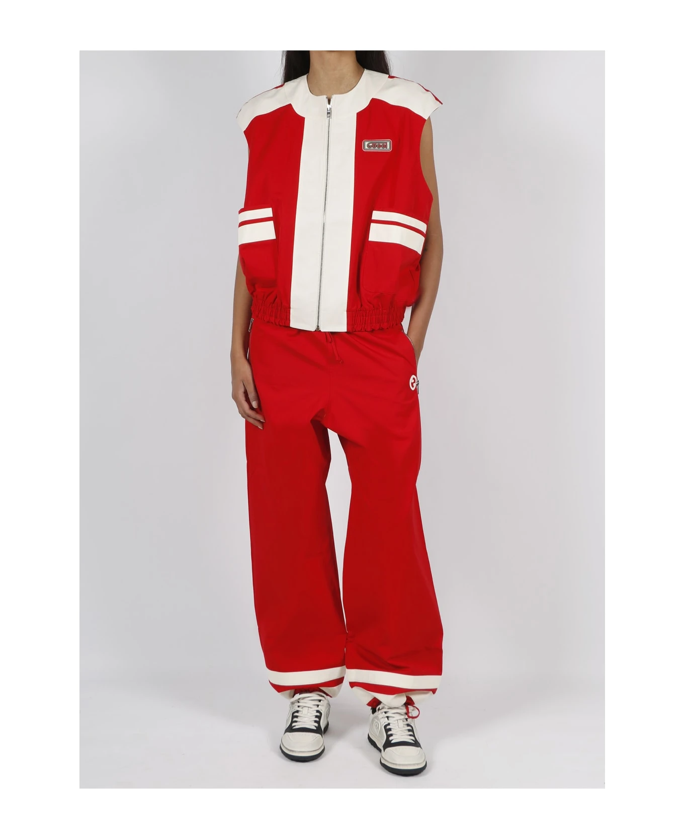 Gucci sporty pants, in cotton knit with contrasting inlay finishes and Round Interlocking G patch. – FW23