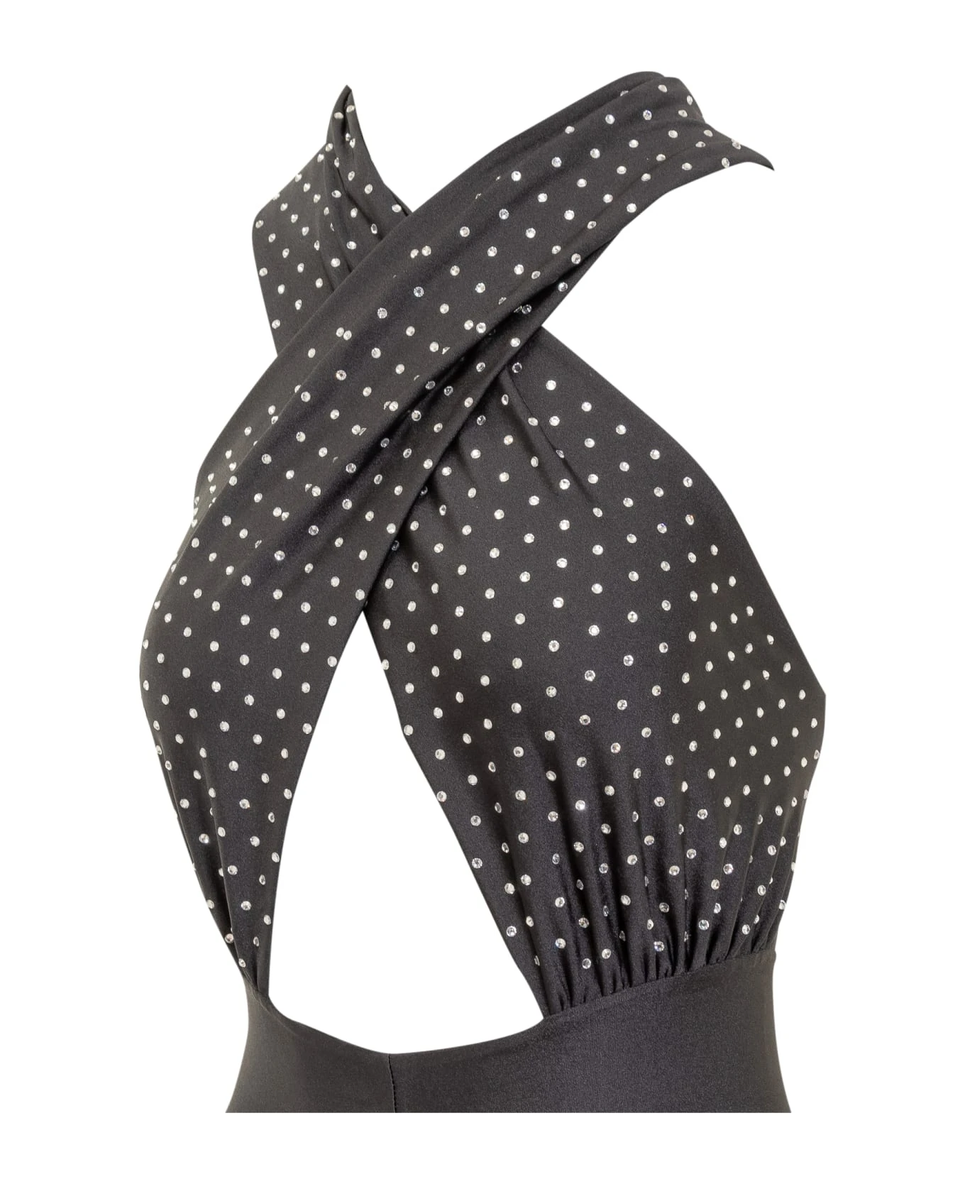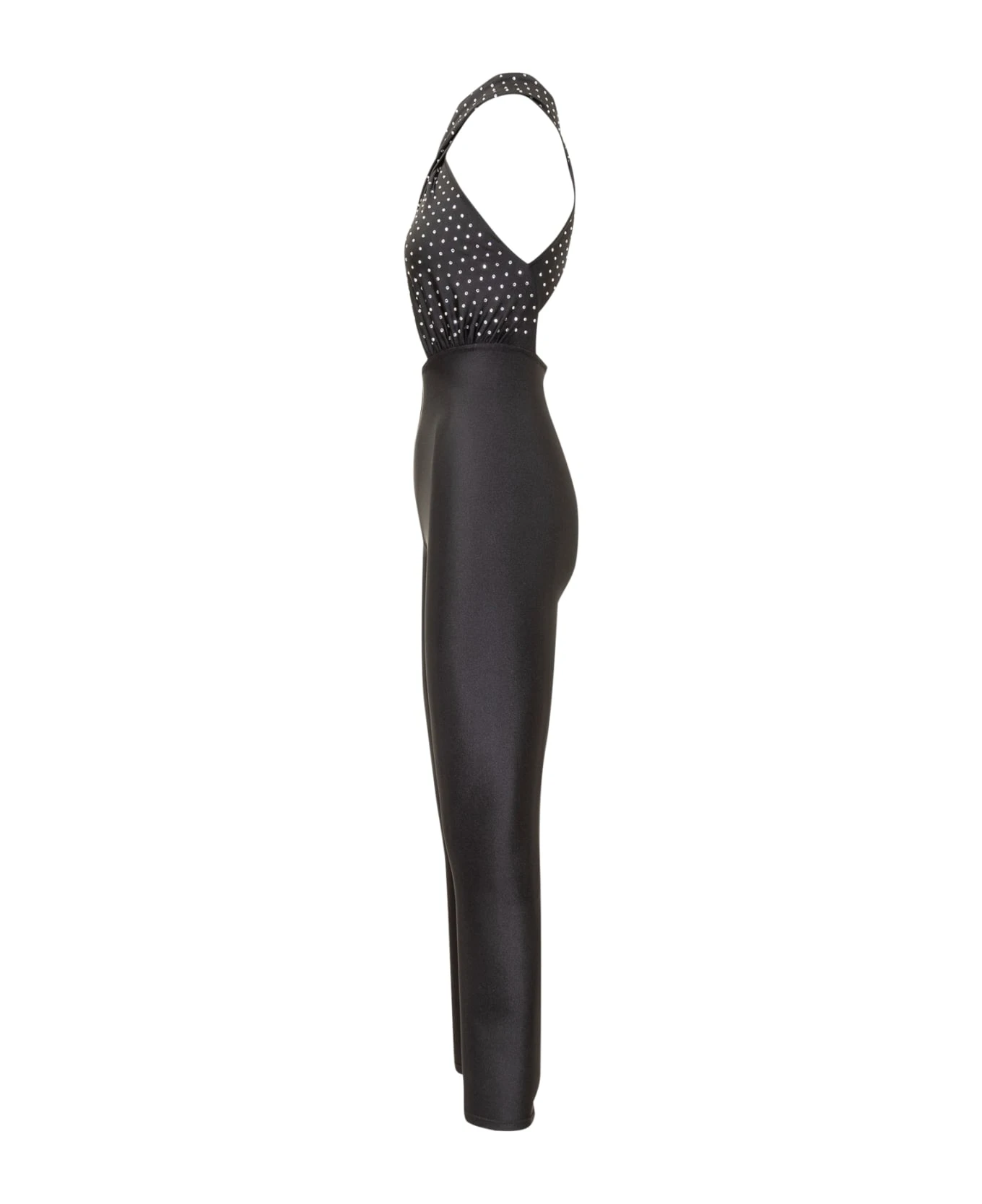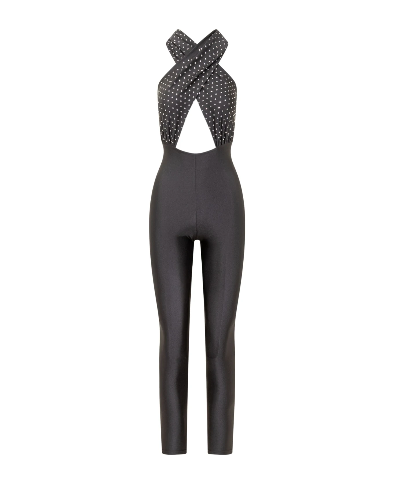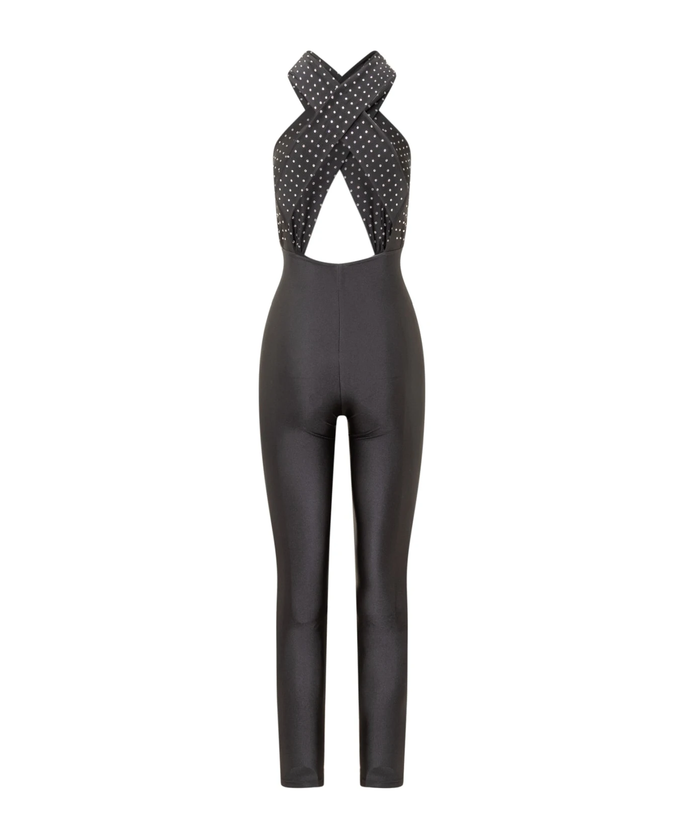 Elasticated jumpsuit. Long pants. Woven on the front and back. Crystals on the top.