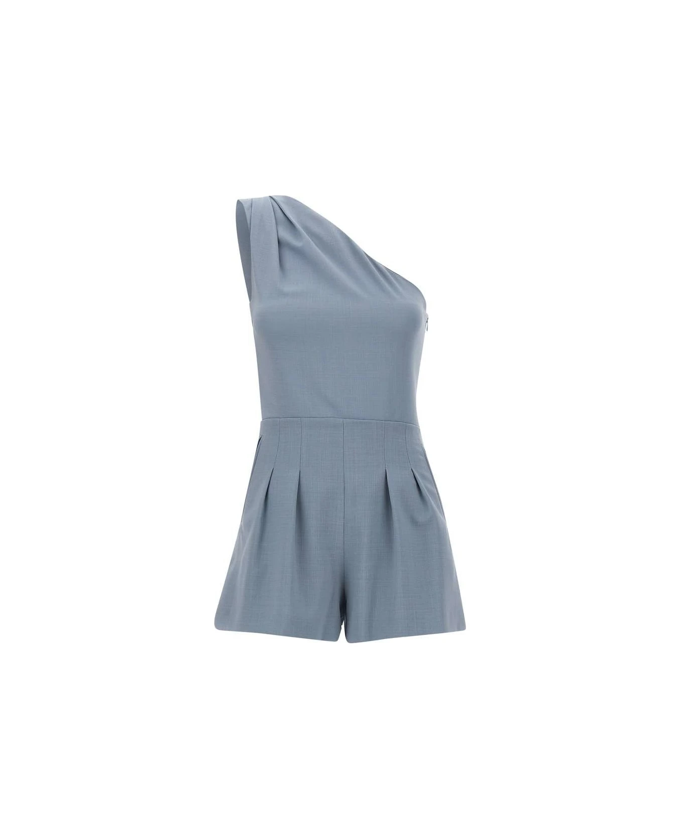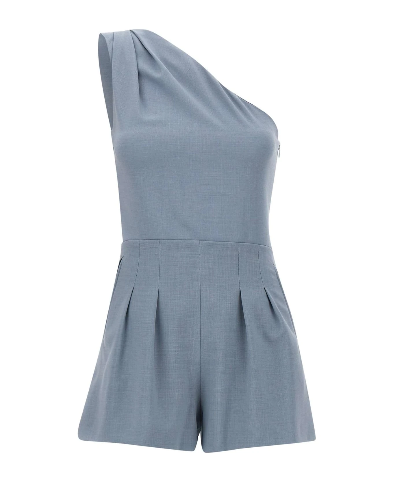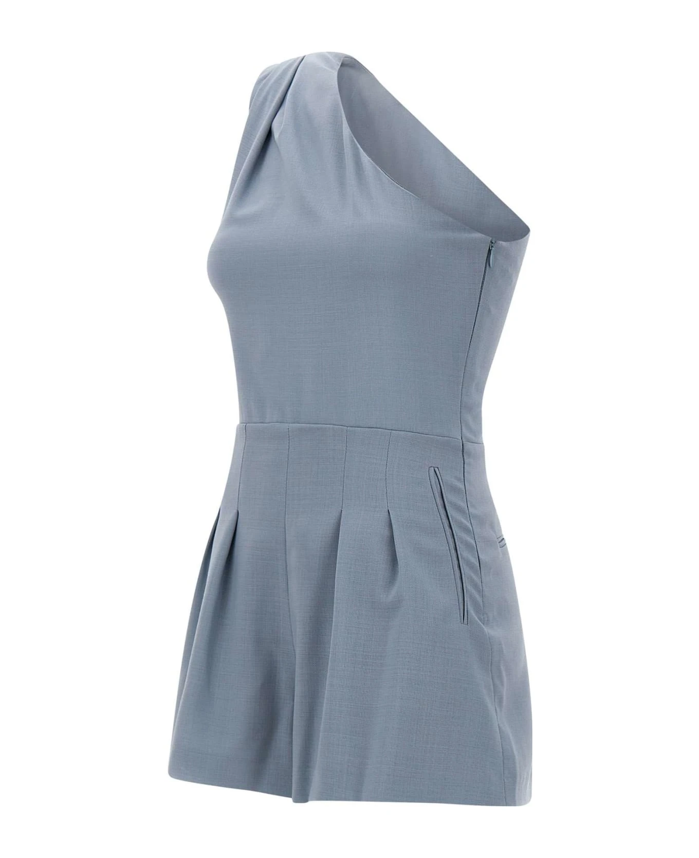 Wool jumpsuit Iro “Paloa”, powder grey, short, asymmetrical, one shoulder, pleated on front, side zip closure, two front welt pockets, two back pockets, slim fit.