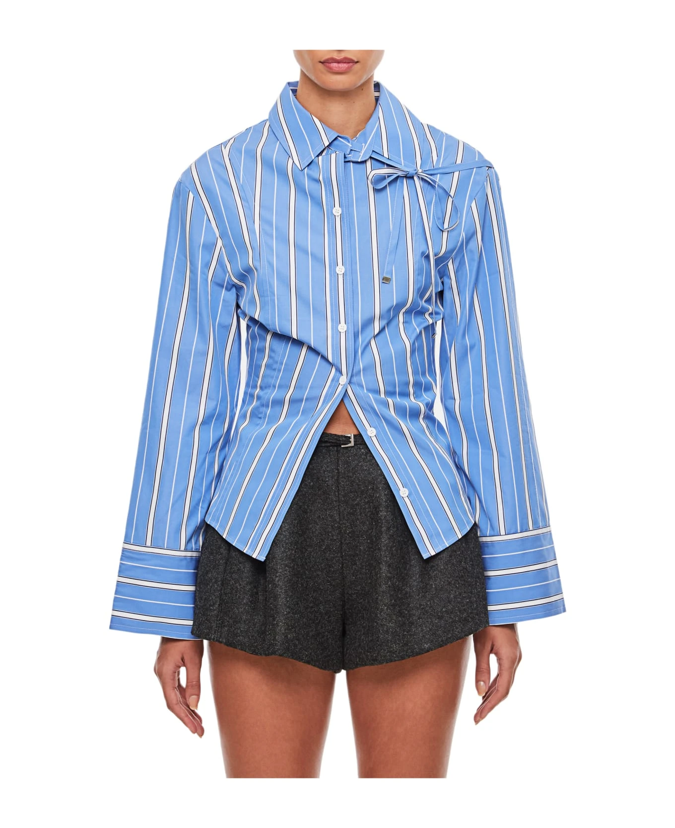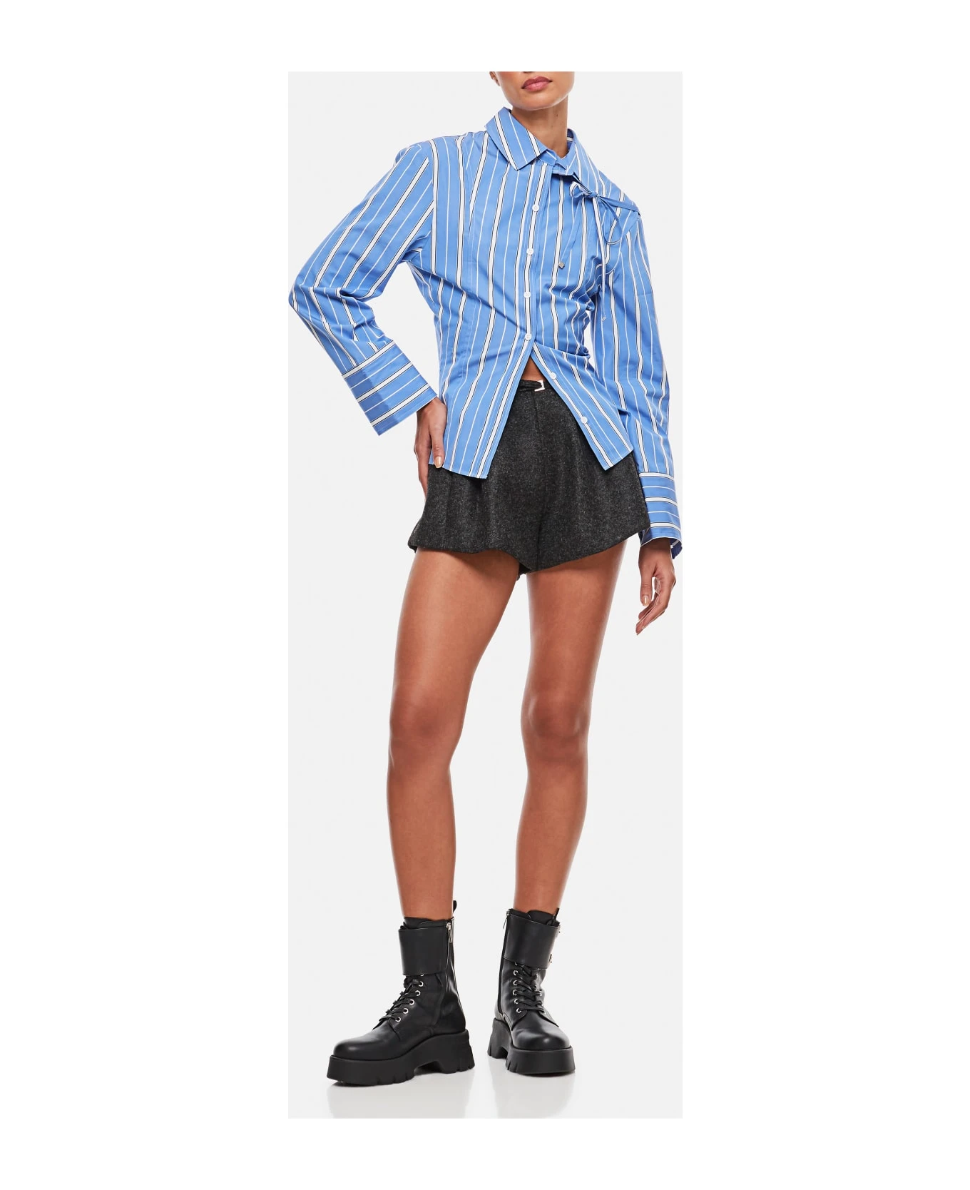 Front button closure. Fitted on the waist. Buttoned cuffs. Color: light blue.