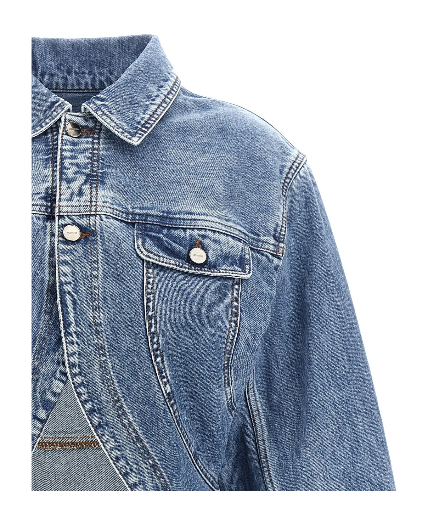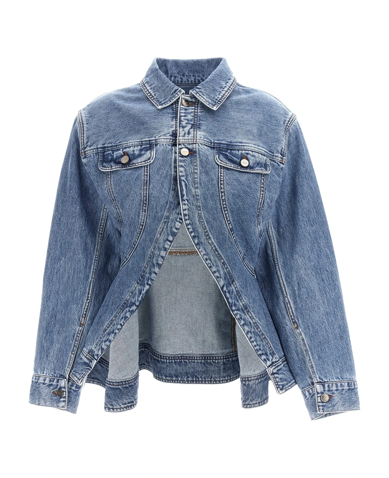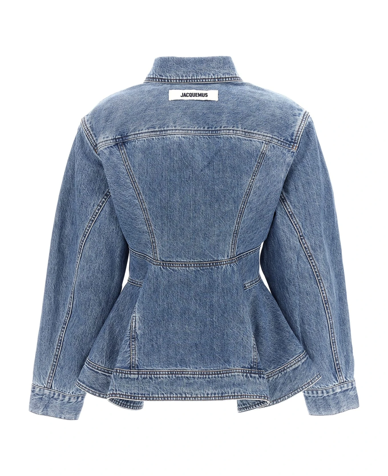 Denim ‘La veste de nime caraco’ jacket with front opening and button closure at the top, peplum at the back.