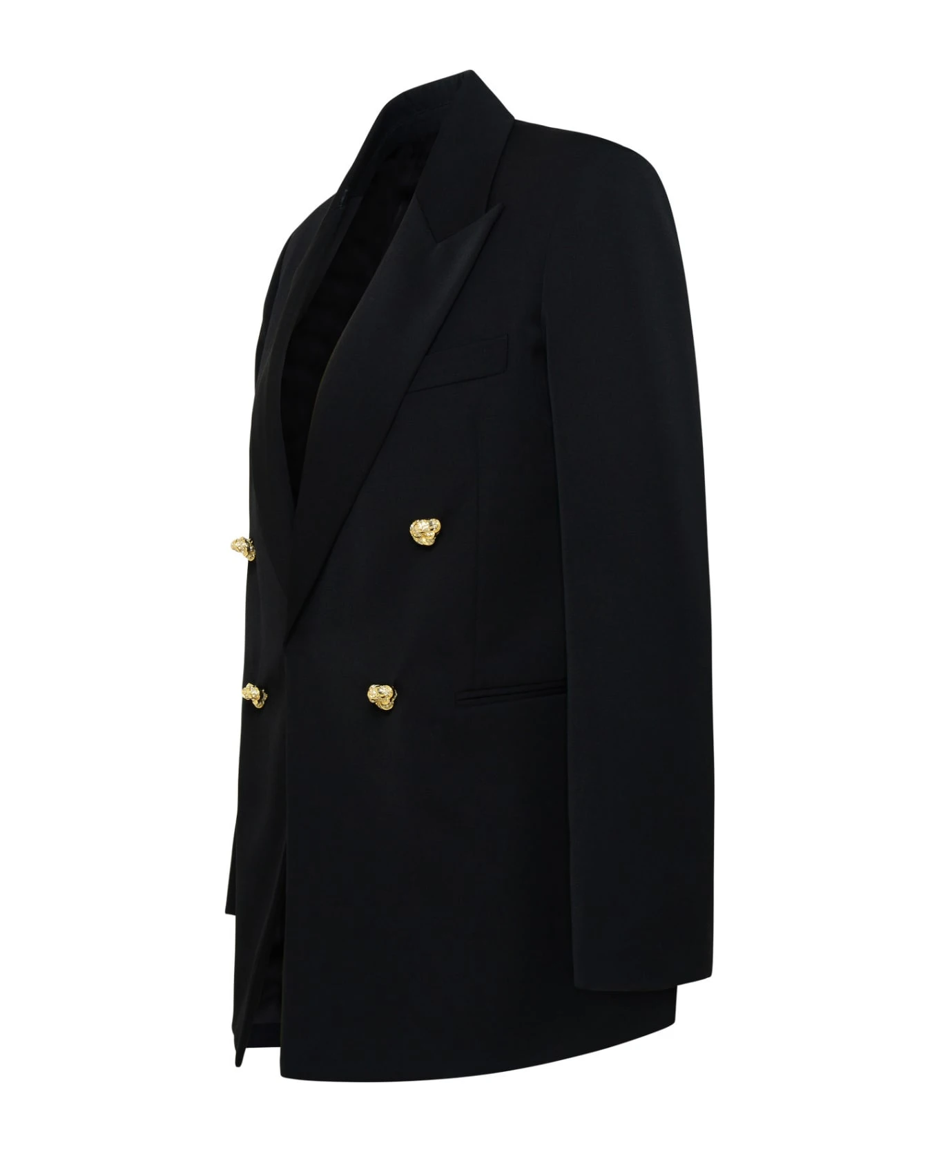 Double-breasted open blazer with lapel collar, chest pocket, welt pockets on the front, Melodie buttons, cuffs with side slit