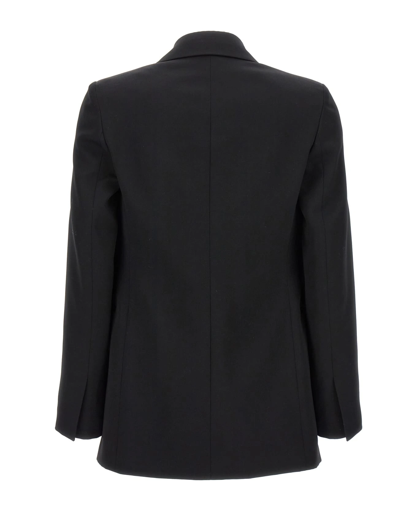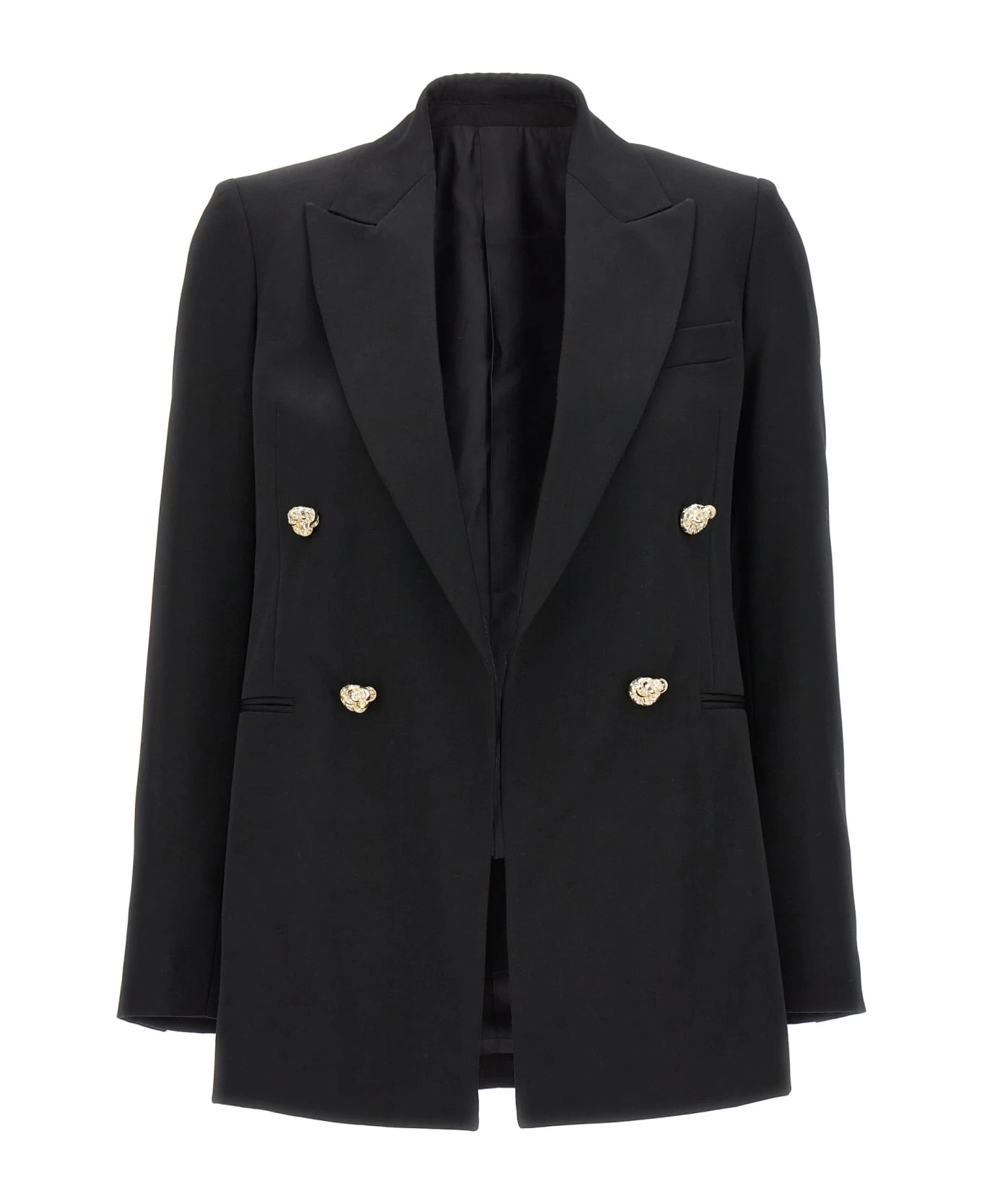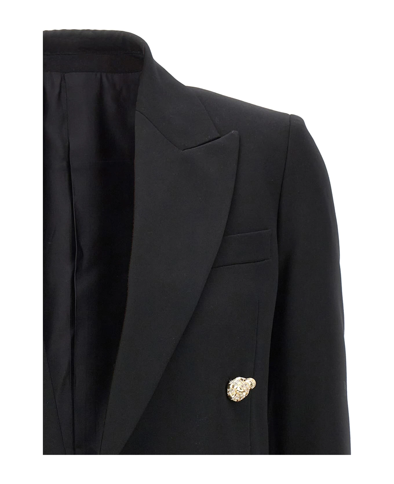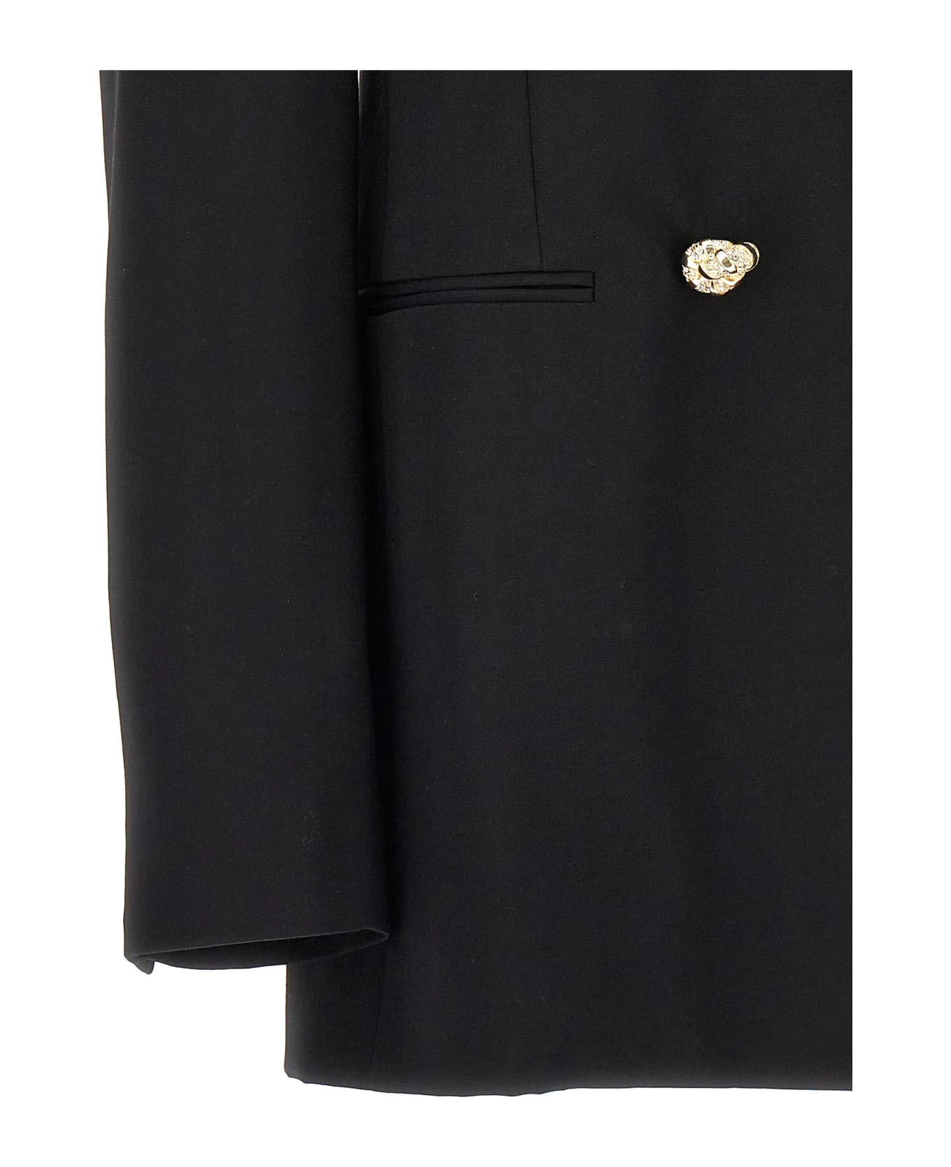 Double breast wool blazer with jewel button closure, pockets and long sleeves.