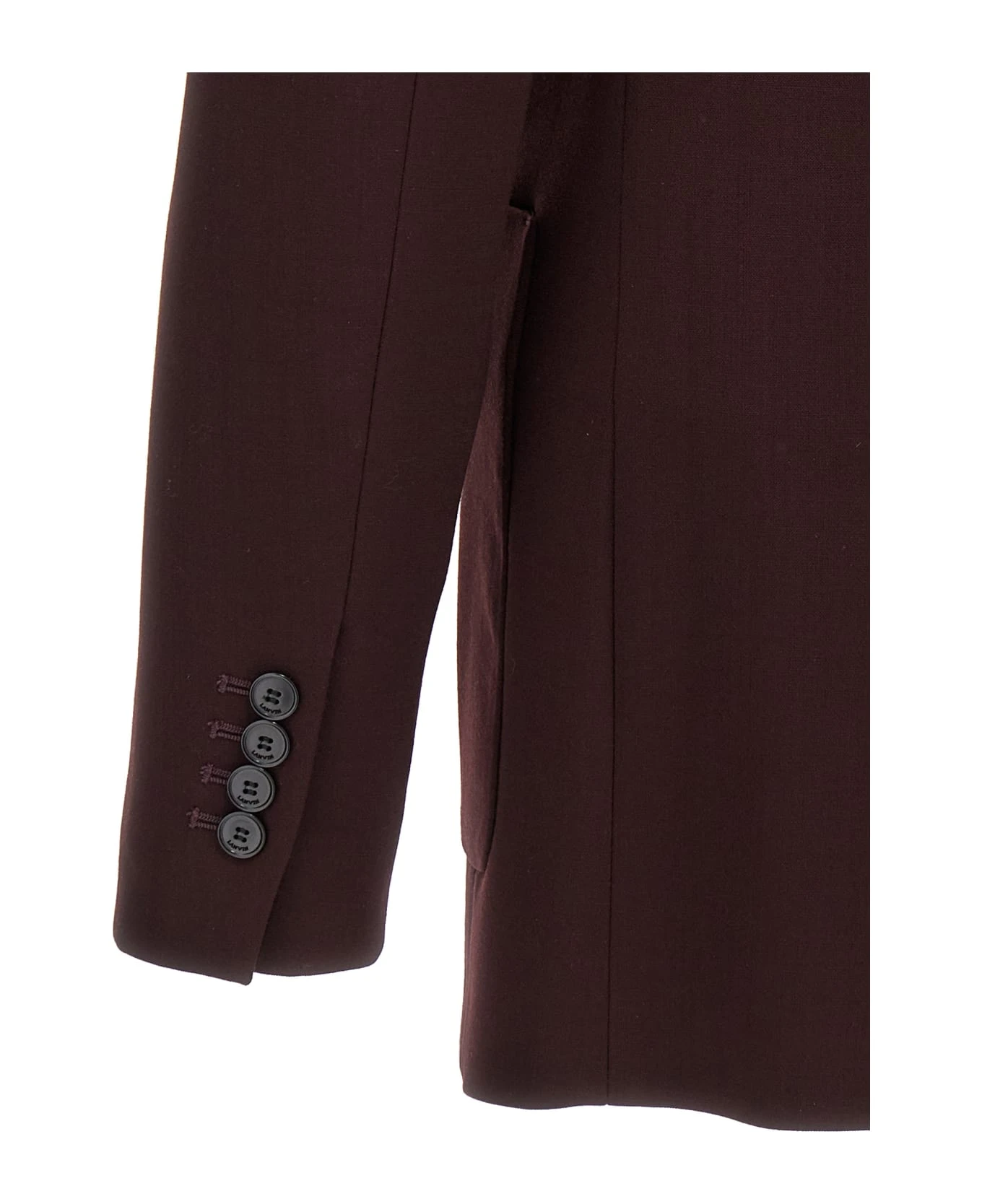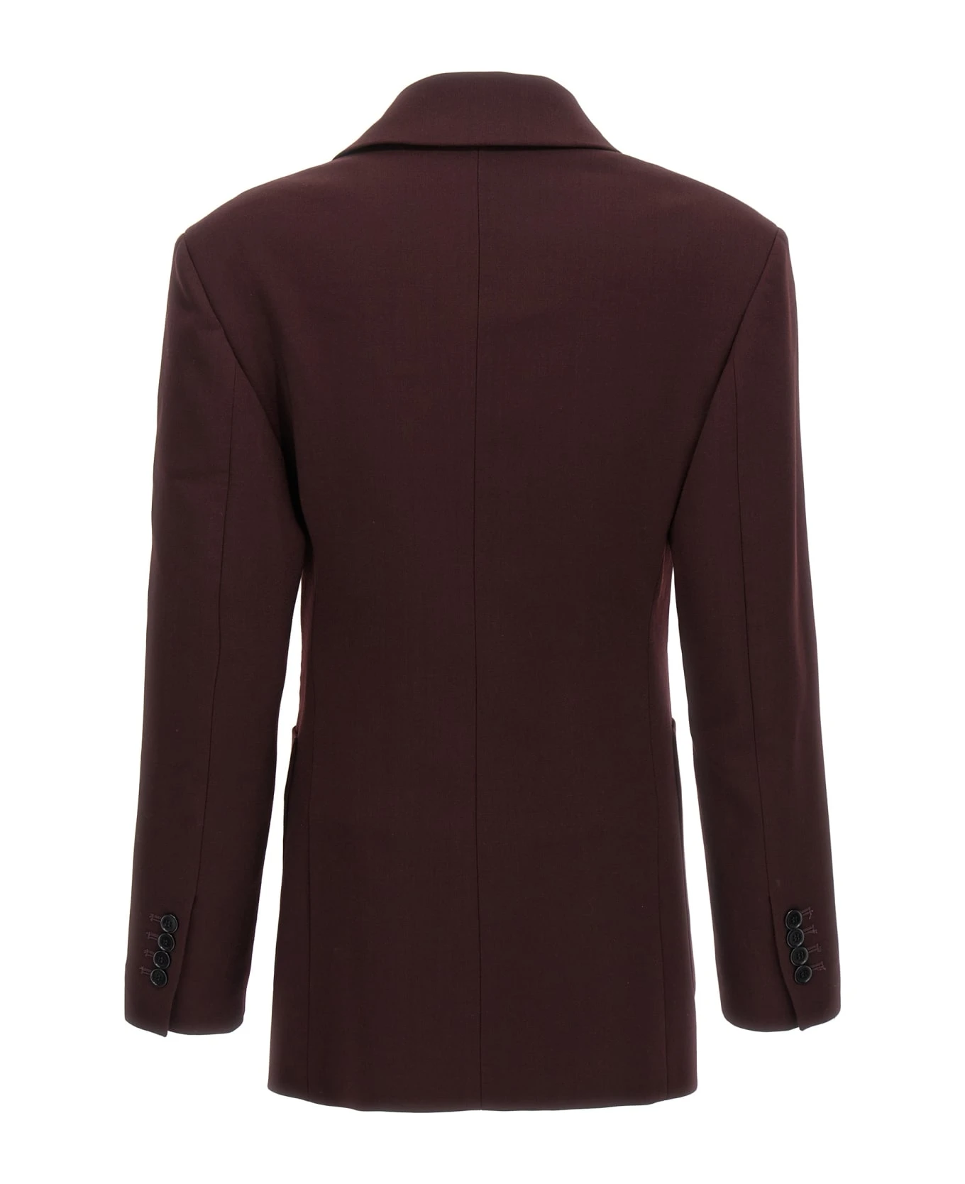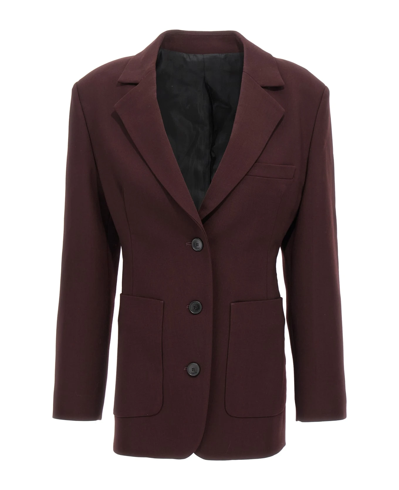 Single-breasted blazer in wool blend with button closure, pockets, and long sleeves.