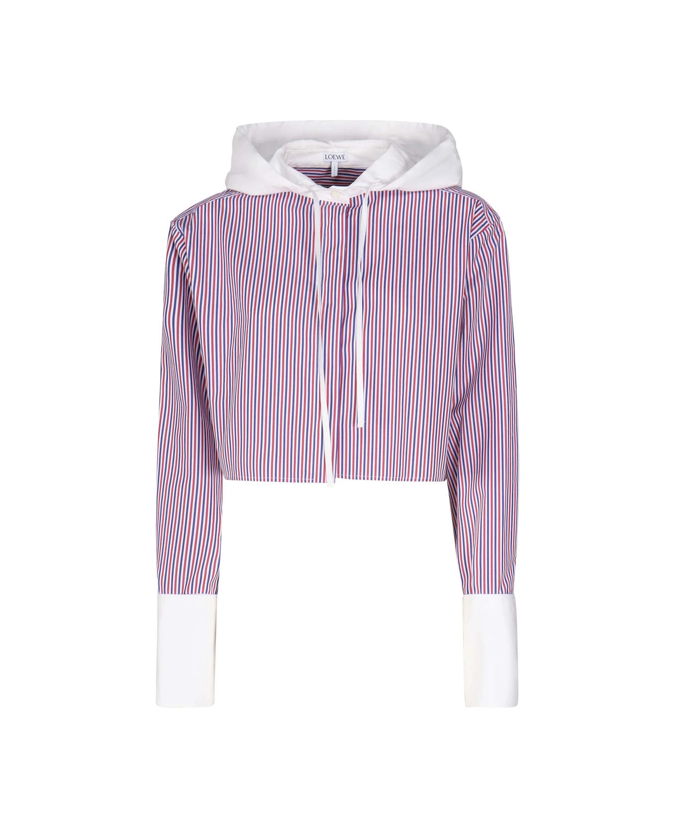 Blue/red/white Cropped Sweater With Hood In Striped Cotton from Loewe