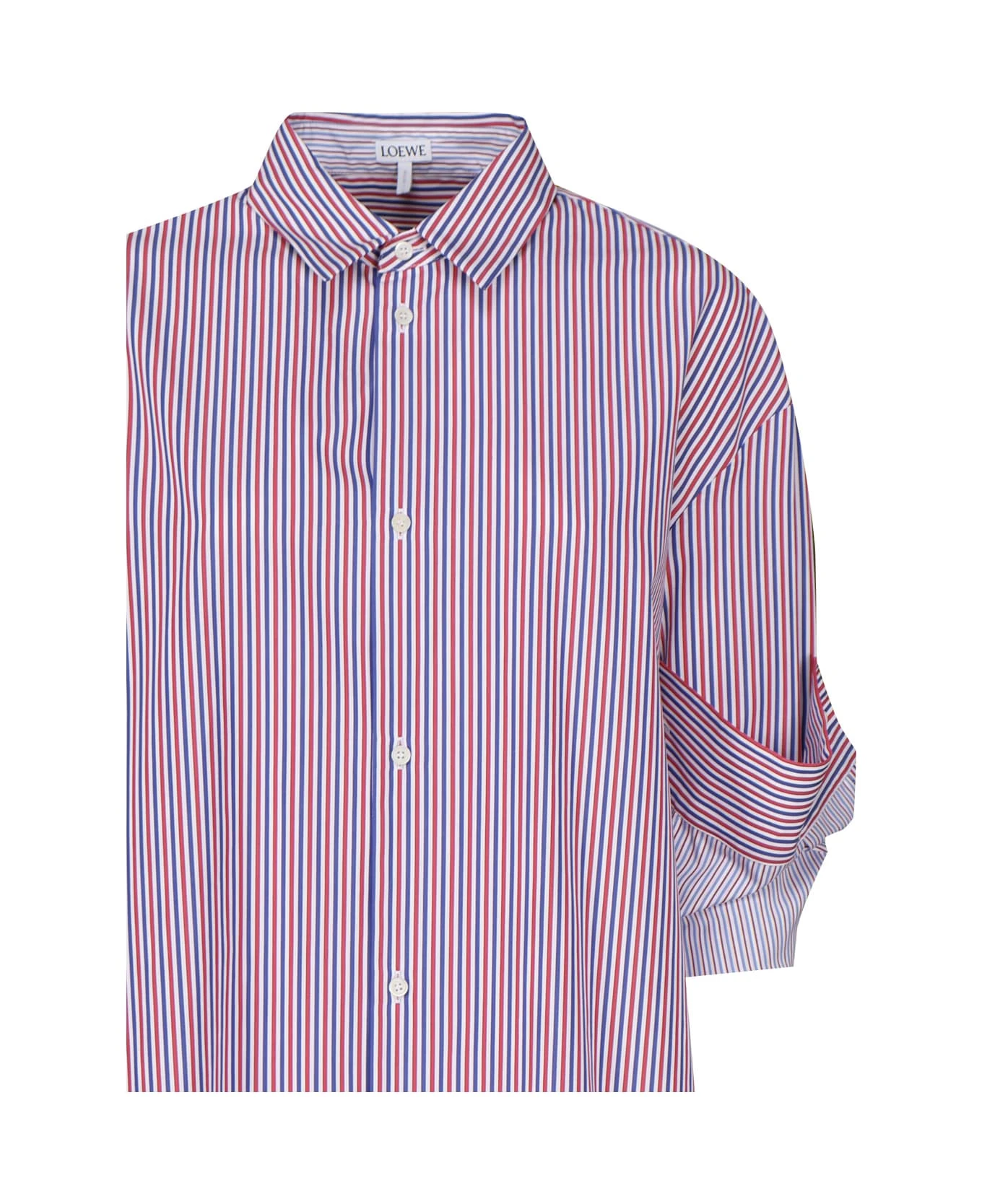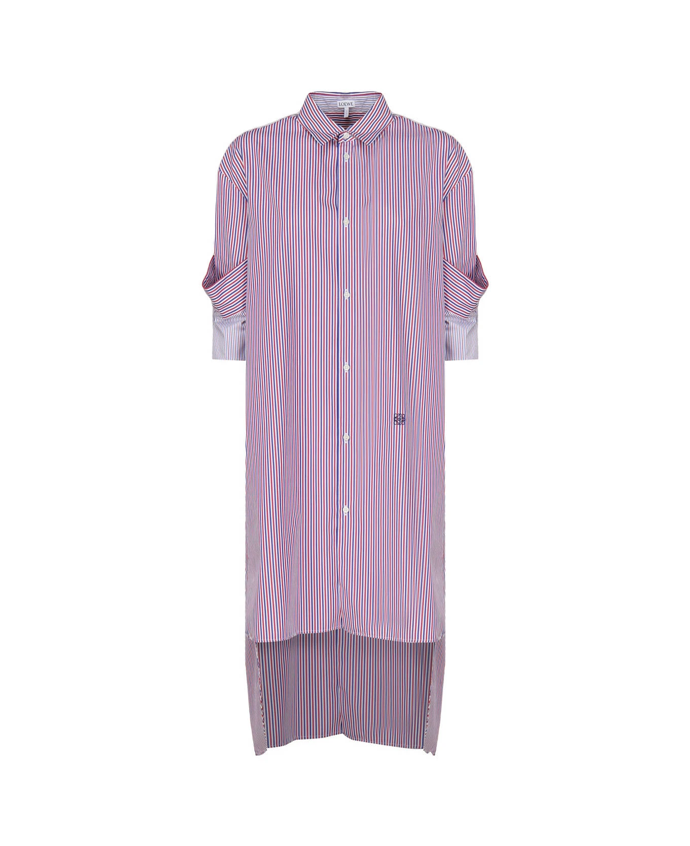 Blue/red/white Shirt Dress With Lapel In Striped Cotton from Loewe