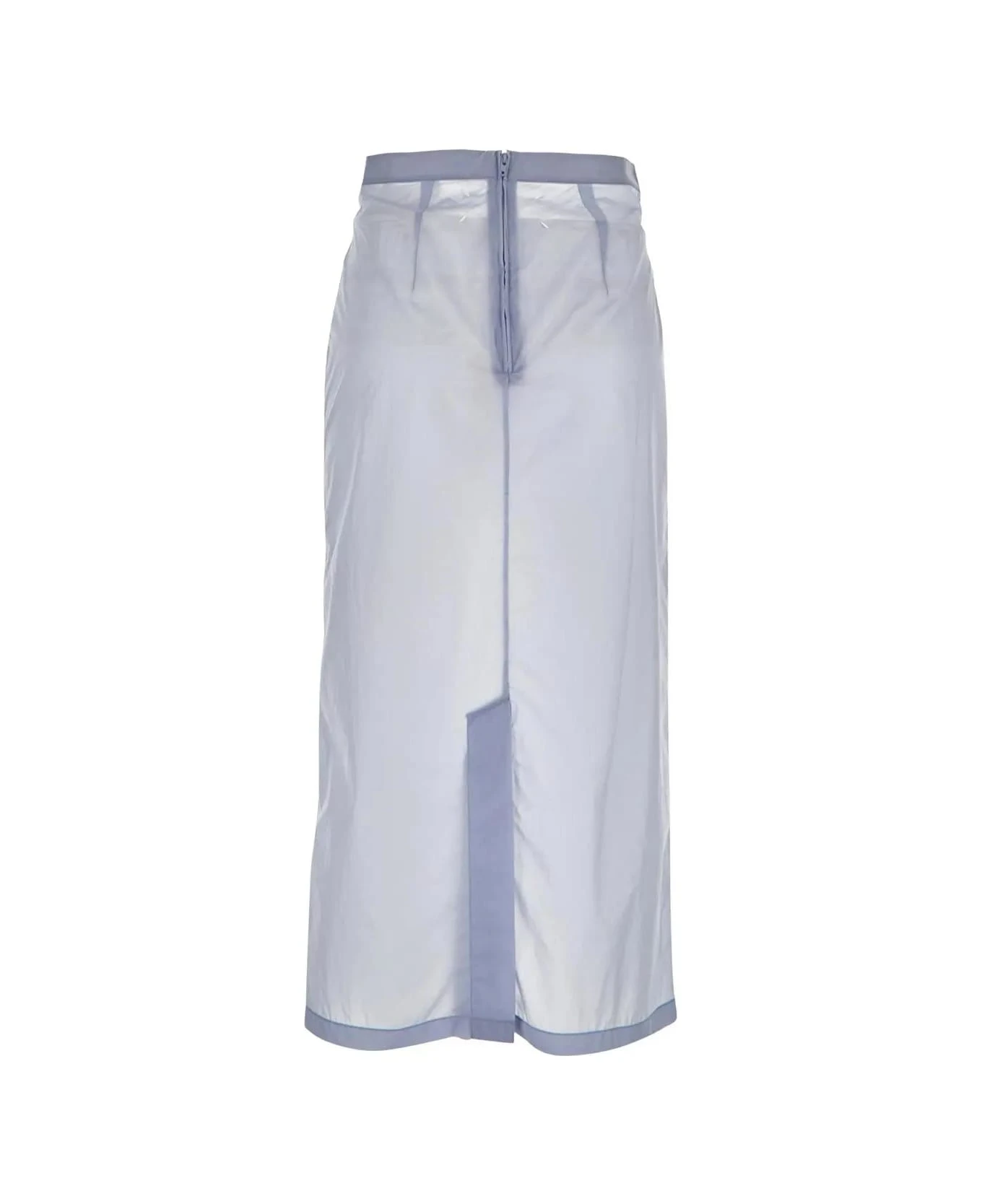 Maison Margiela midi skirt in grey polyamide featured by a high-waist, zip and hook closure at back, tight fit and back slit.