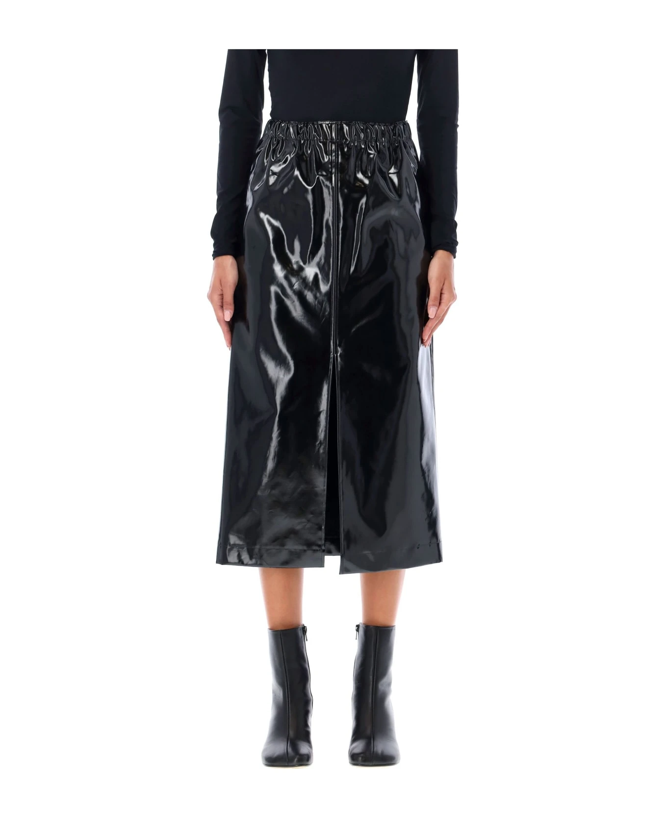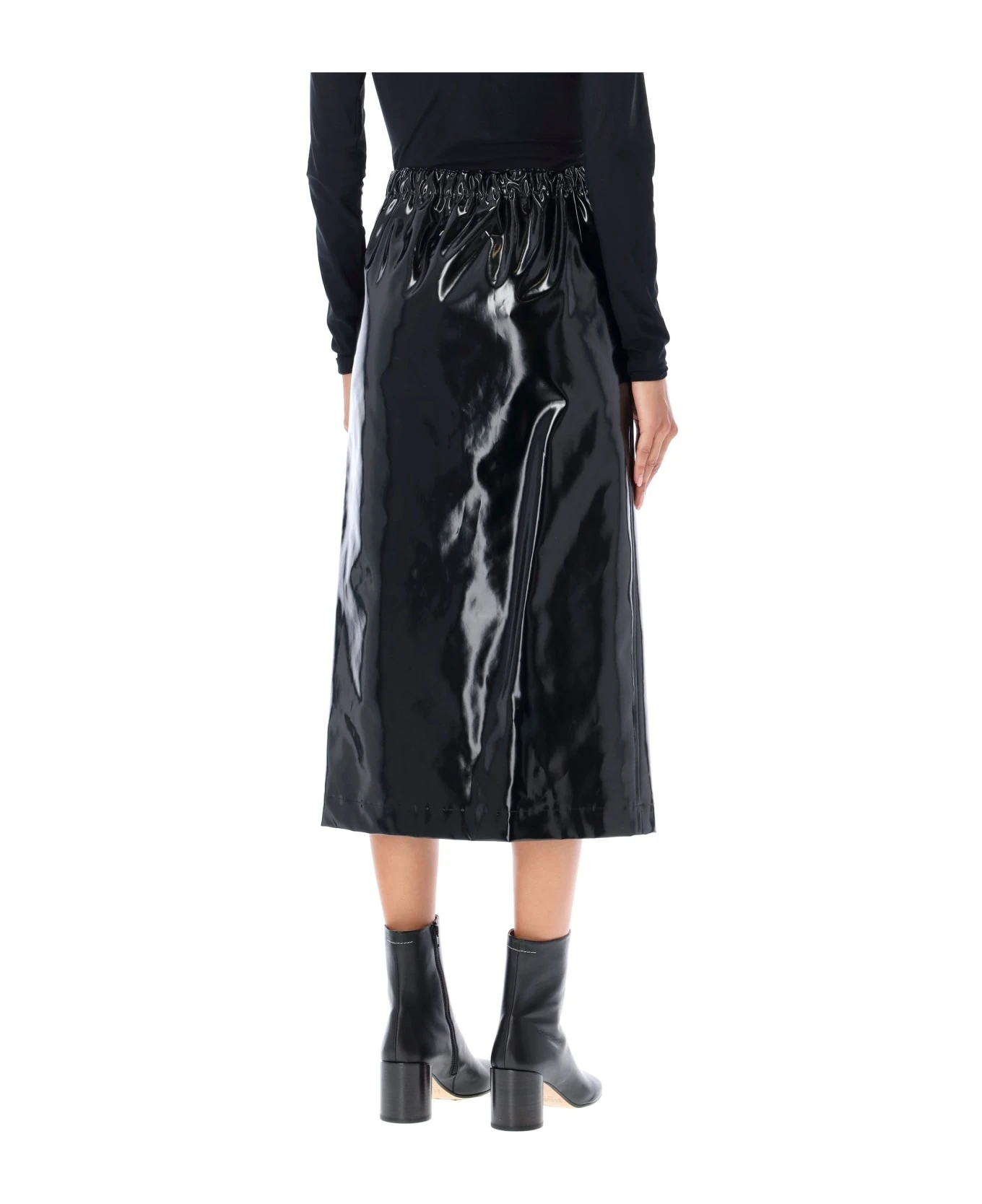 Coated Cotton Midi Skirt By Maison Margiela. Featuring: