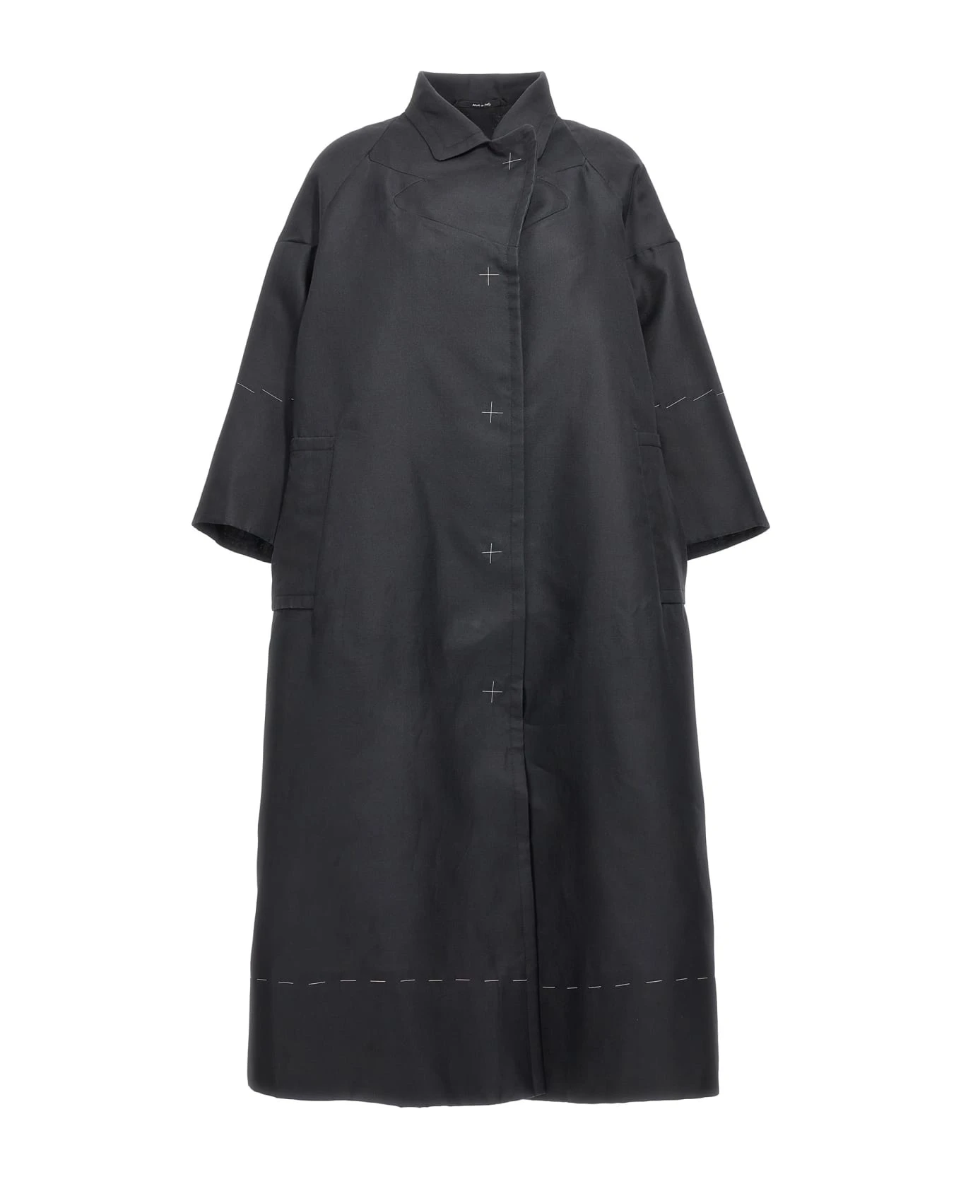 Silk coat with contrast stitching, a button closure, pockets and 3/4 sleeves.