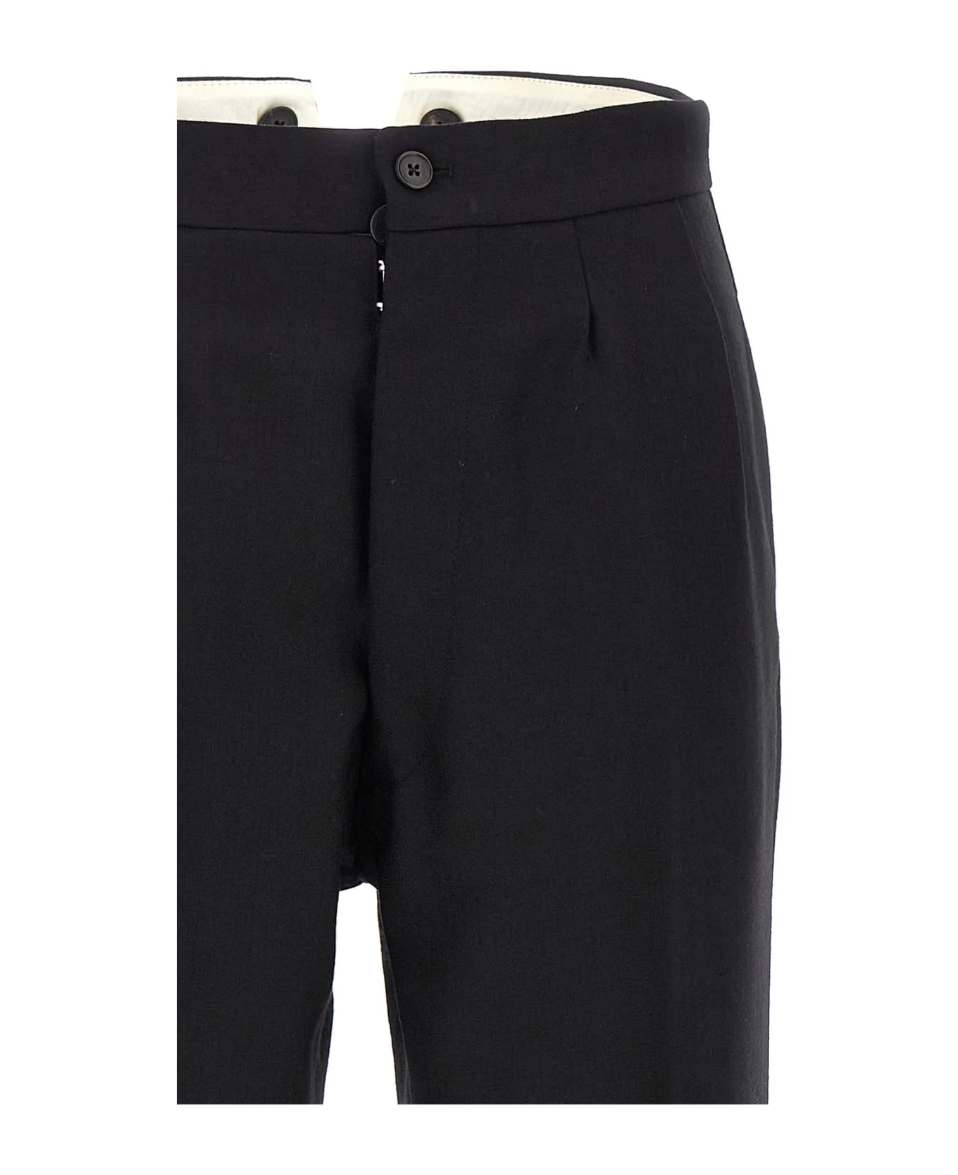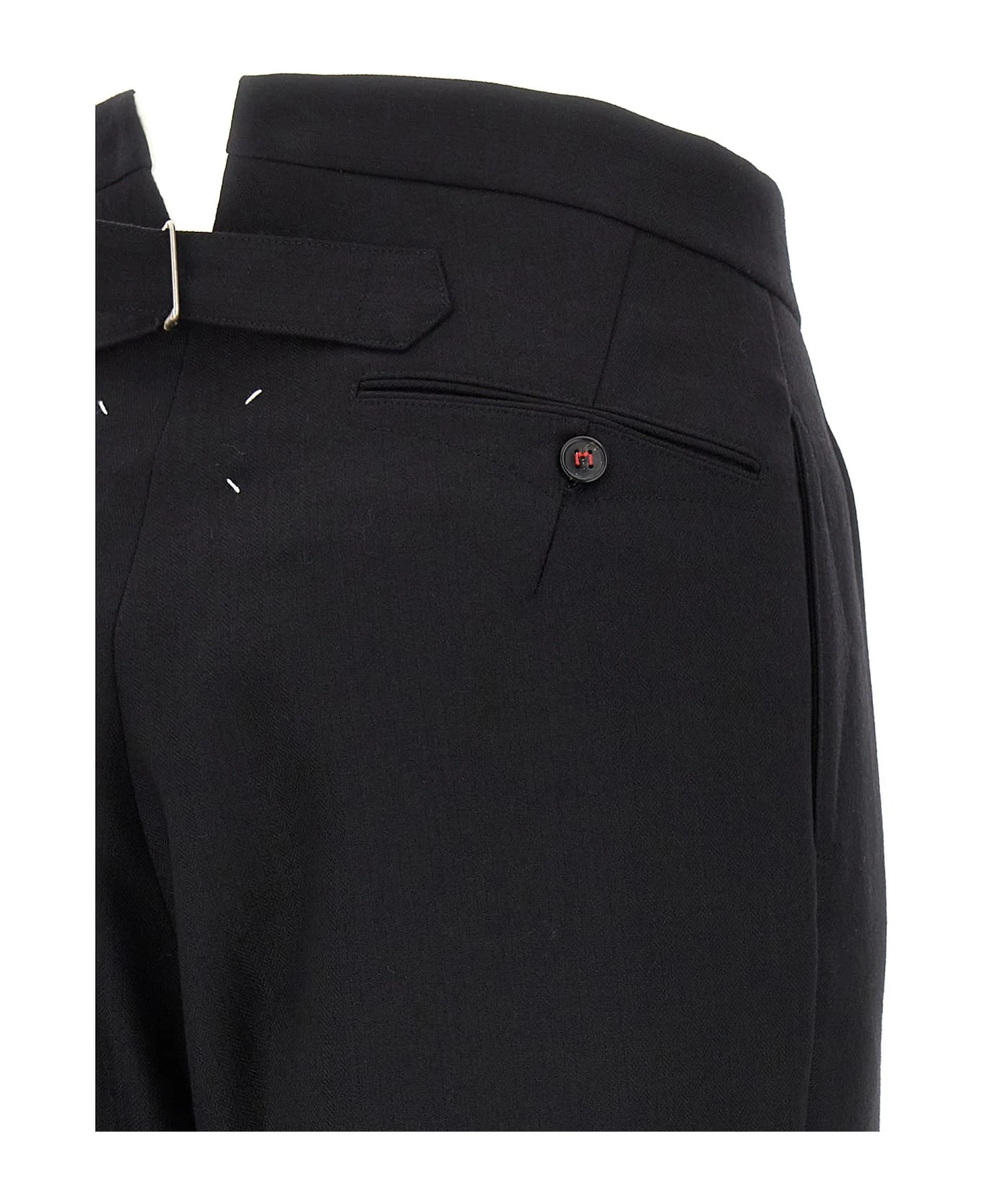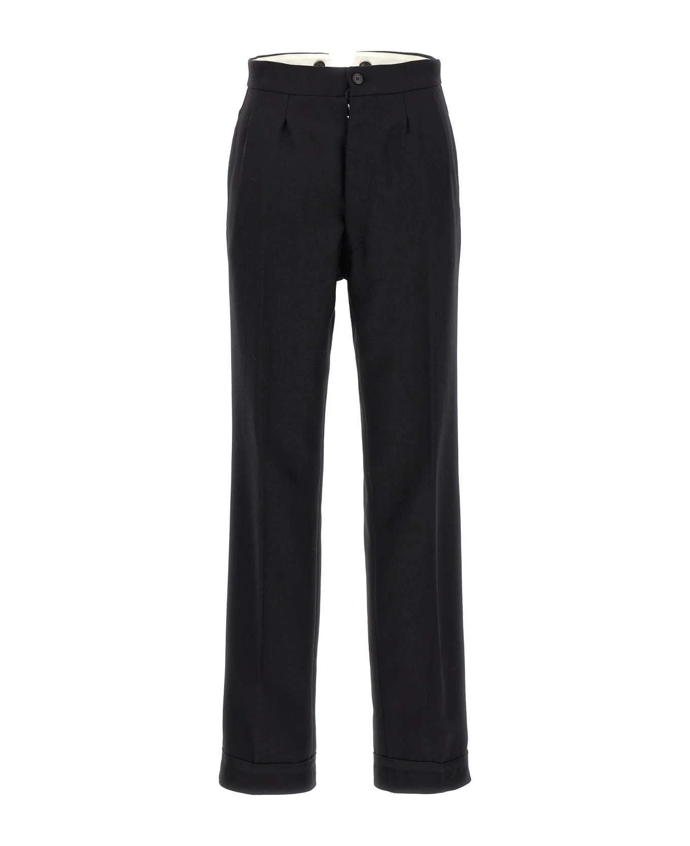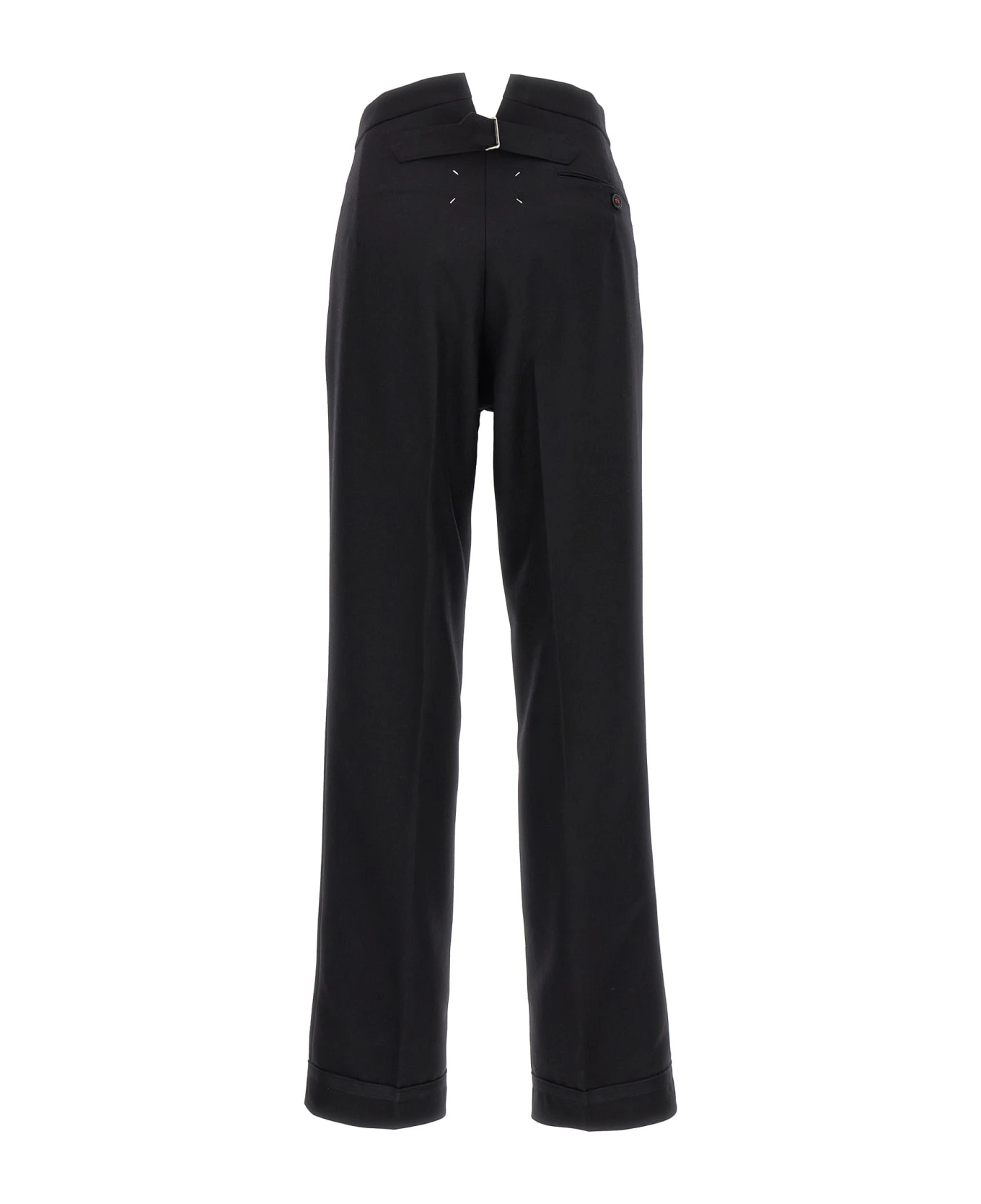 Herringbone wool pants, tapered leg with pences and turned-up hem, zip and button closure, pockets, adjustable back detail.