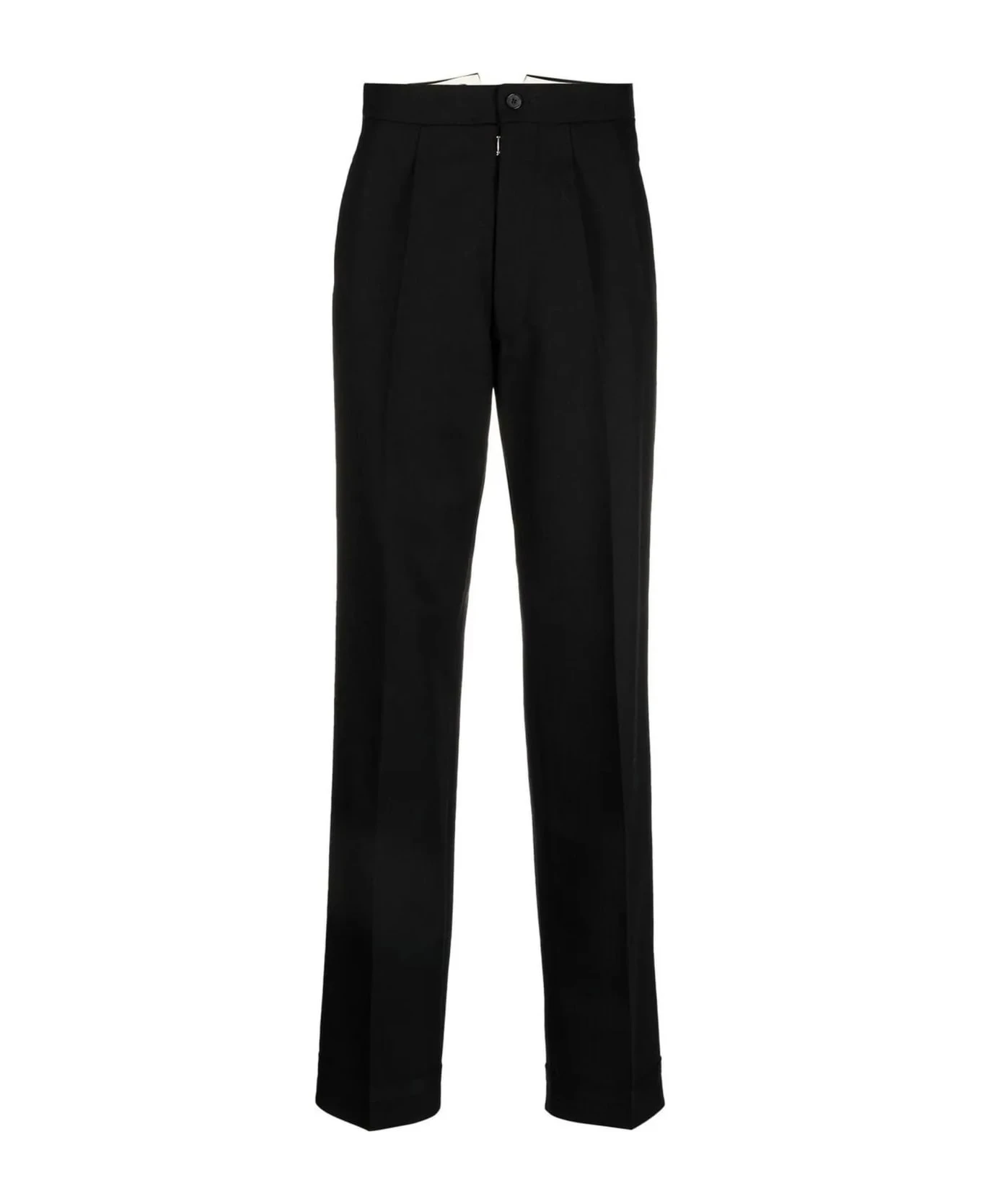 Herringbone Wool Pleated Trousers, tapered leg, central pleats, button closure, margiela hook, side pockets, Four stitches at the back