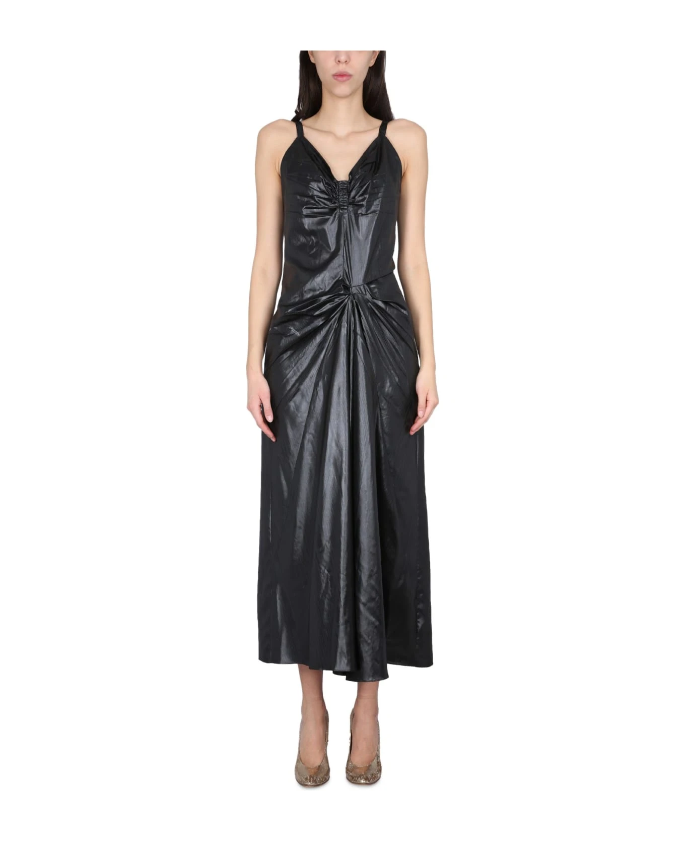 – Concealed Zipper Closure- V-neck- Ruched Details- Regular Fit- 100% Polyester- Made In Italy- The Model Is 180 Cm Tall And Wears Size 40 It