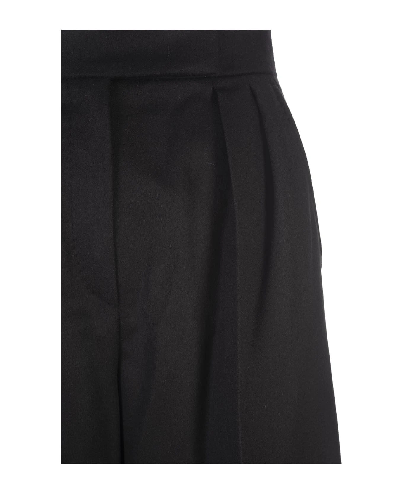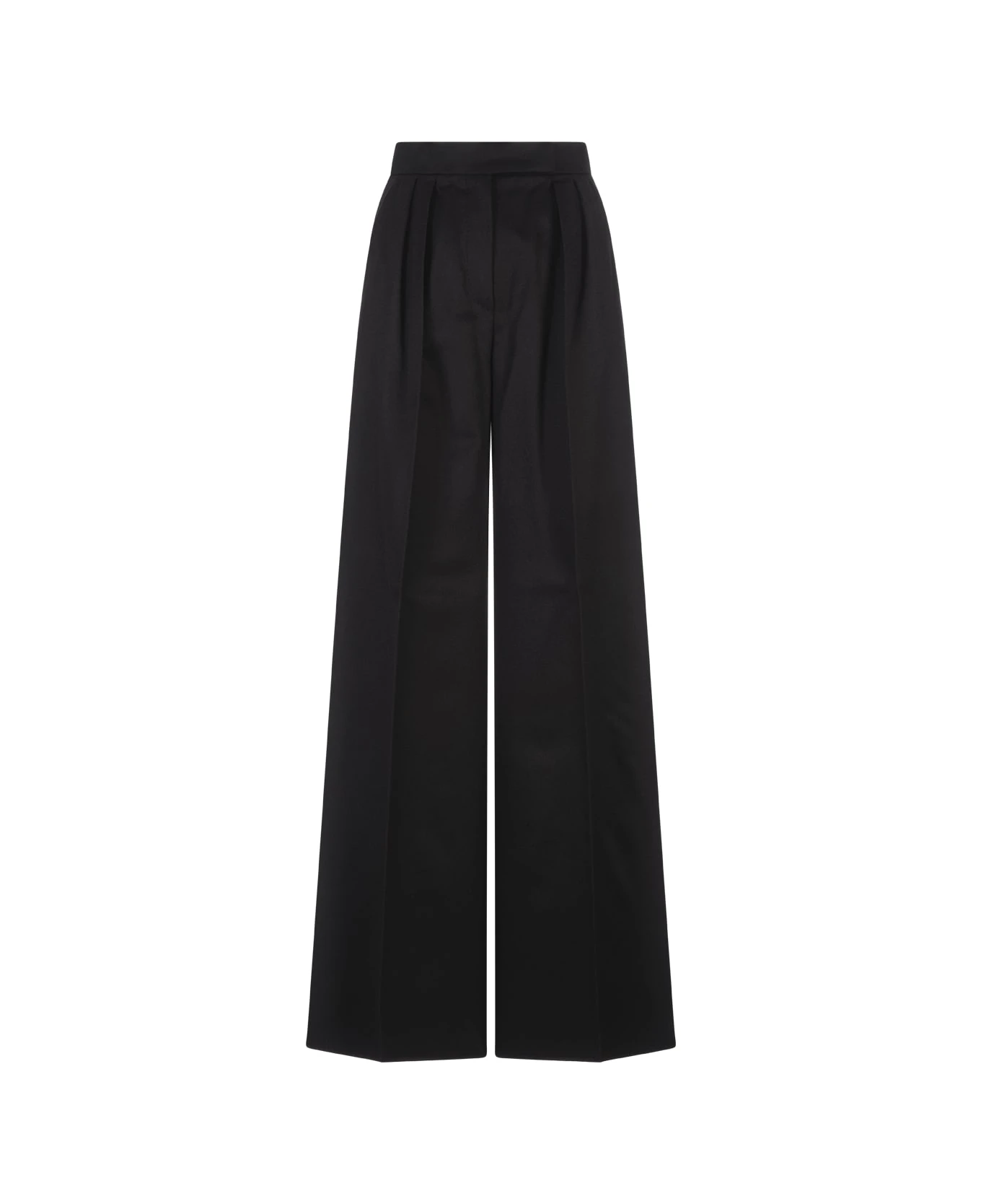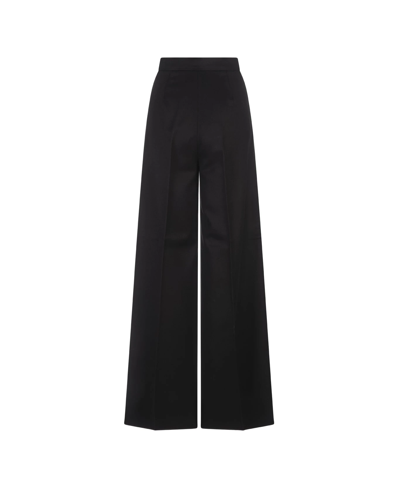 Black Weather trousers by Max Mara made from fine, lightweight pure camel fabric and featuring a wide-leg silhouette, double pleats at the waist and French pockets at the hips. High-rise waistband, zip with flap and hook fastening.
