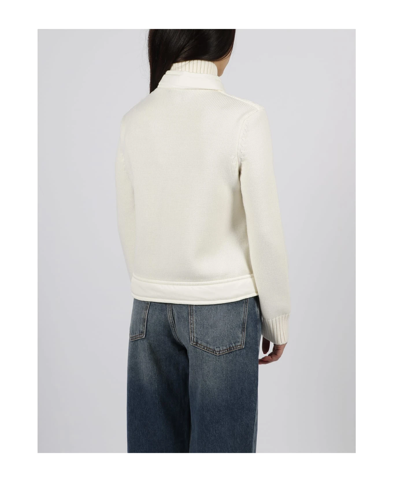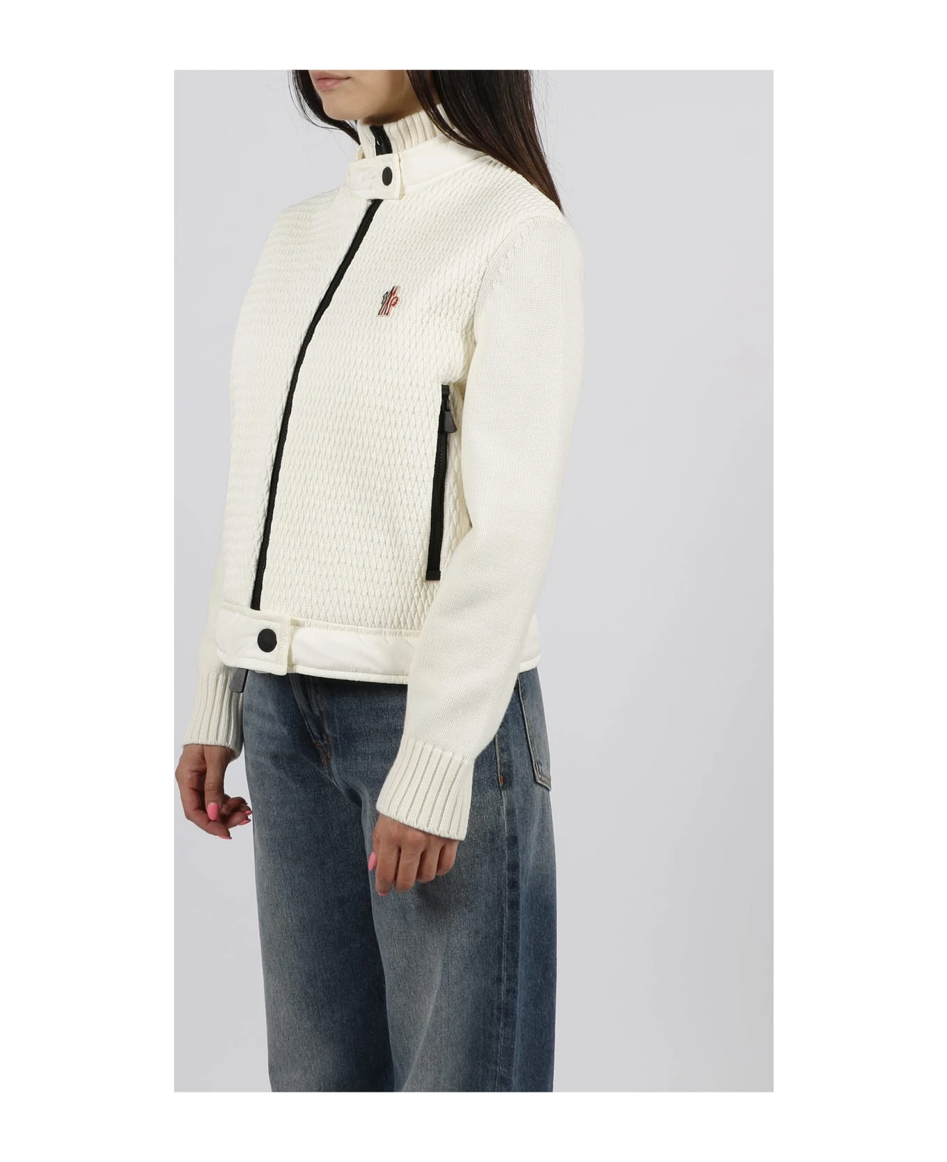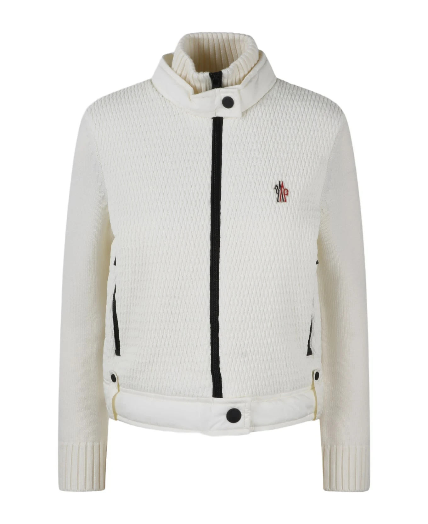 Moncler Grenoble cardigan, in wool with diamond-quilted nylon front panel. – FW23