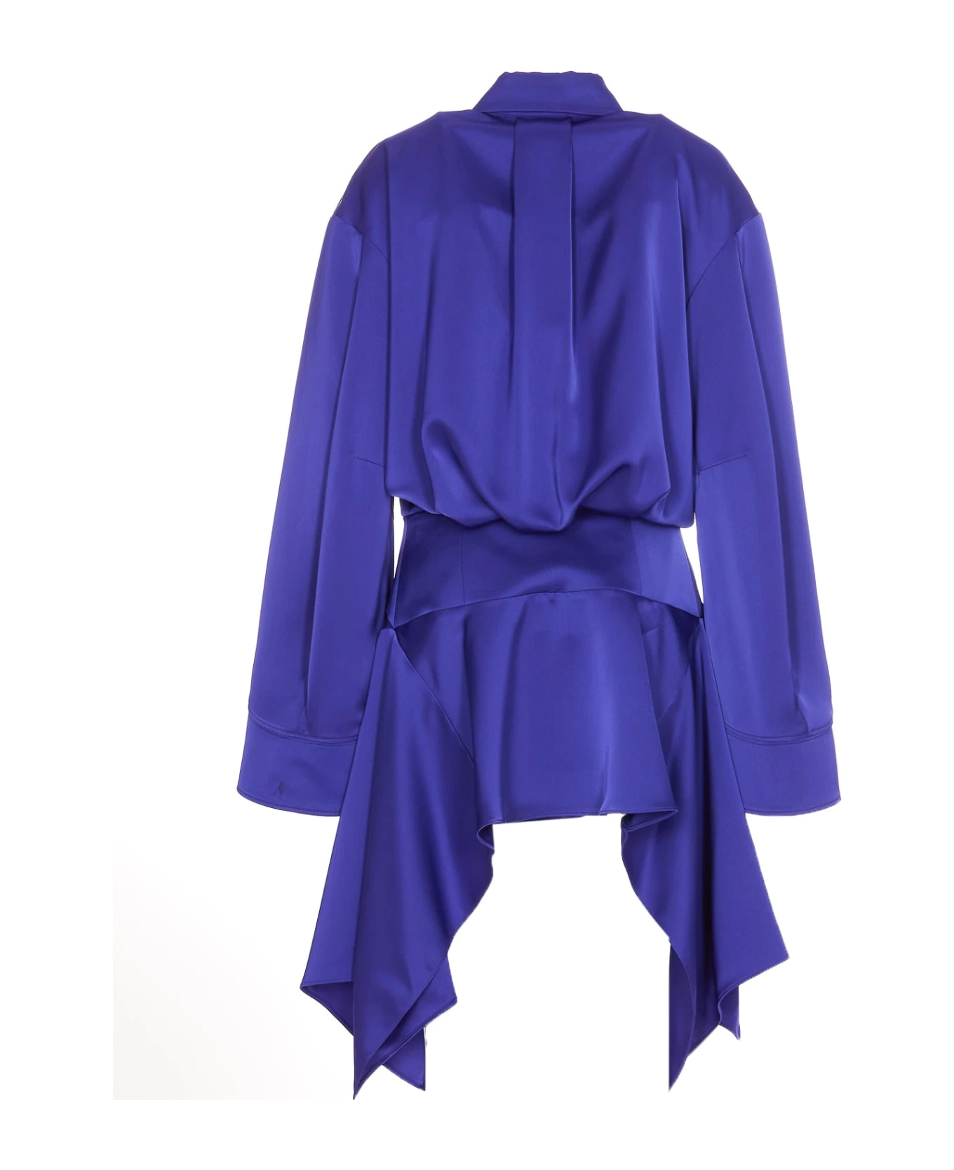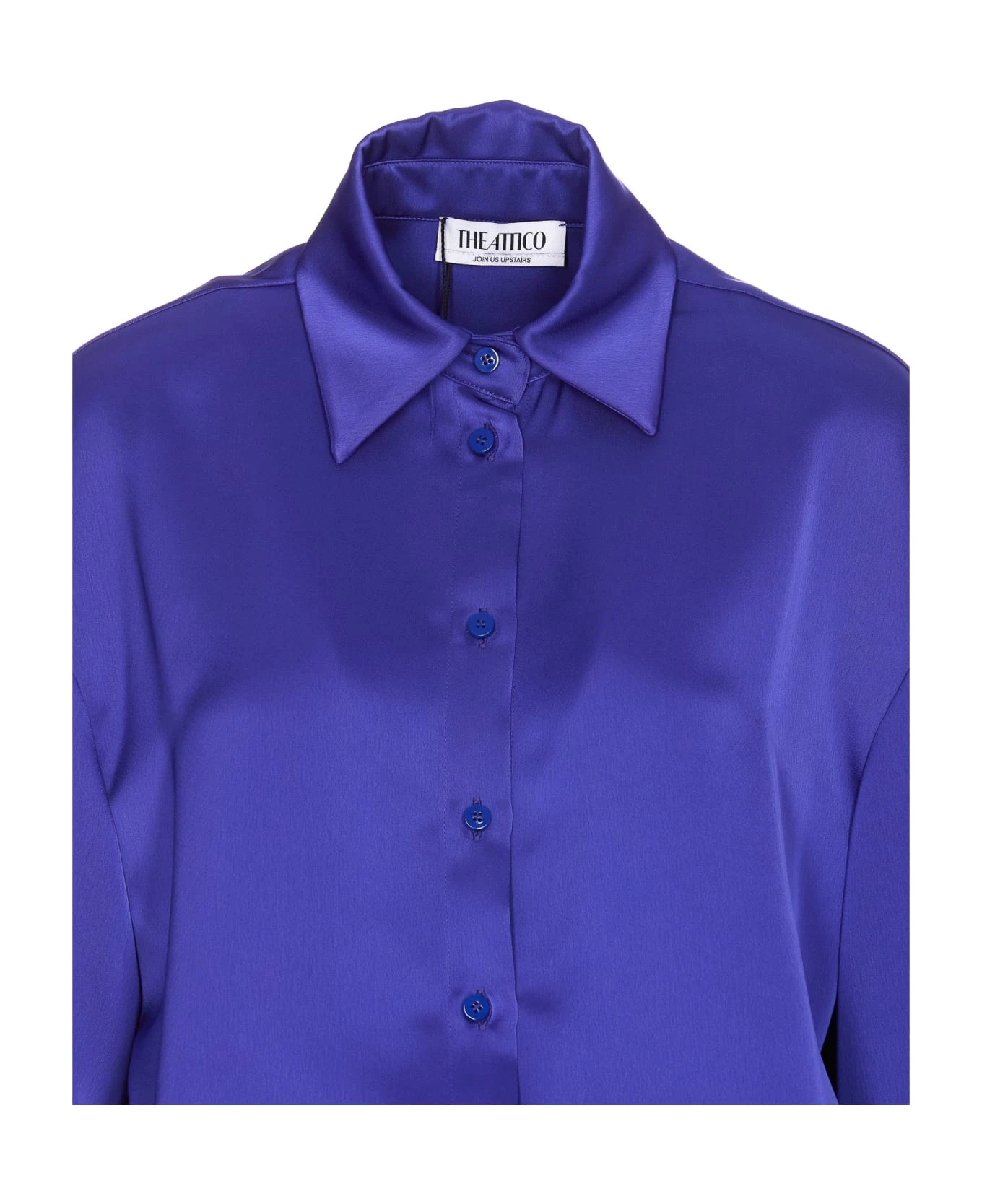 The Attico purple Mischia dress, shirt modle, button closure, classic collar, frontal tone on tone logo, button detail on the cuffs, mini model, wide legs